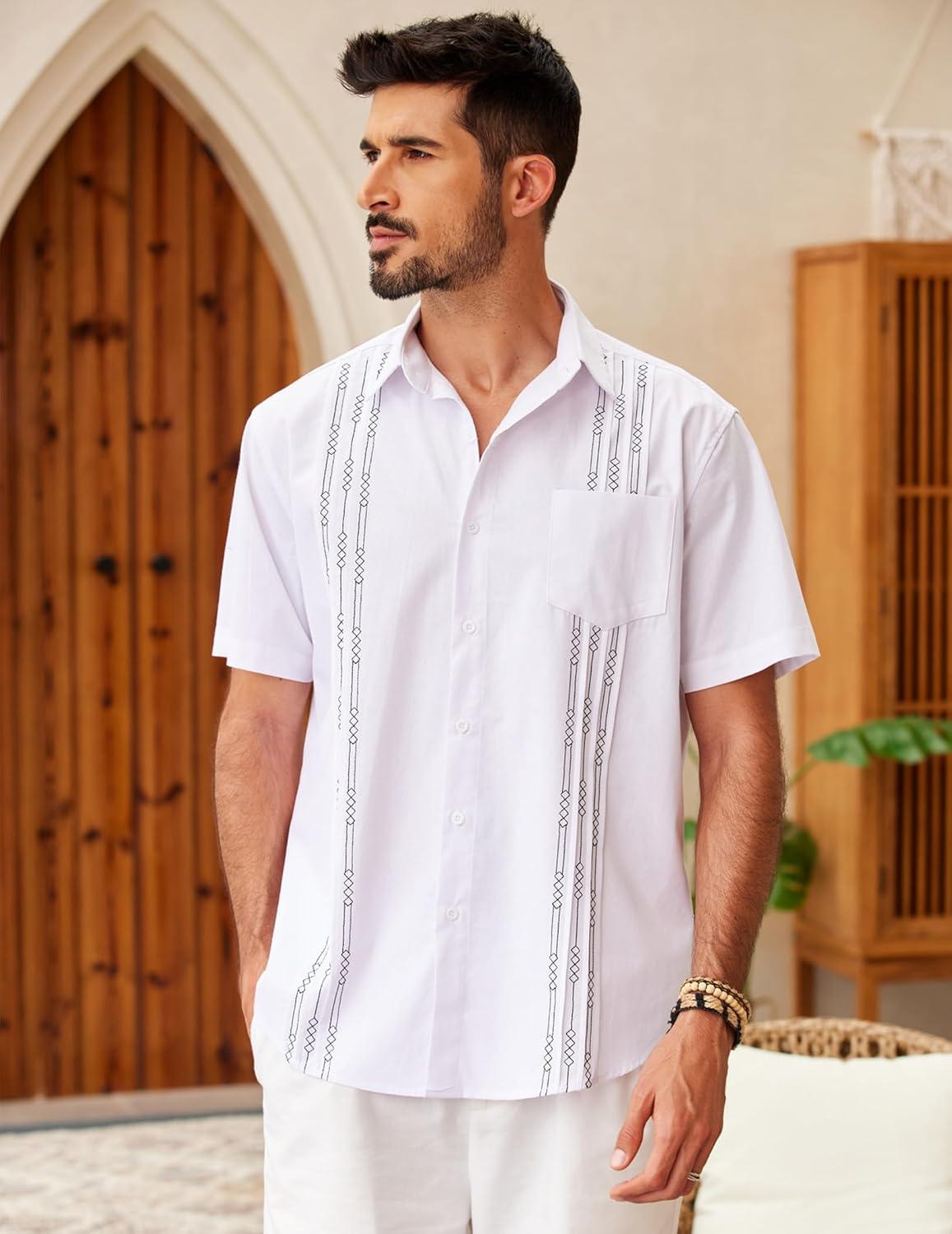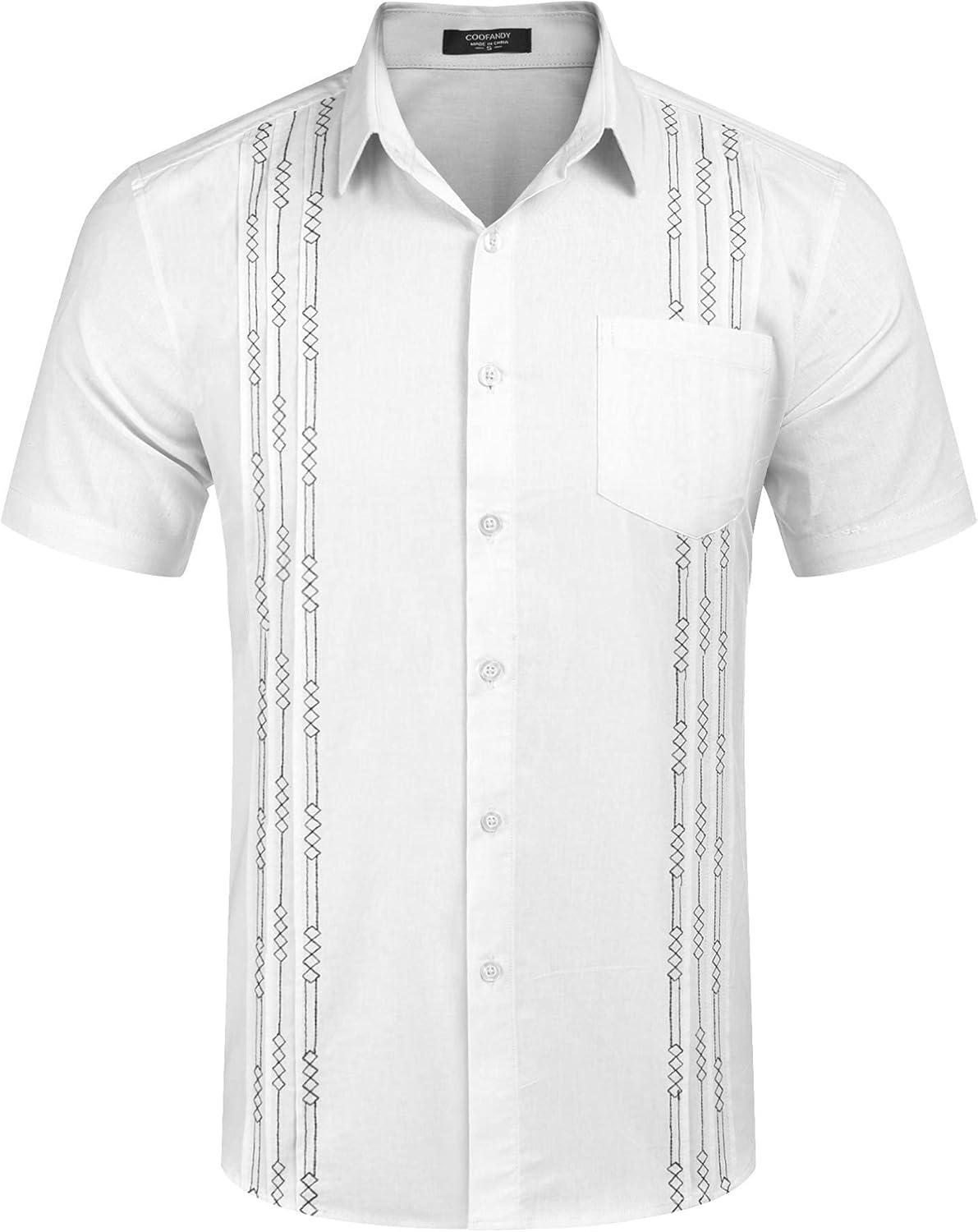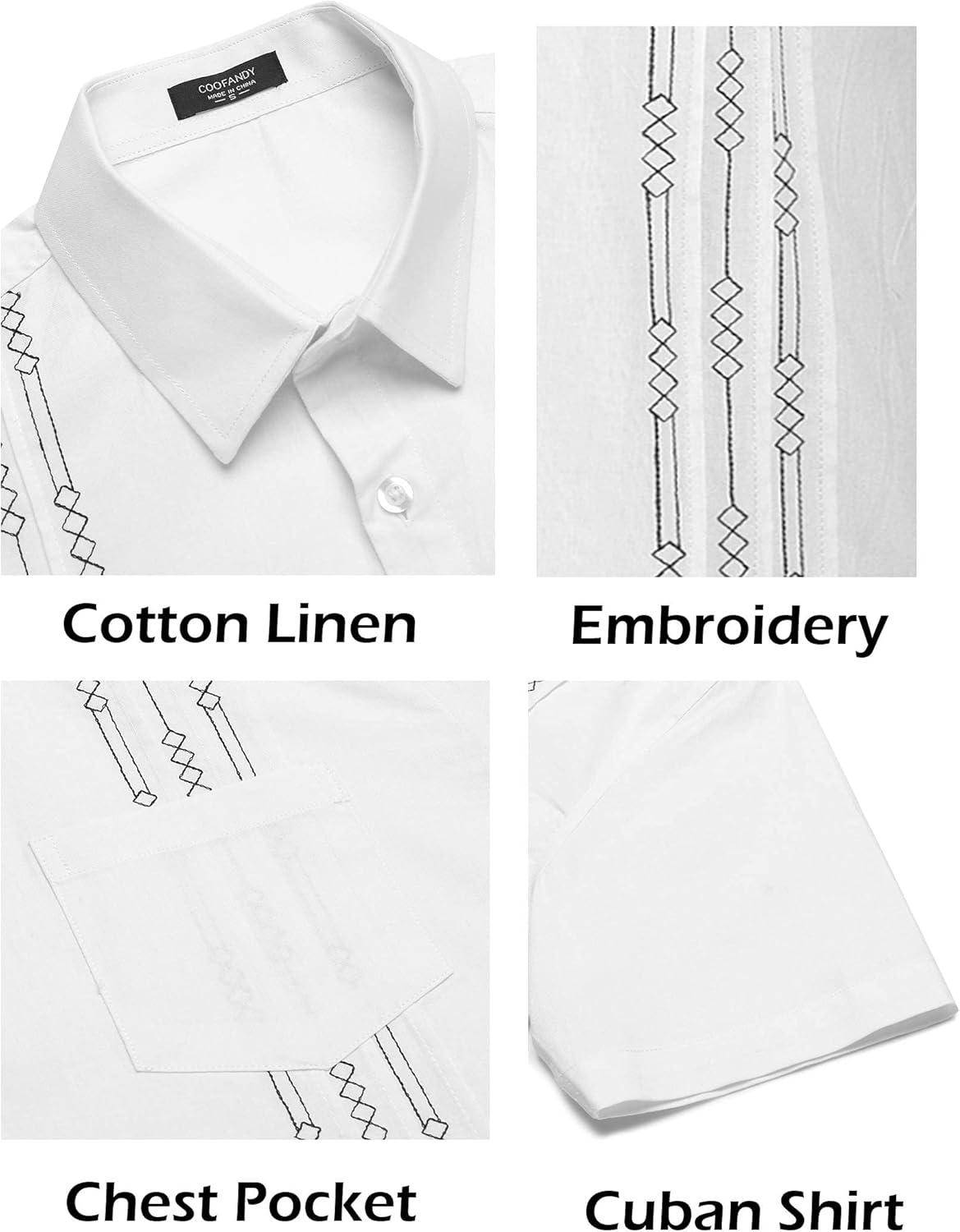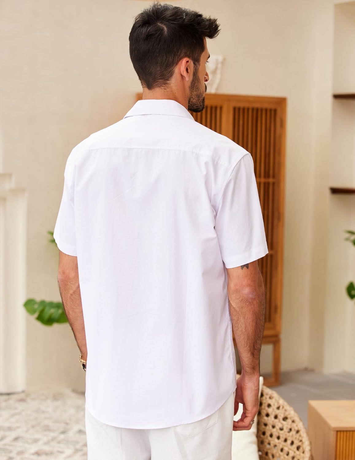 COOFANDY Mens Cuban Guayabera Shirt Short Sleeve Linen Button Down Shirts Casual Summer Beach Tops(White)