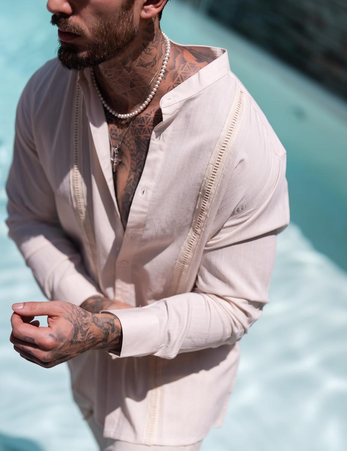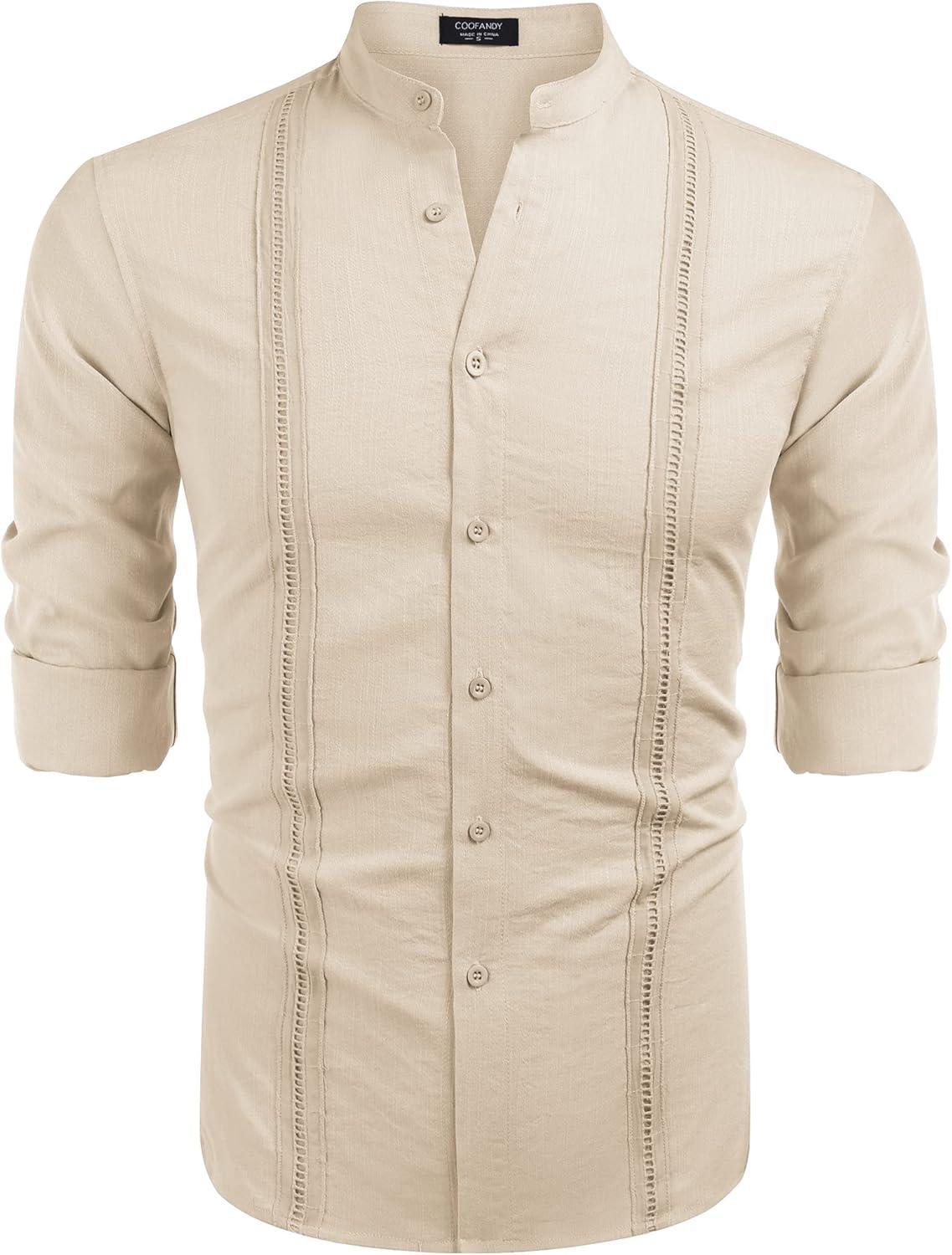 Get more for your money with our exclusive bundle deals on COOFANDY Men’s Cuban Guayabera Shirts Casual Long Sleeve Button Down Shirts Band Collar Linen Summer Beach Shirts(Beige) and accessories.