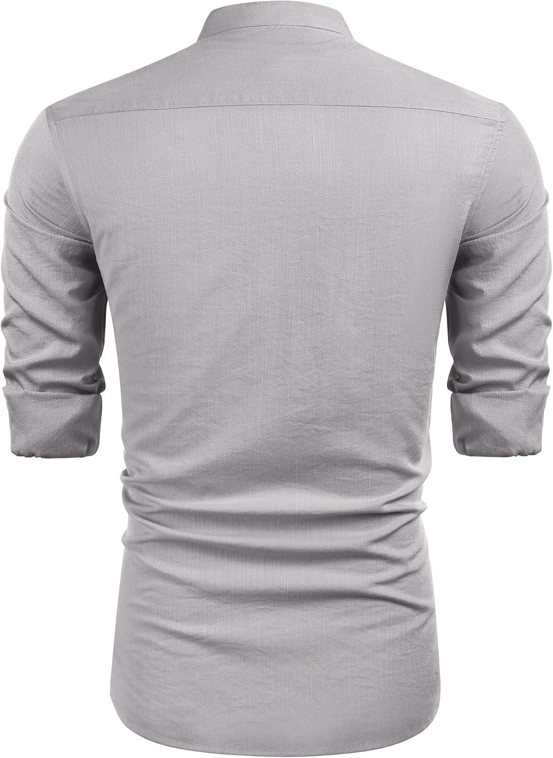 COOFANDY Men’s Cuban Guayabera Shirts Casual Long Sleeve Button Down Shirts Band Collar Linen Summer Beach Shirts(Grey)