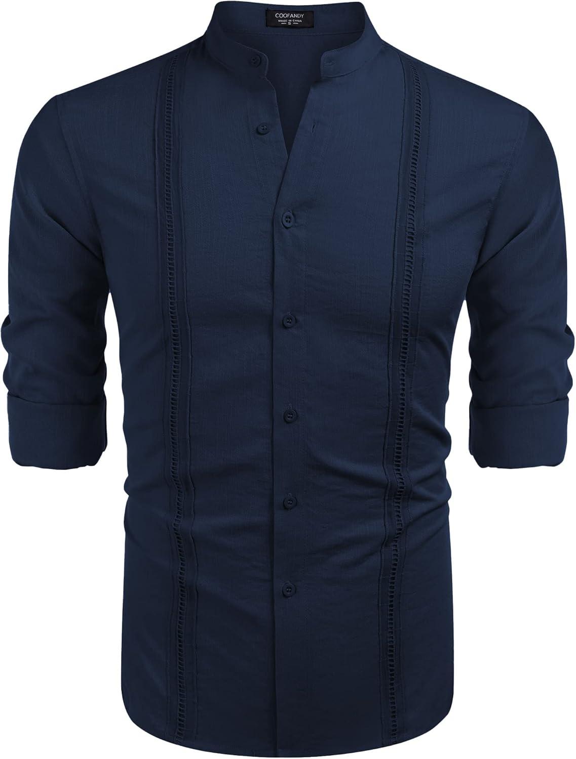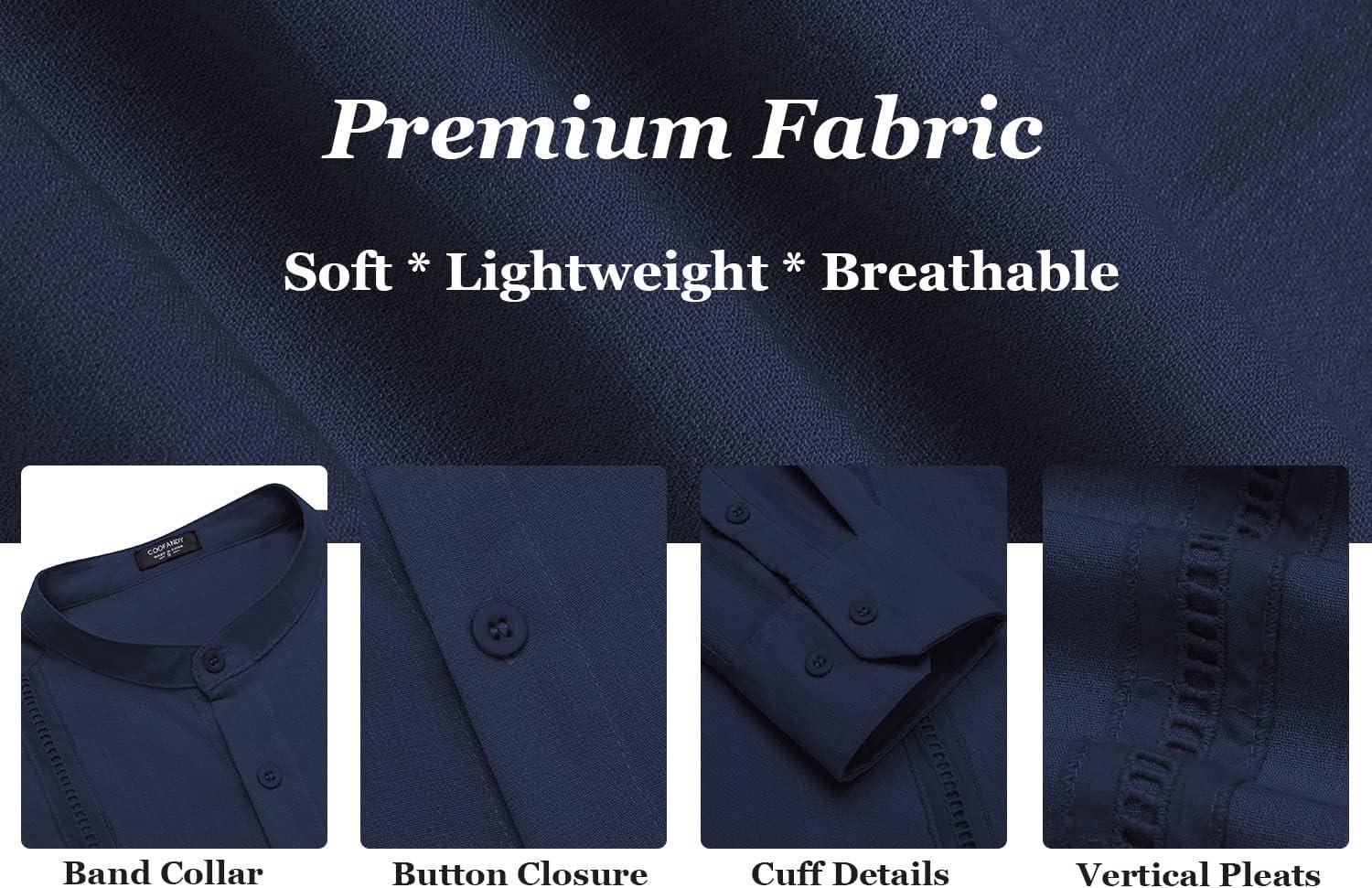 Don’t miss out on our limited-time offer: buy COOFANDY Men’s Cuban Guayabera Shirts Casual Long Sleeve Button Down Shirts Band Collar Linen Summer Beach Shirts(Navy Blue), get {accessory} 50% off!