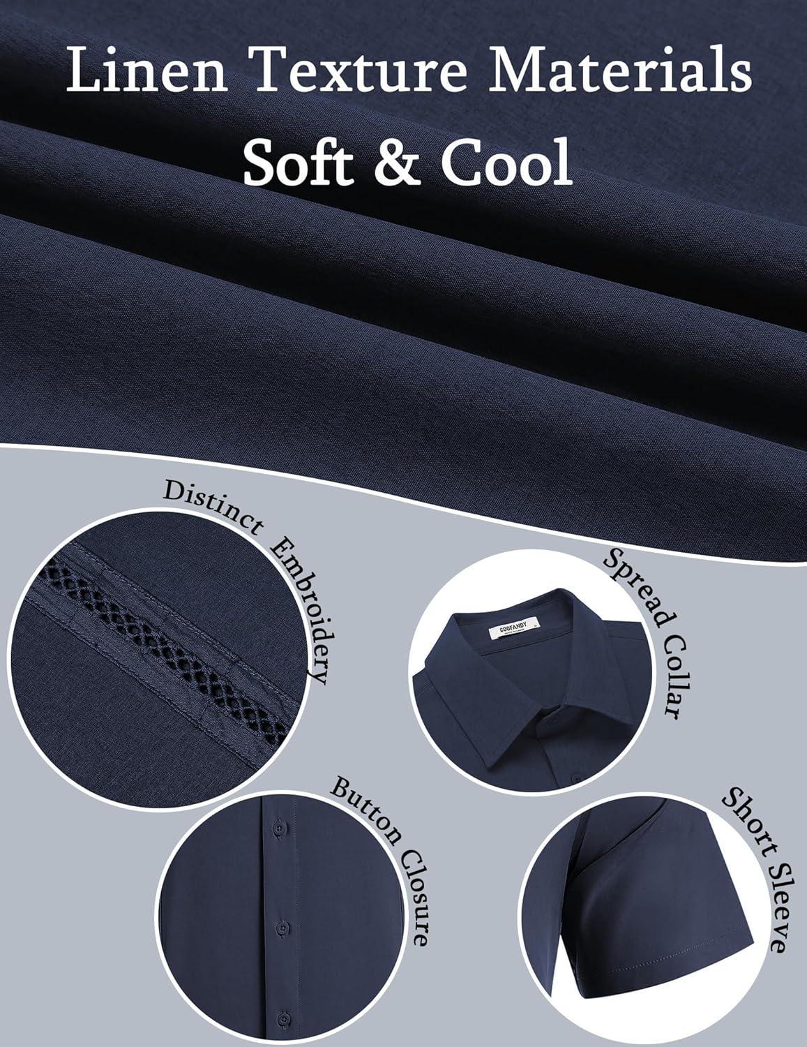 COOFANDY Men's Cuban Guayabera Shirts Casual Short Sleeve Button Down Shirt Summer Beach Vacation Shirt(Navy Blue)