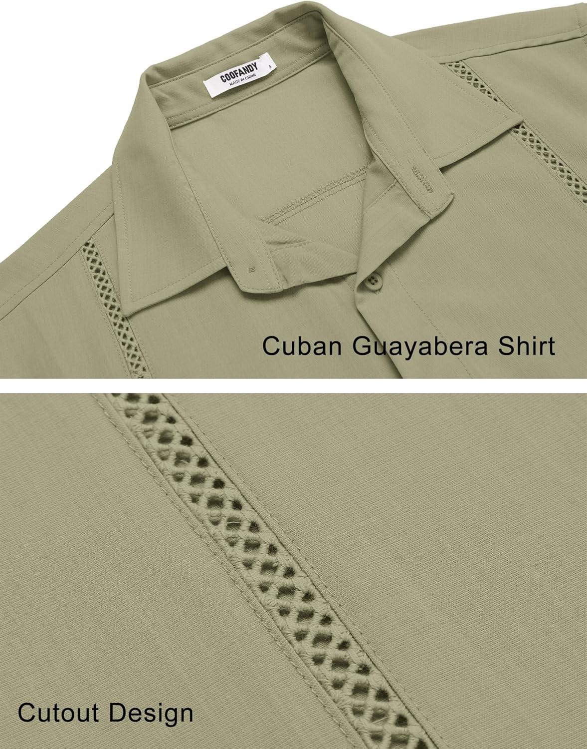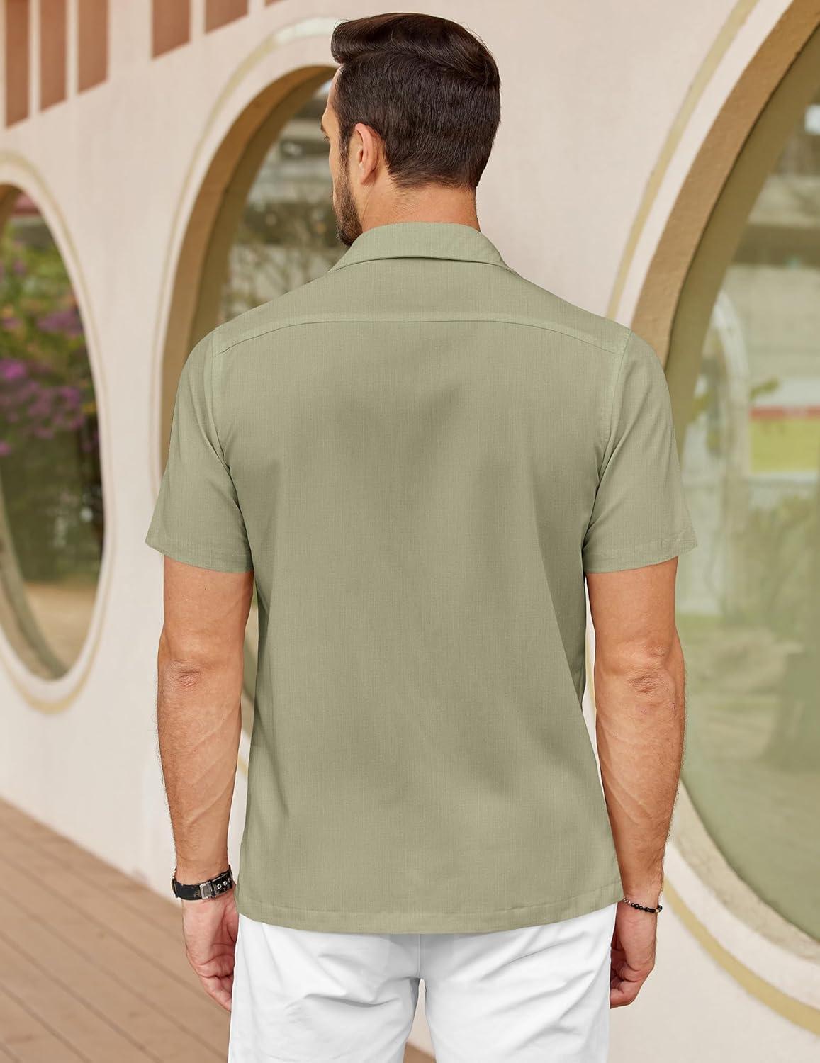 COOFANDY Mens Cuban Guayabera Shirts Short Sleeve Button Down Shirt Lightweight Summer Beach Shirts(Army Green)