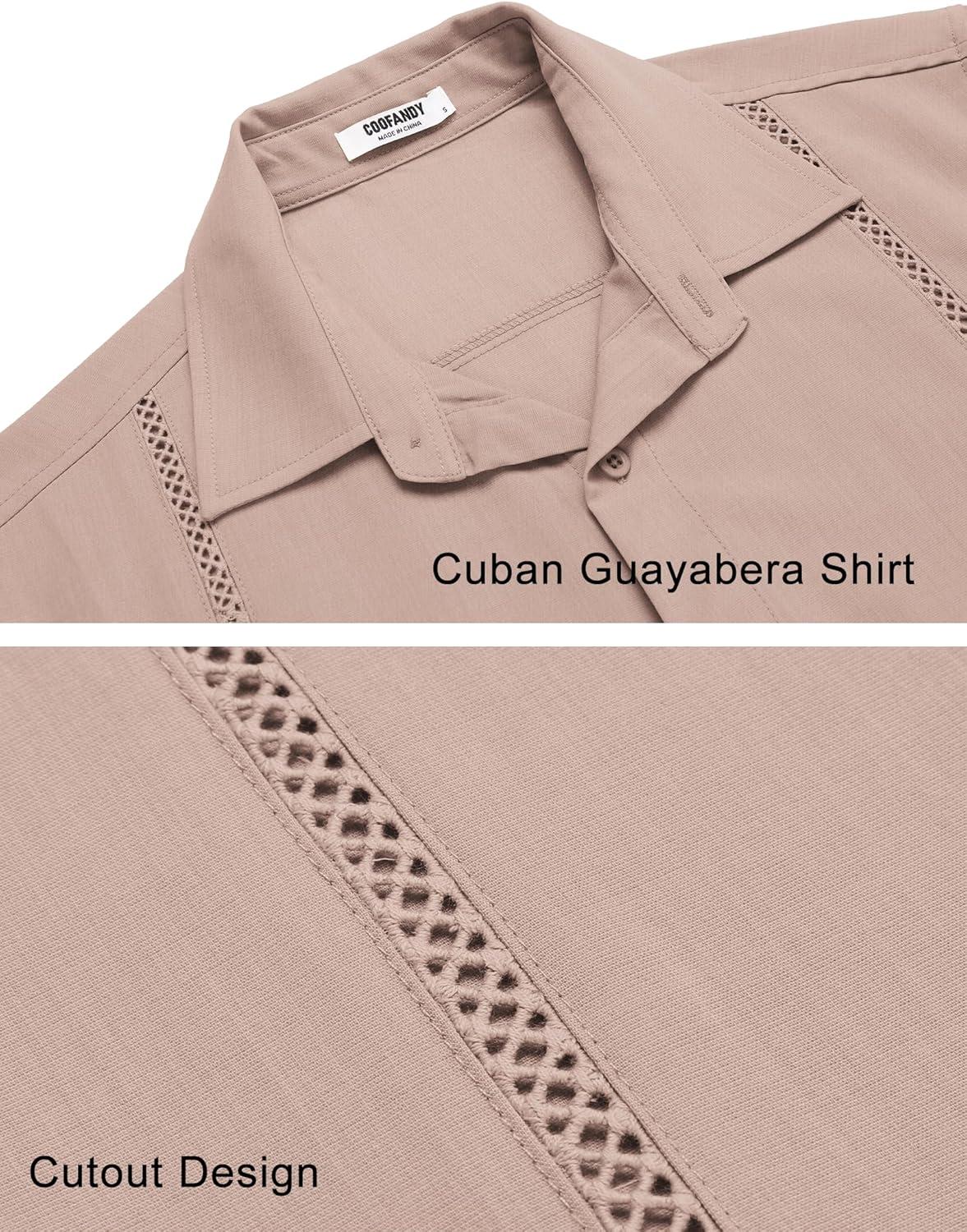COOFANDY Mens Cuban Guayabera Shirts Short Sleeve Button Down Shirt Lightweight Summer Beach Shirts(Pink)