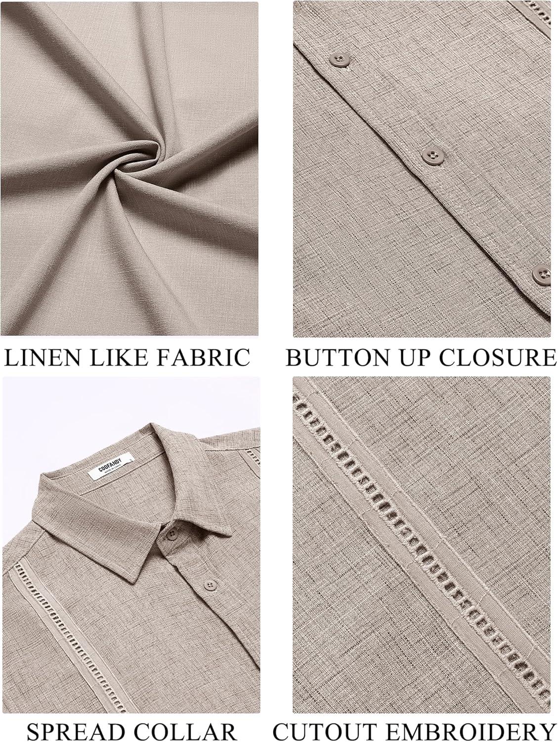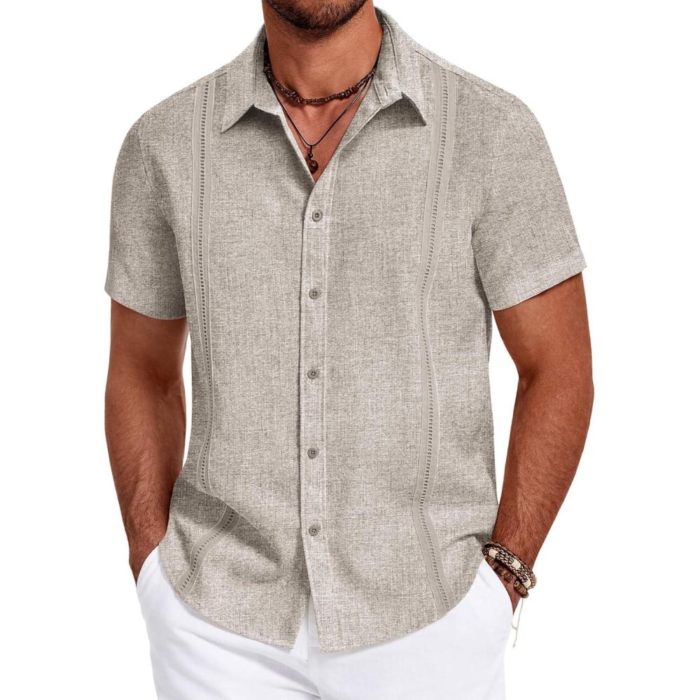 imageCOOFANDY Mens Cuban Guayabera Summer Beach Short Sleeve Casual Vacation Wedding ShirtBeige