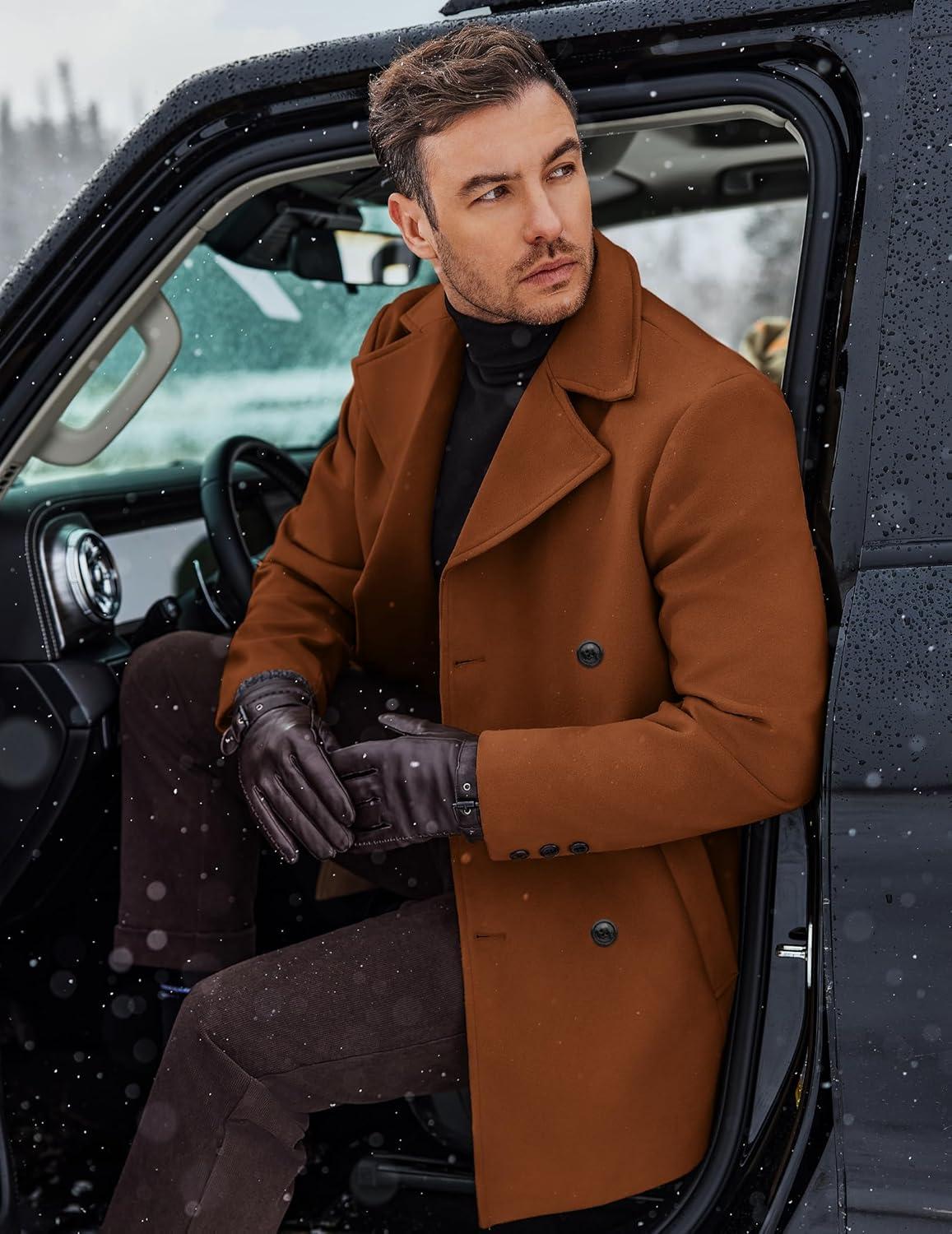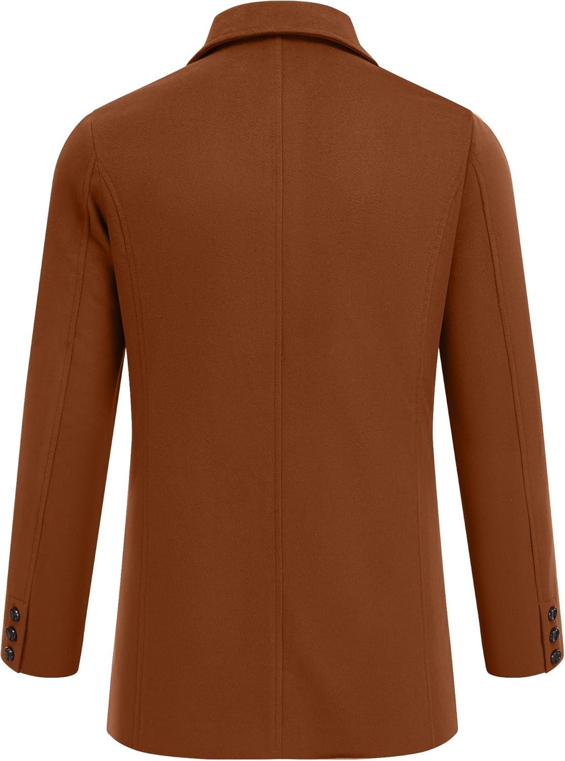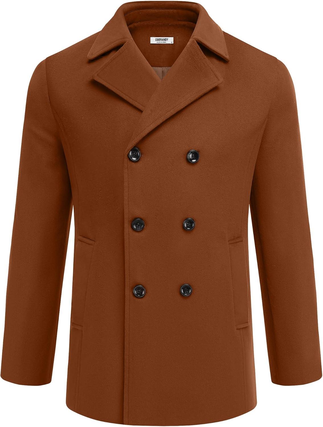 COOFANDY Men's Double Breasted Pea Coat Winter Overcoat Short Trench Coat Notched Collar(Brown)