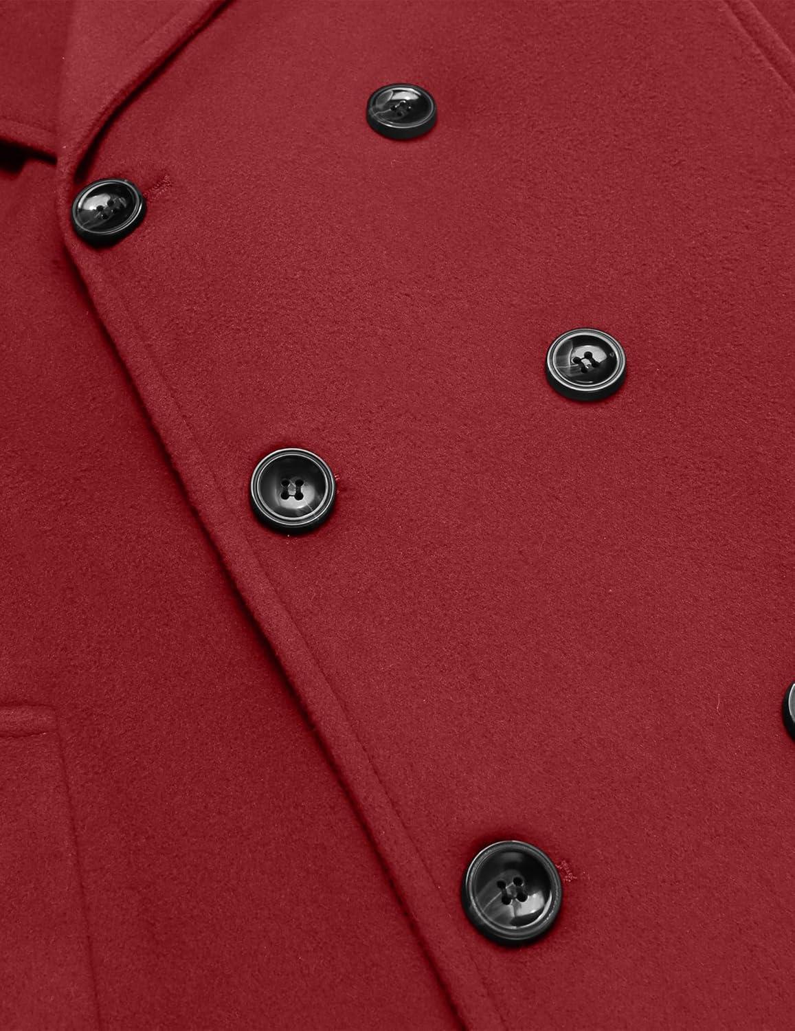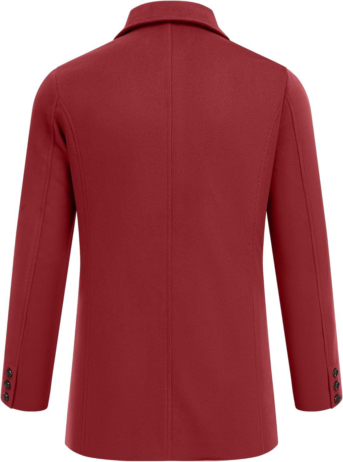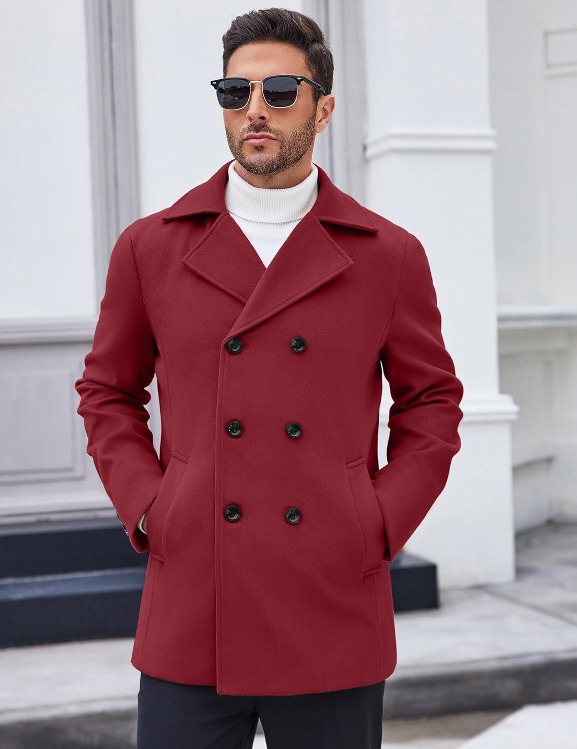 COOFANDY Men's Double Breasted Pea Coat Winter Overcoat Short Trench Coat Notched Collar(Red)