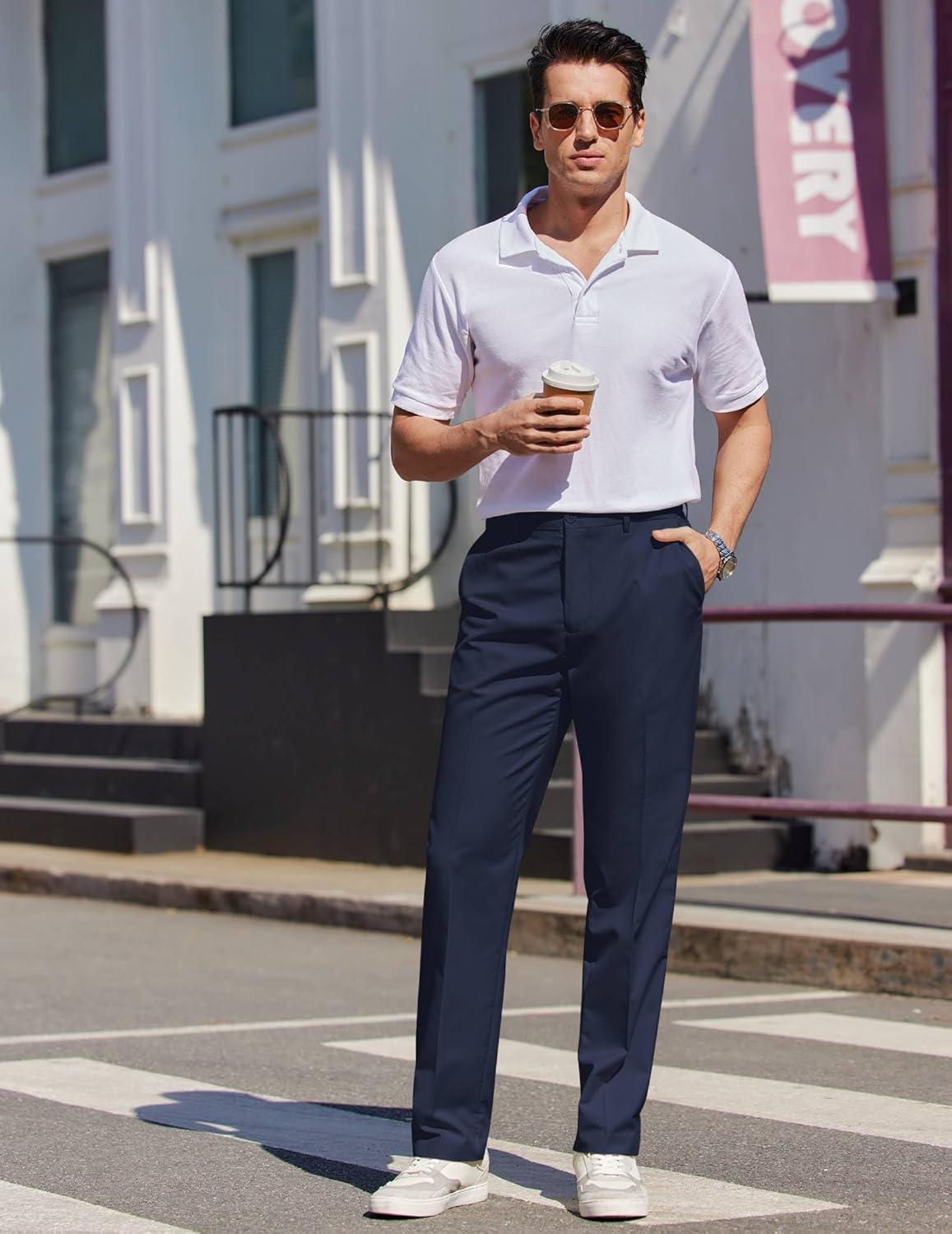 COOFANDY Mens Dress Pants Expandable Waist Wrinkle Free Suit Pants Flat Front Casual Dress Slacks(Navy Blue)