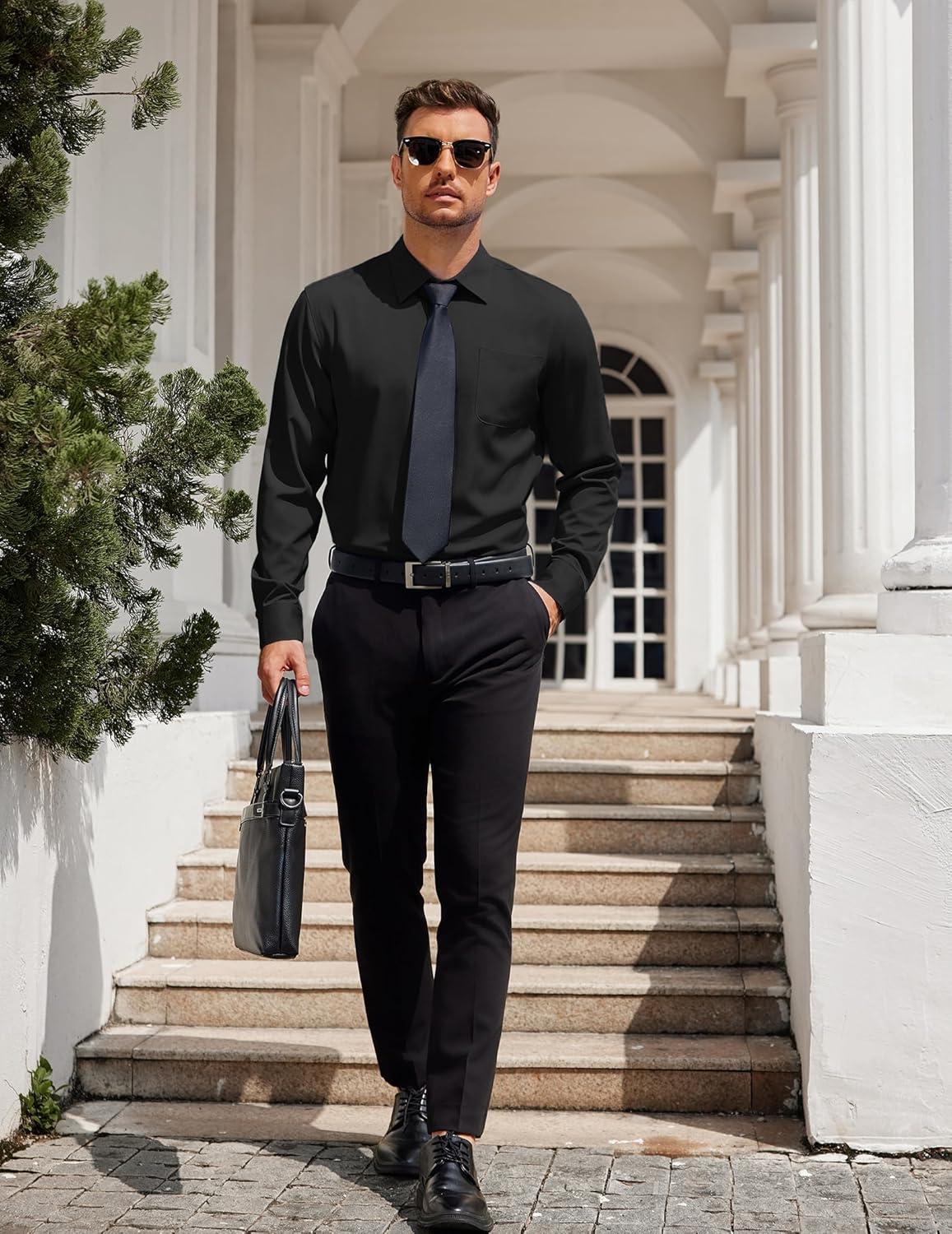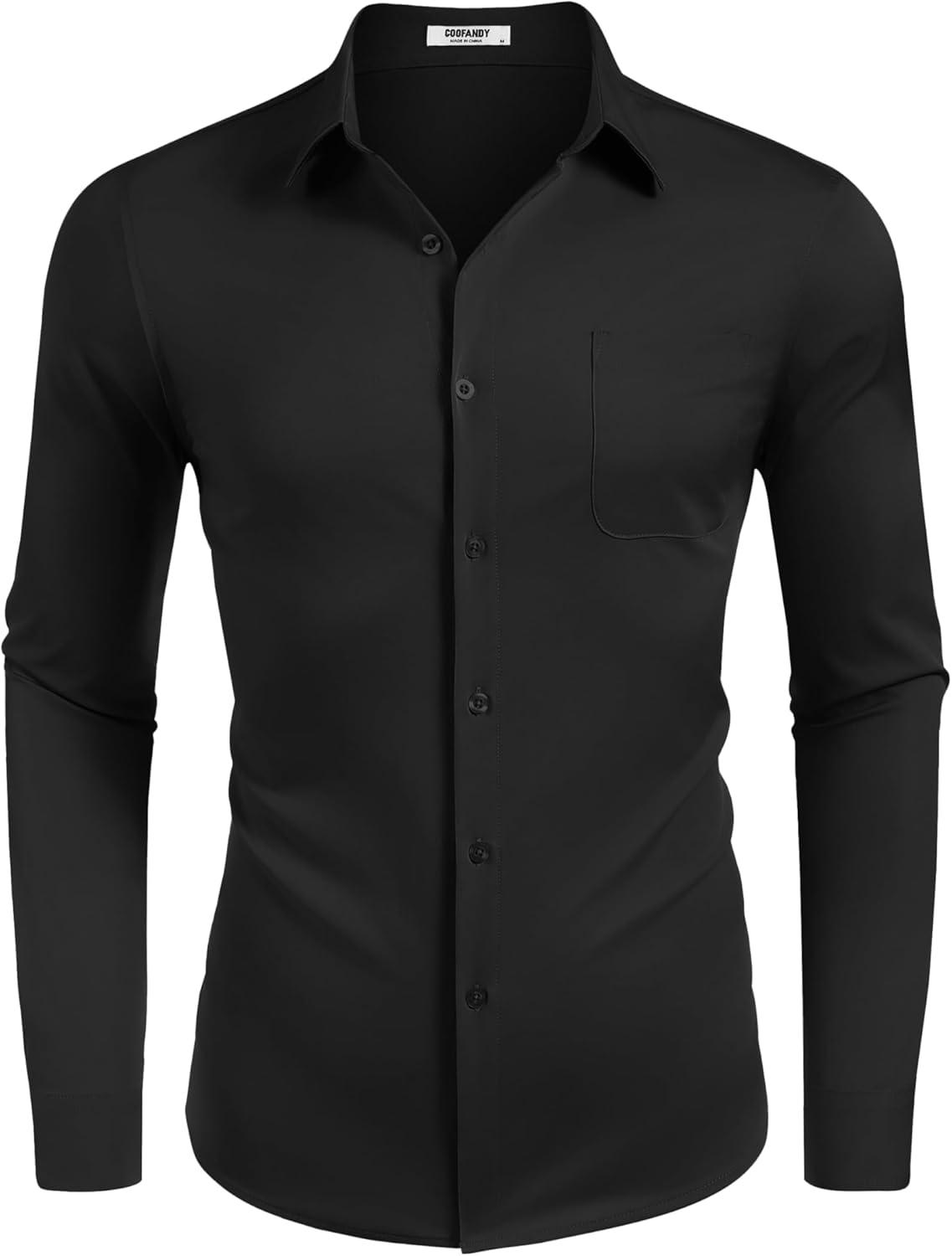 Get your hands on our exclusive COOFANDY Mens Dress Shirt Long Sleeve Button Down Shirts Business Casual Wrinkle Free Shirts with Pocket(Black) collection, now at a discounted price.