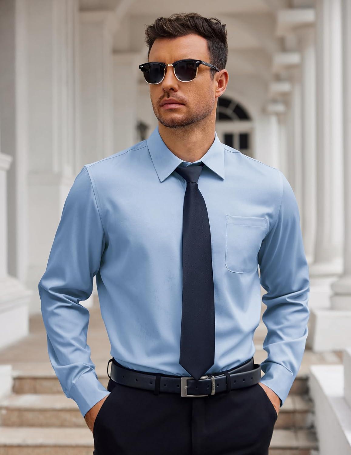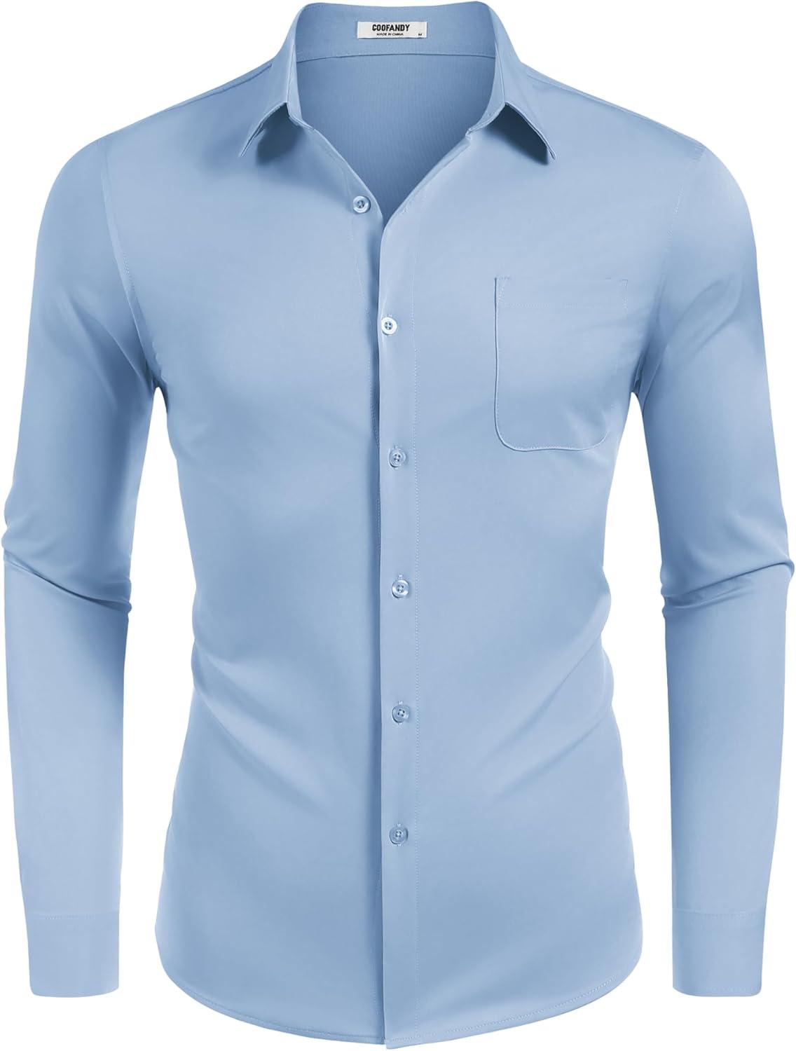 Save up to 40% on COOFANDY Mens Dress Shirt Long Sleeve Button Down Shirts Business Casual Wrinkle Free Shirts with Pocket(Light Blue) styles during our end-of-season sale.