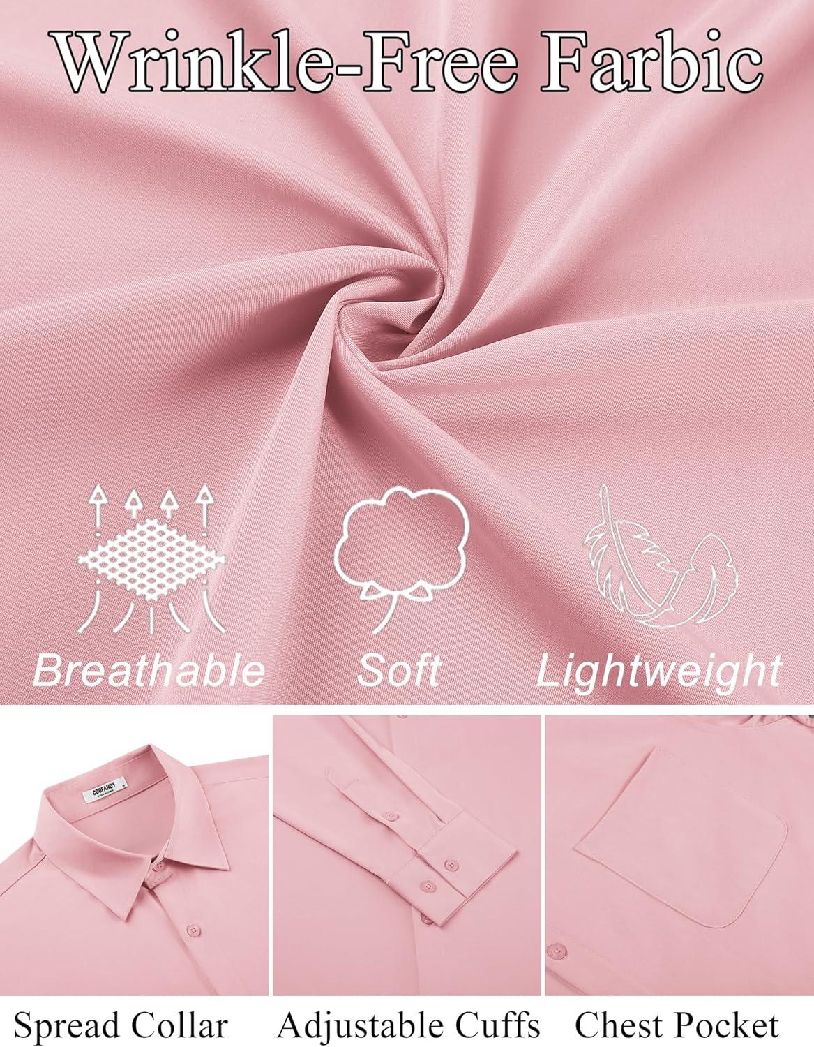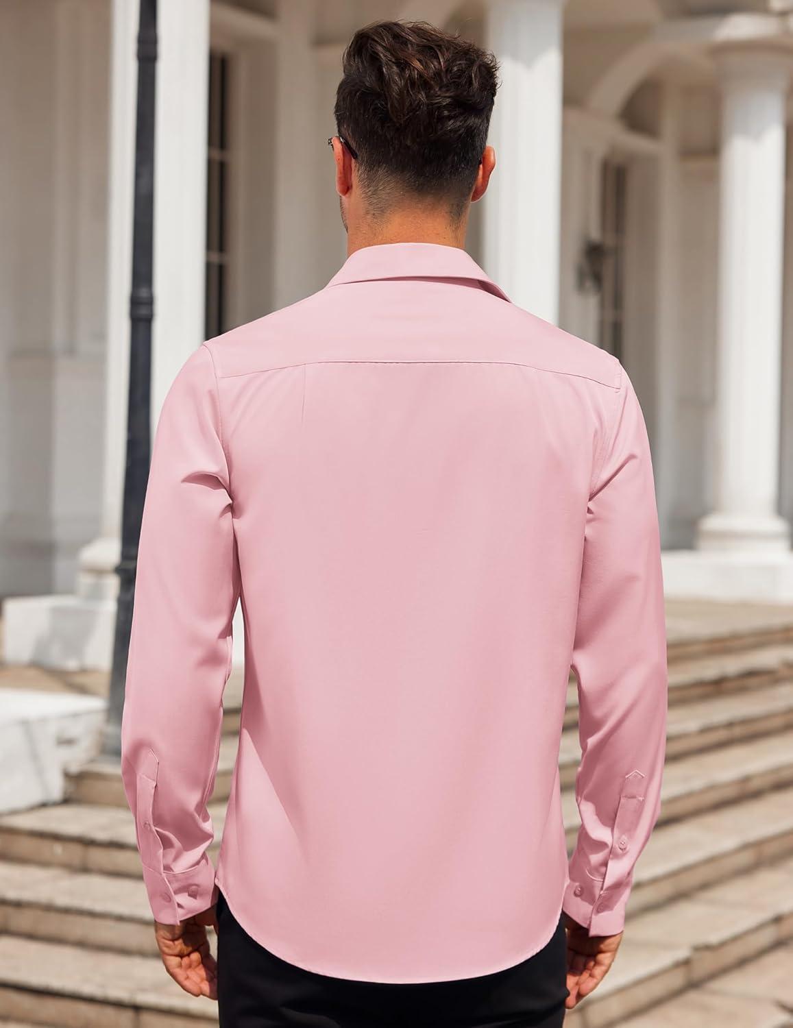COOFANDY Mens Dress Shirt Long Sleeve Button Down Shirts Business Casual Wrinkle Free Shirts with Pocket(Pink)