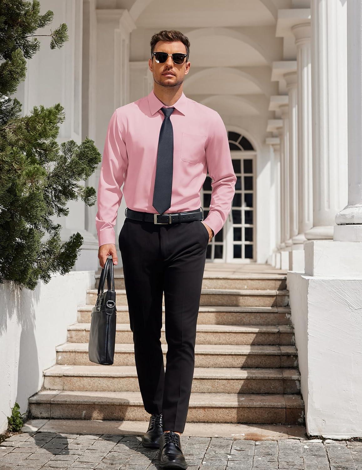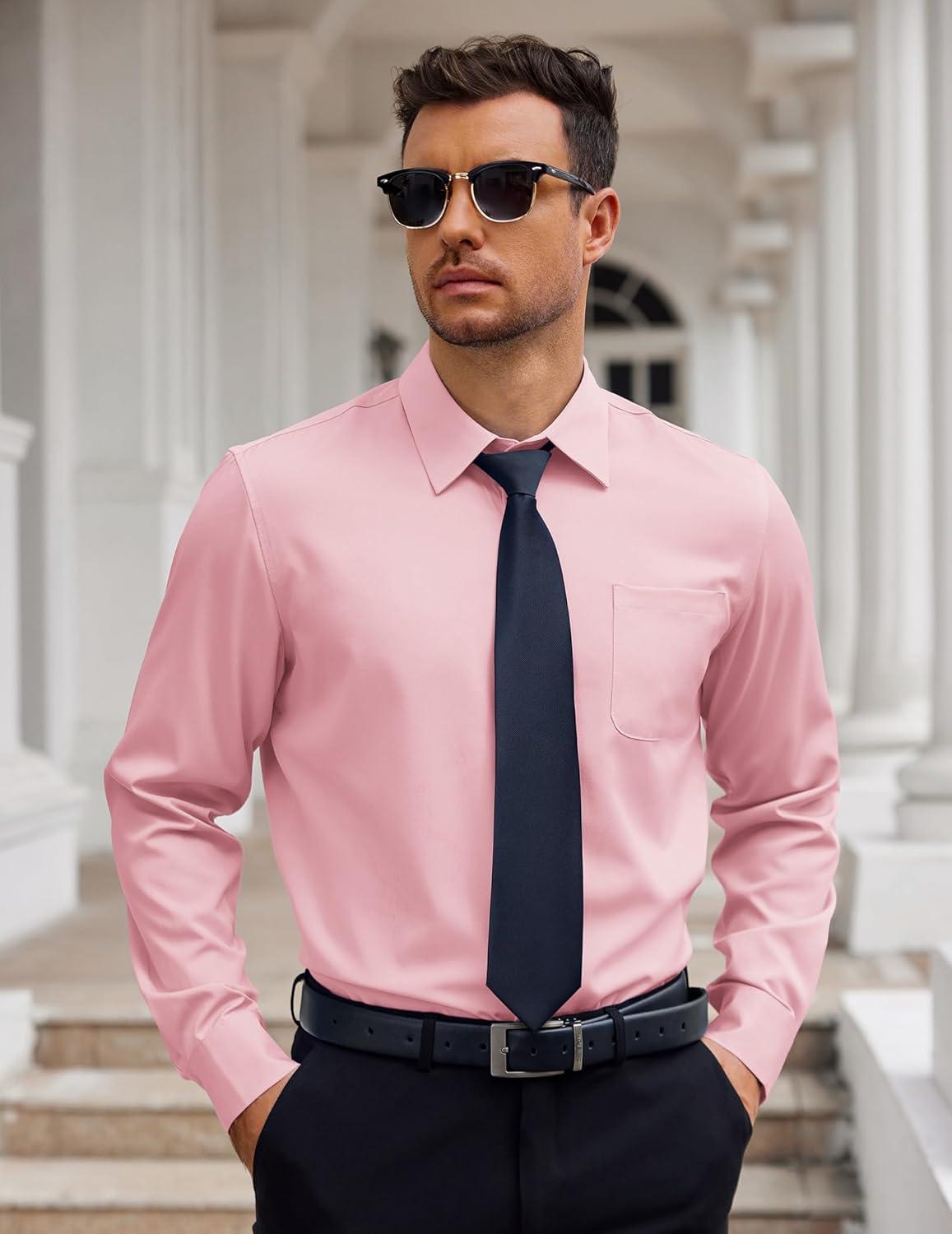 Get the COOFANDY Mens Dress Shirt Long Sleeve Button Down Shirts Business Casual Wrinkle Free Shirts with Pocket(Pink) you want at a price you can afford with our markdown sale.