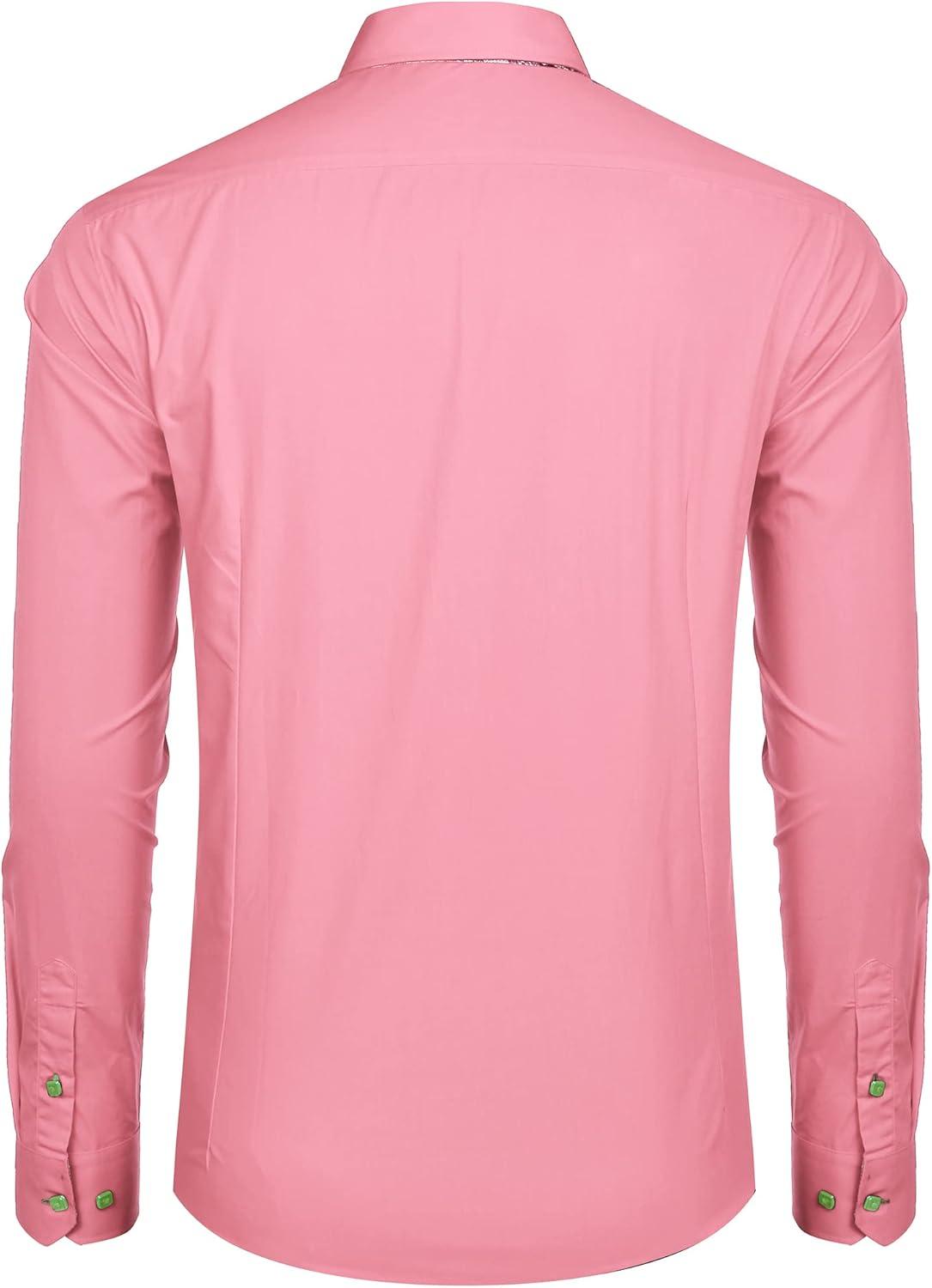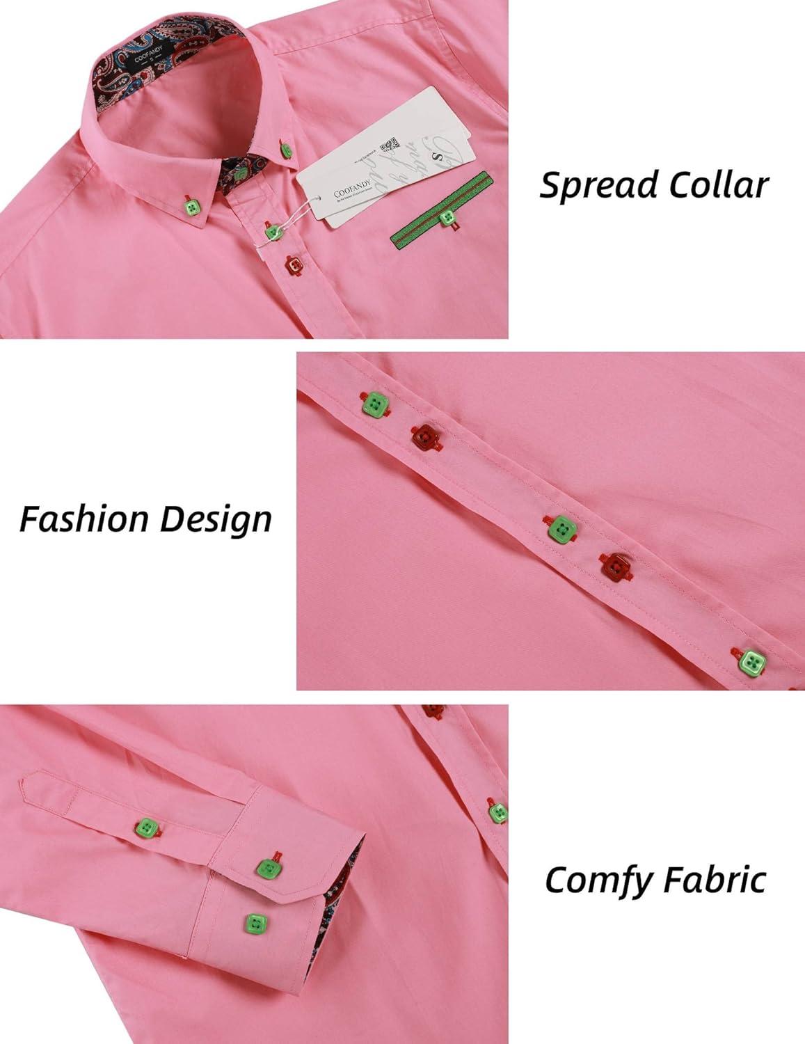 COOFANDY Mens Dress Shirt Long Sleeve Casual Button Down Paisley Shirts Party Wedding Dress Shirt(Pink)