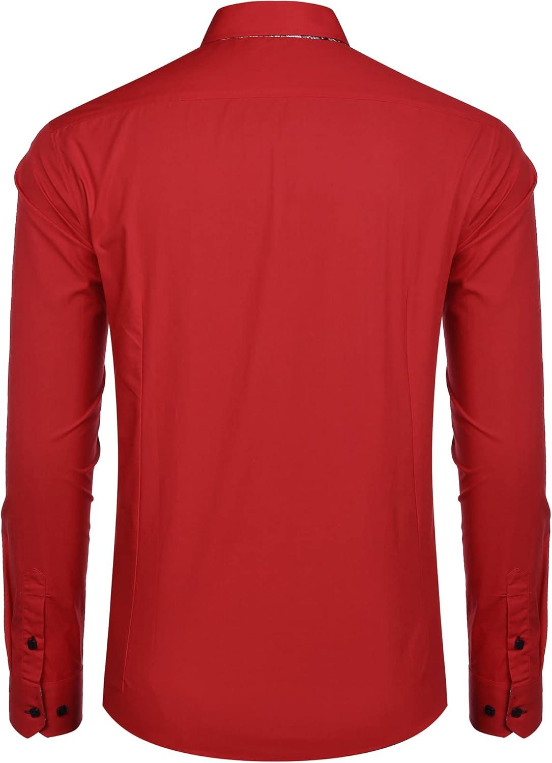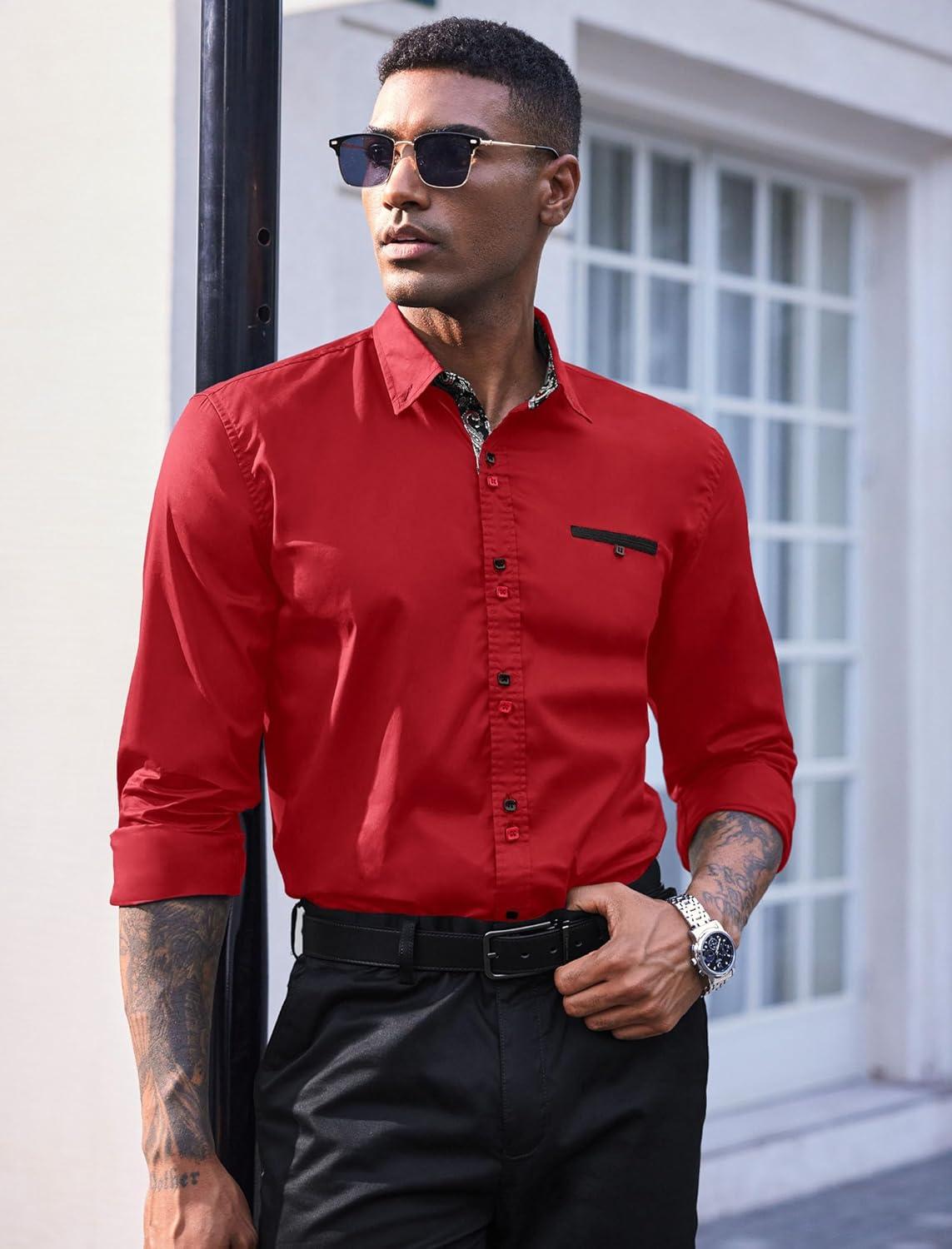 COOFANDY Mens Dress Shirt Long Sleeve Casual Button Down Paisley Shirts Party Wedding Dress Shirt(Red)