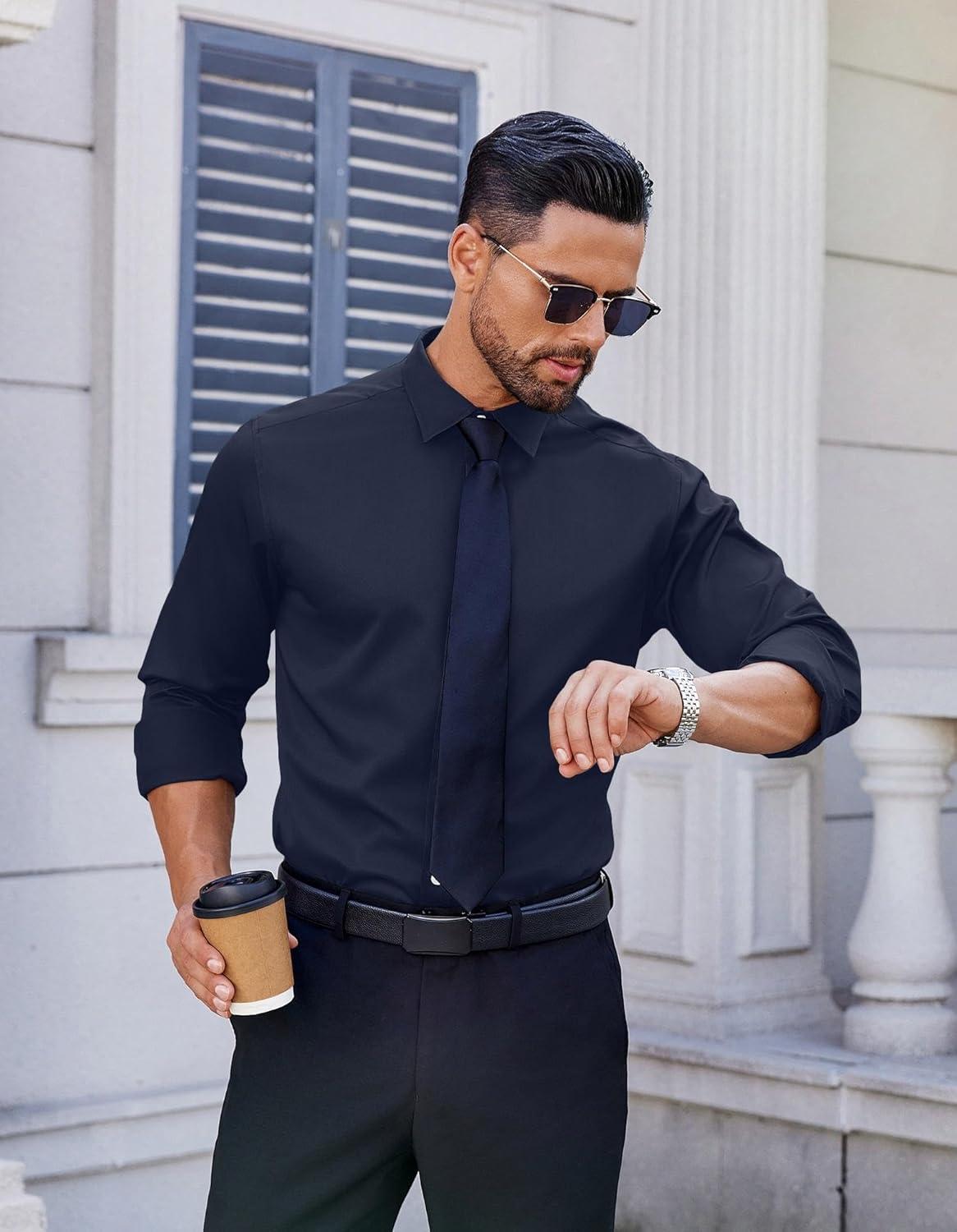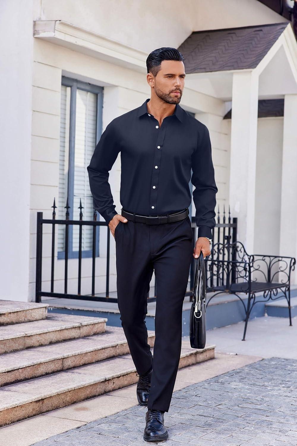 COOFANDY Mens Dress Shirt Long Sleeve Wrinkle Free Formal Shirts Business Casual Button Down Shirts(Black)
