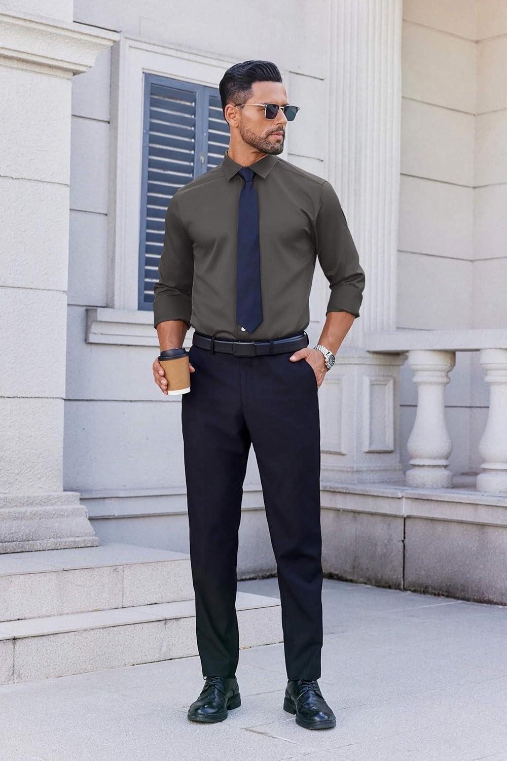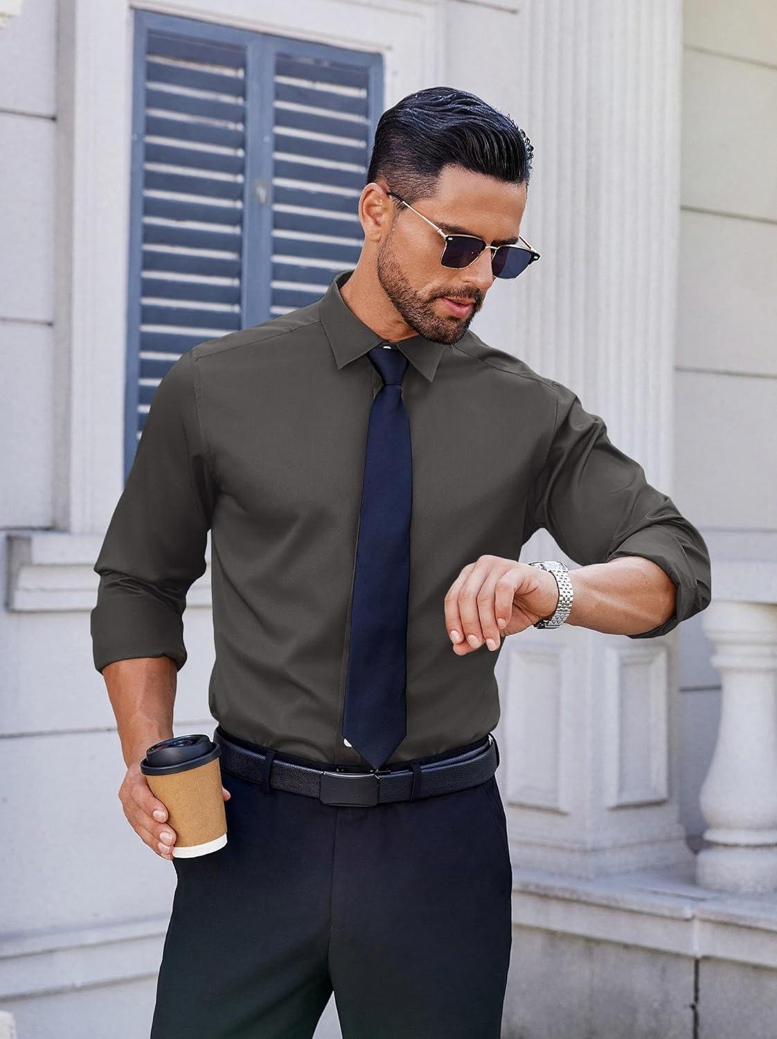 COOFANDY Mens Dress Shirt Long Sleeve Wrinkle Free Formal Shirts Business Casual Button Down Shirts(Dark Grey)
