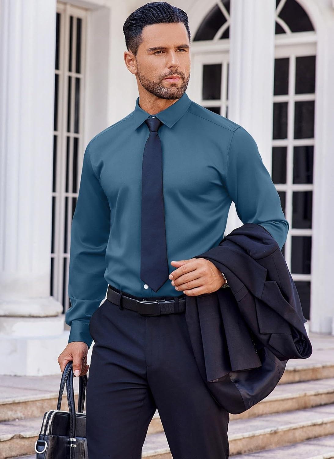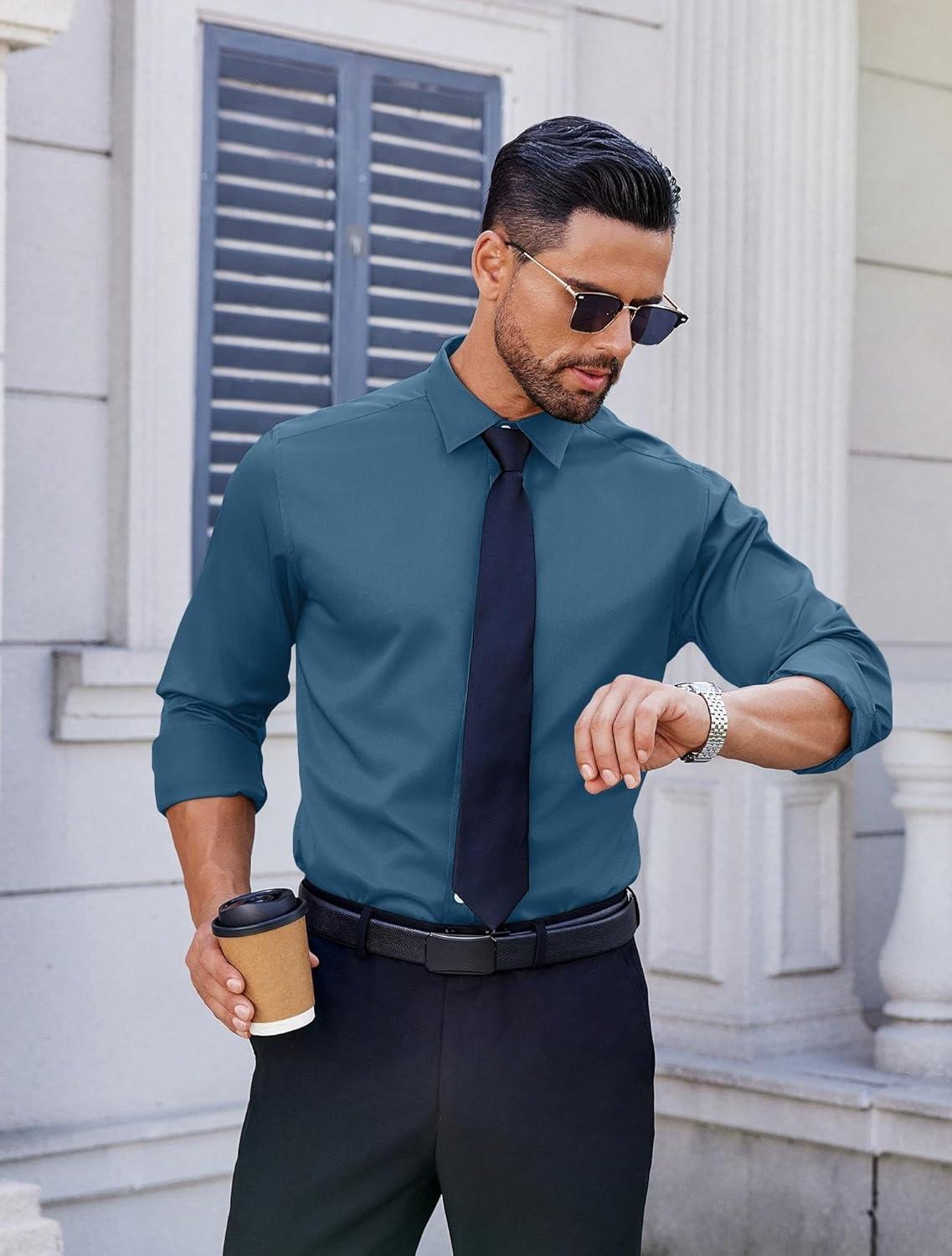COOFANDY Mens Dress Shirt Long Sleeve Wrinkle Free Formal Shirts Business Casual Button Down Shirts(Grey Blue)
