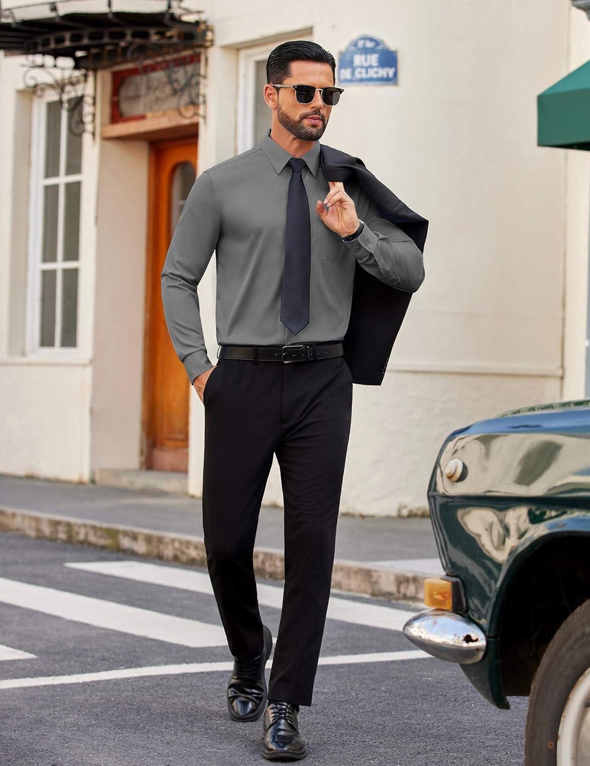 COOFANDY Men's Dress Shirt Solid Long Sleeve Wrinkle Free Formal Shirt Business Button Down Shirts with Pocket(Dark Grey)
