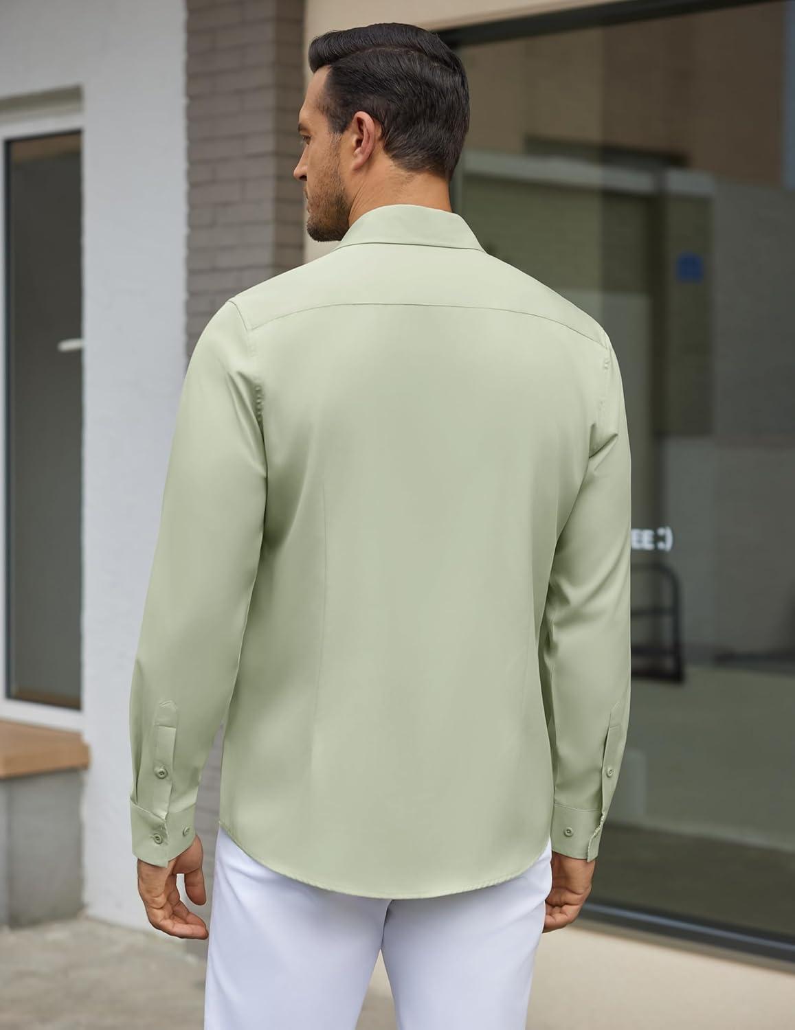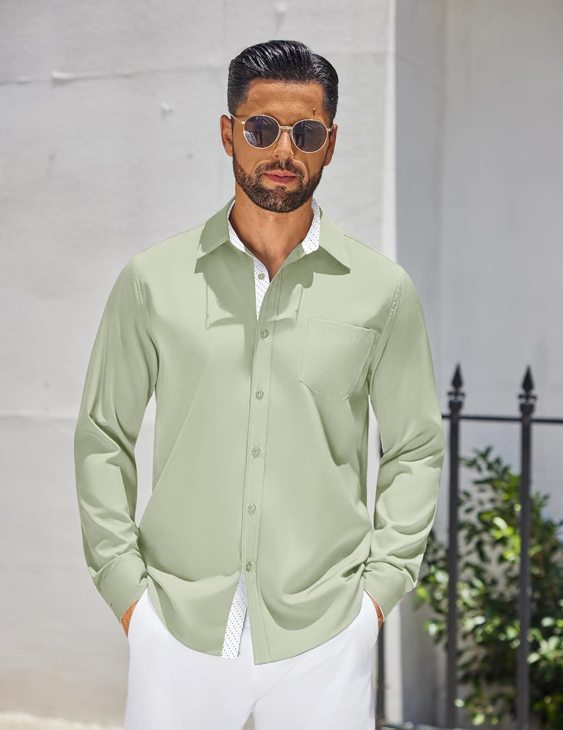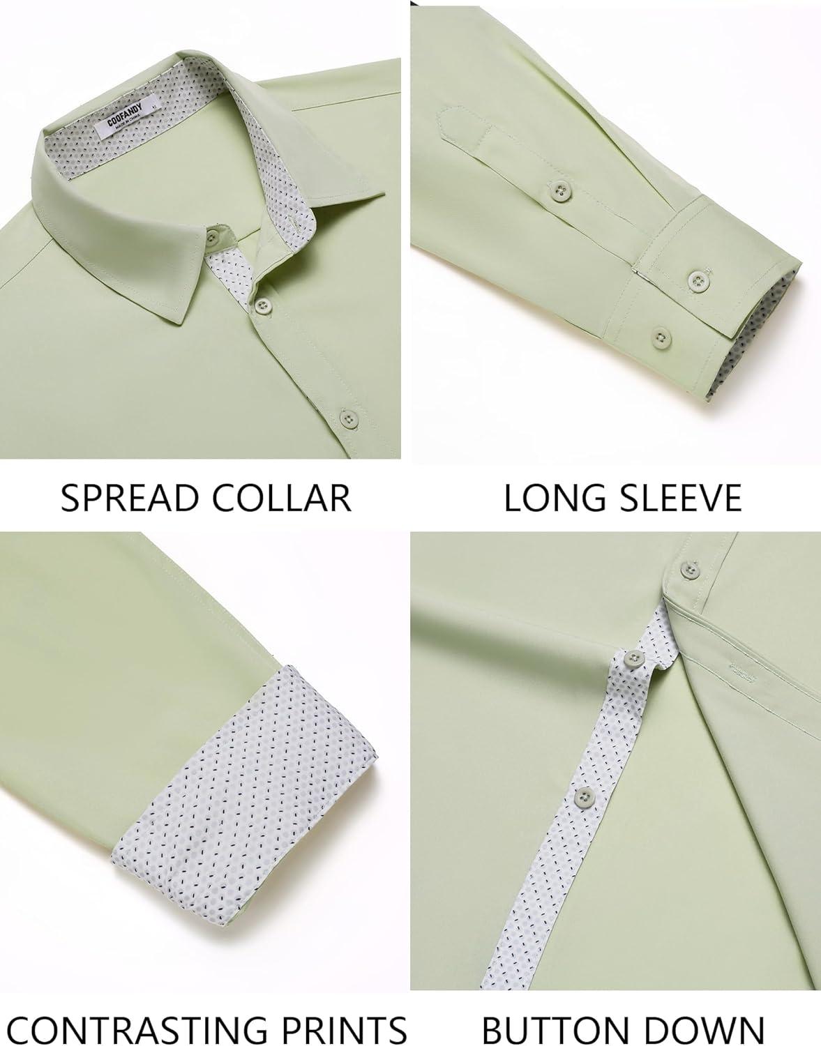 COOFANDY Men's Dress Shirt Wrinkle Free Regular Fit Stretch Long Sleeve Button Down Shirts(Light Green)