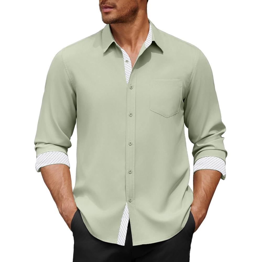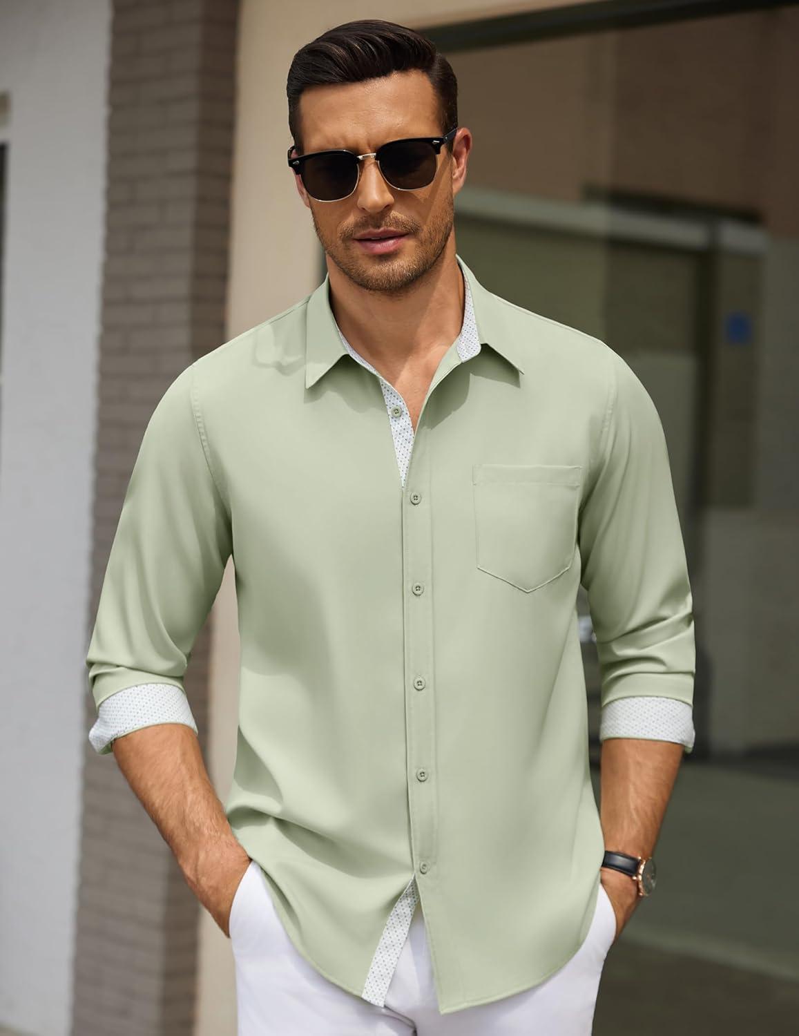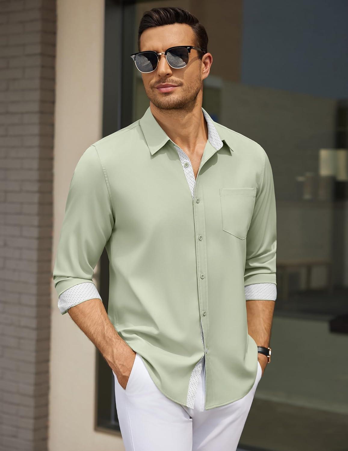 COOFANDY Men's Dress Shirt Wrinkle Free Regular Fit Stretch Long Sleeve Button Down Shirts(Light Green)