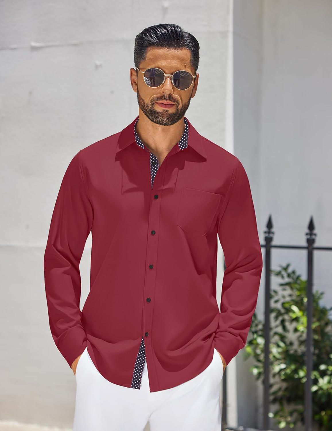 Save big on COOFANDY Men’s Dress Shirt Wrinkle Free Regular Fit Stretch Long Sleeve Button Down Shirts(Red Dahlia) and accessories during our BOGO sale. Buy one, get one 50% off!