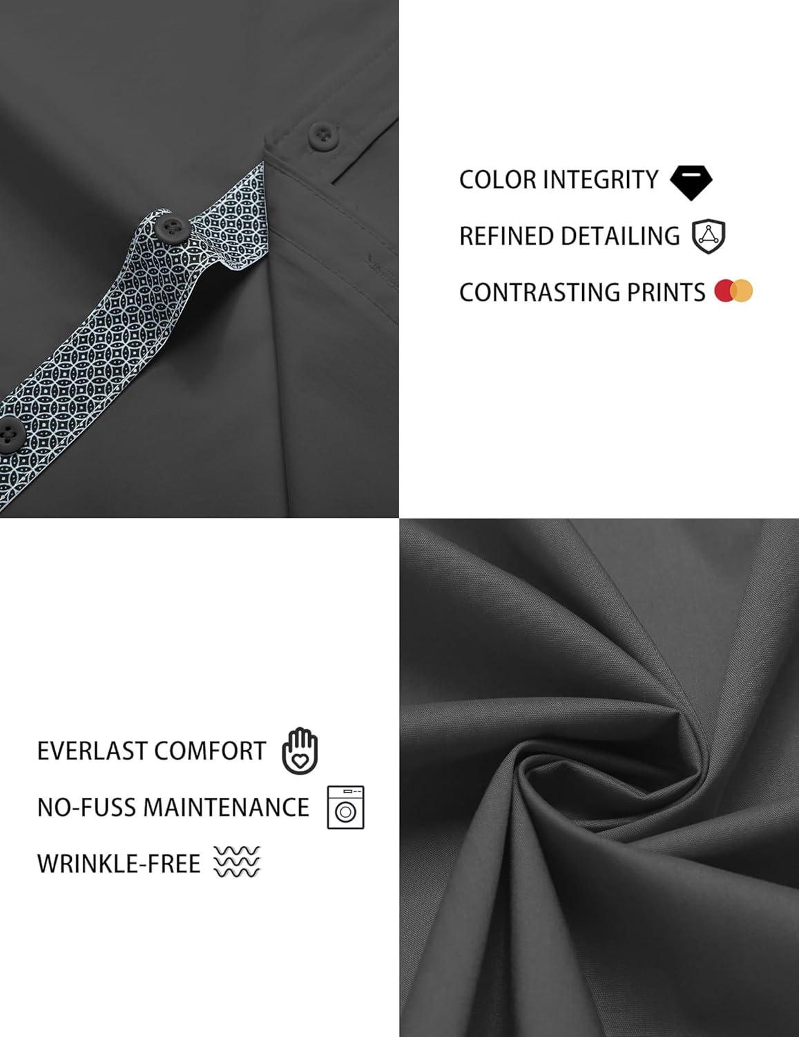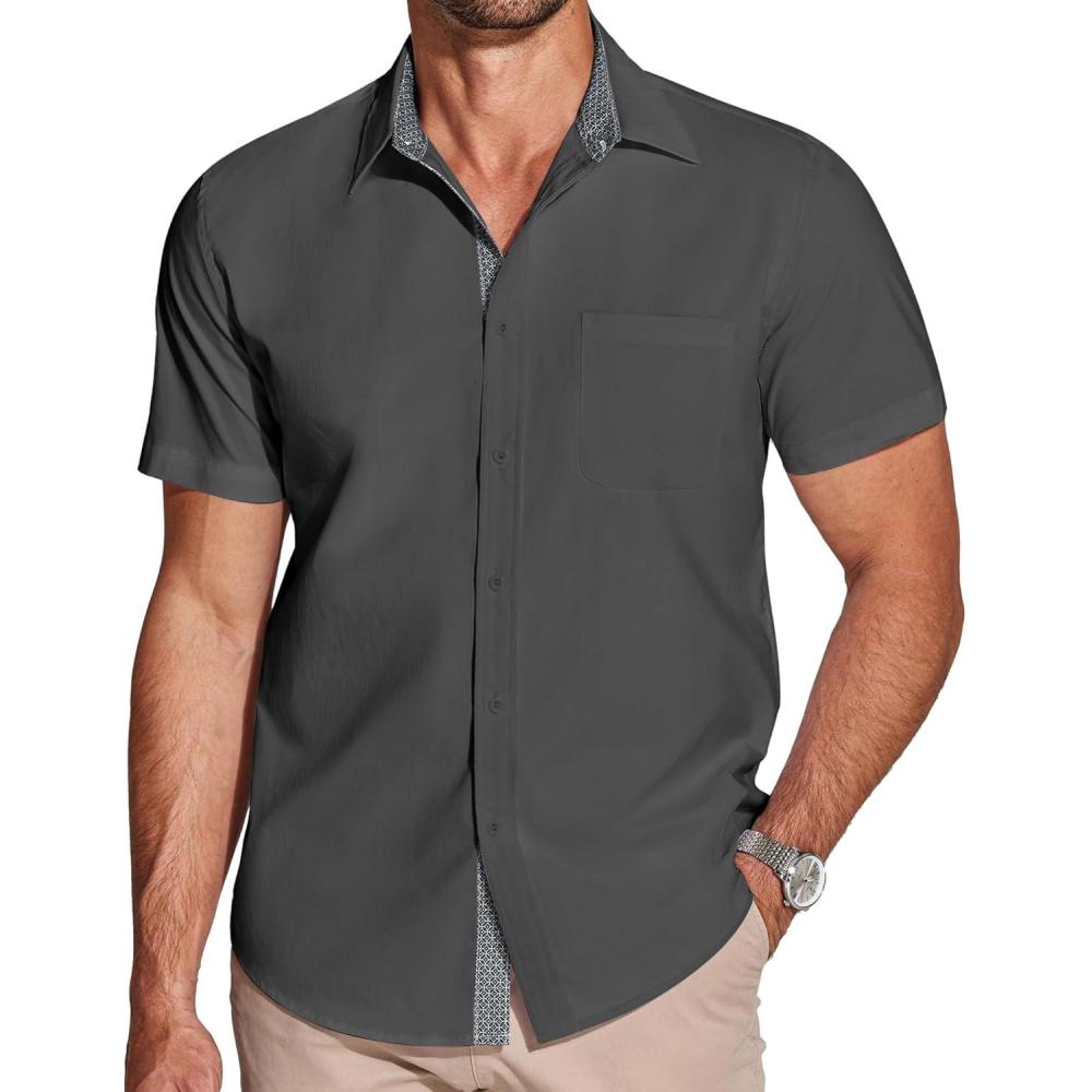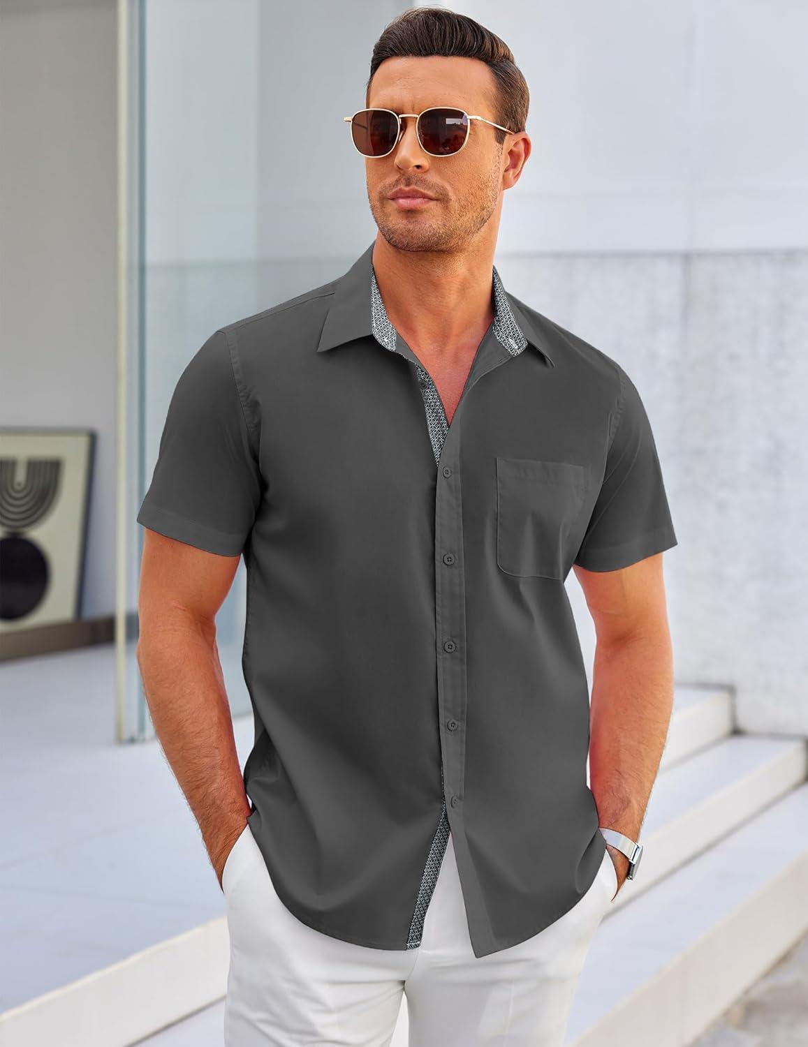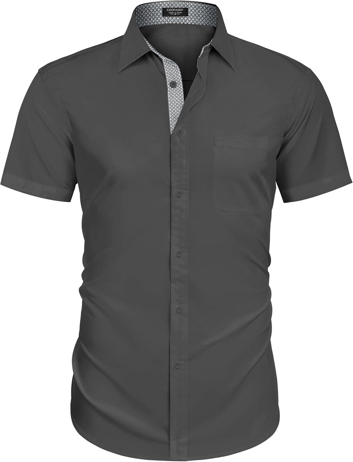 COOFANDY Men's Dress Shirt Wrinkle Free Regular Fit Stretch Short Sleeve Button Down Shirts(Dark Grey)