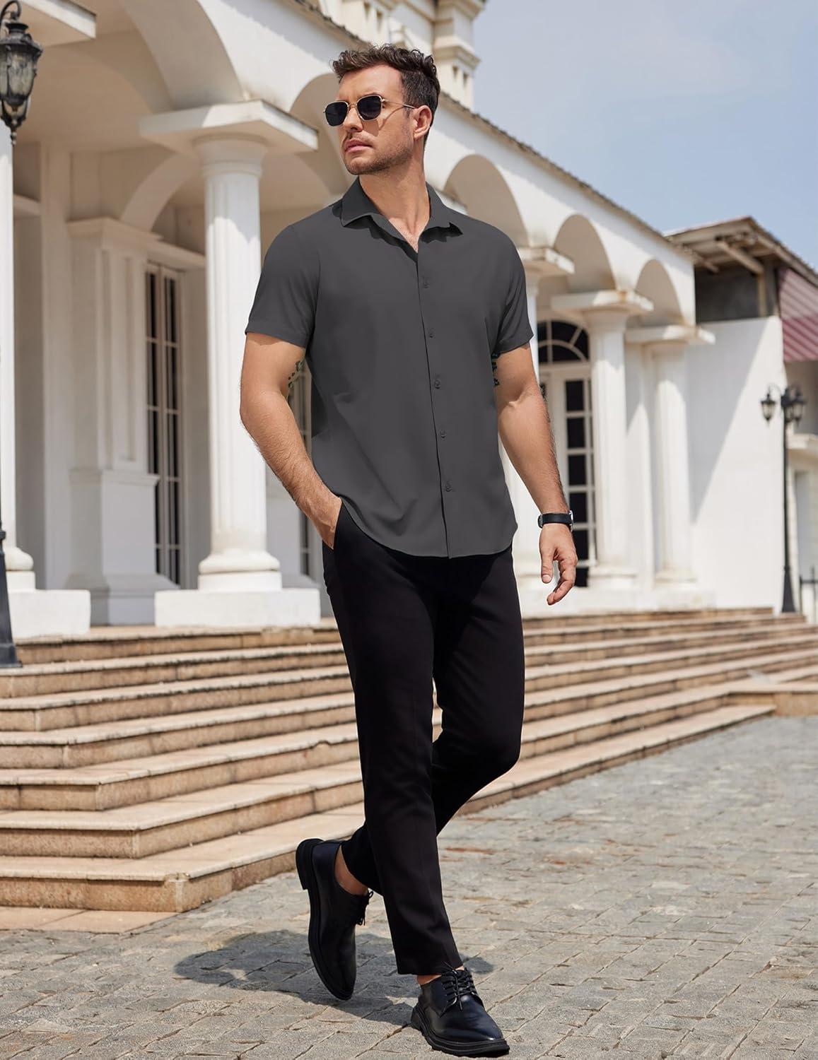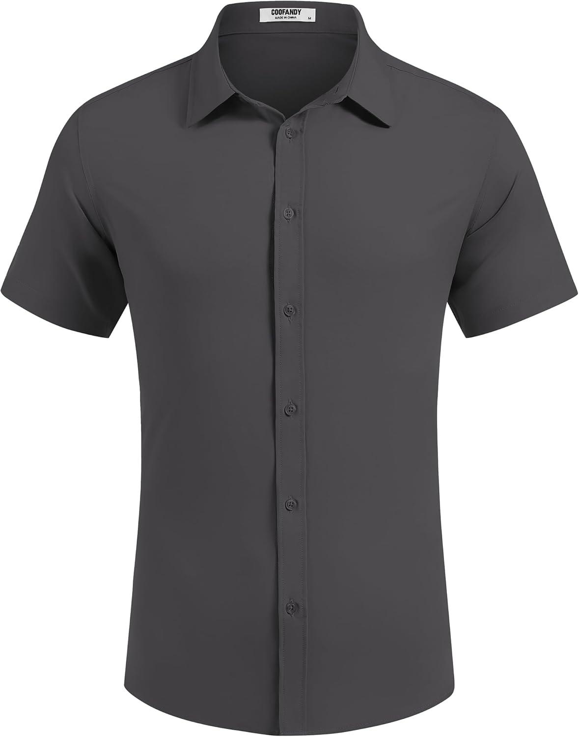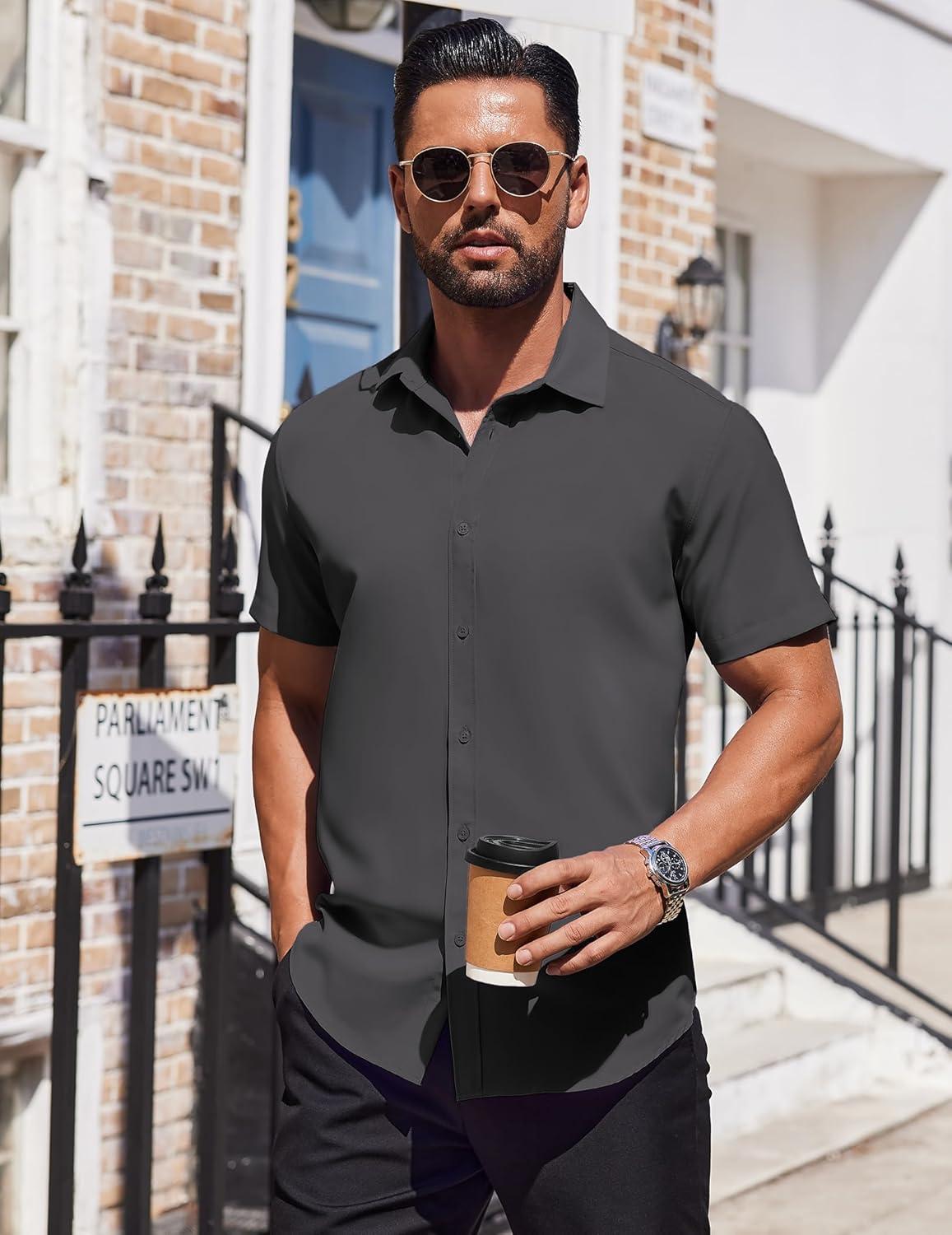 COOFANDY Mens Dress Shirts Button Down Short Sleeve Shirt Summer Shirts Business Casual Wedding Shirt(Dark Grey)