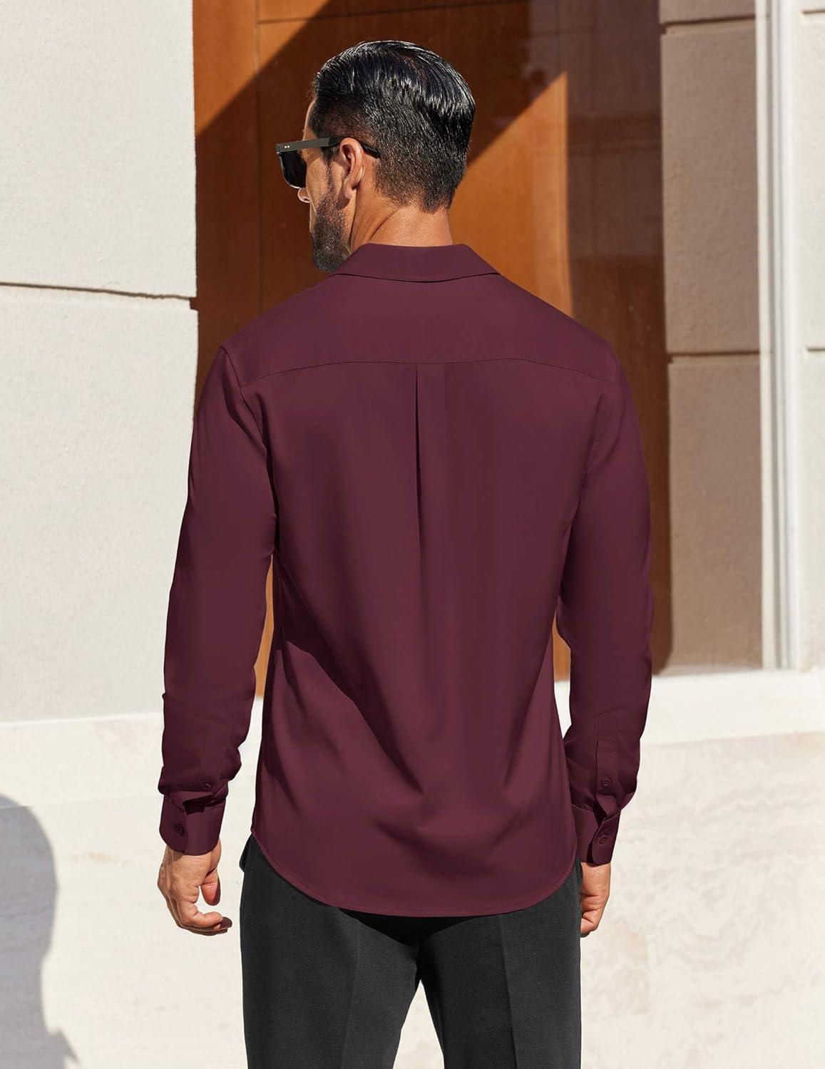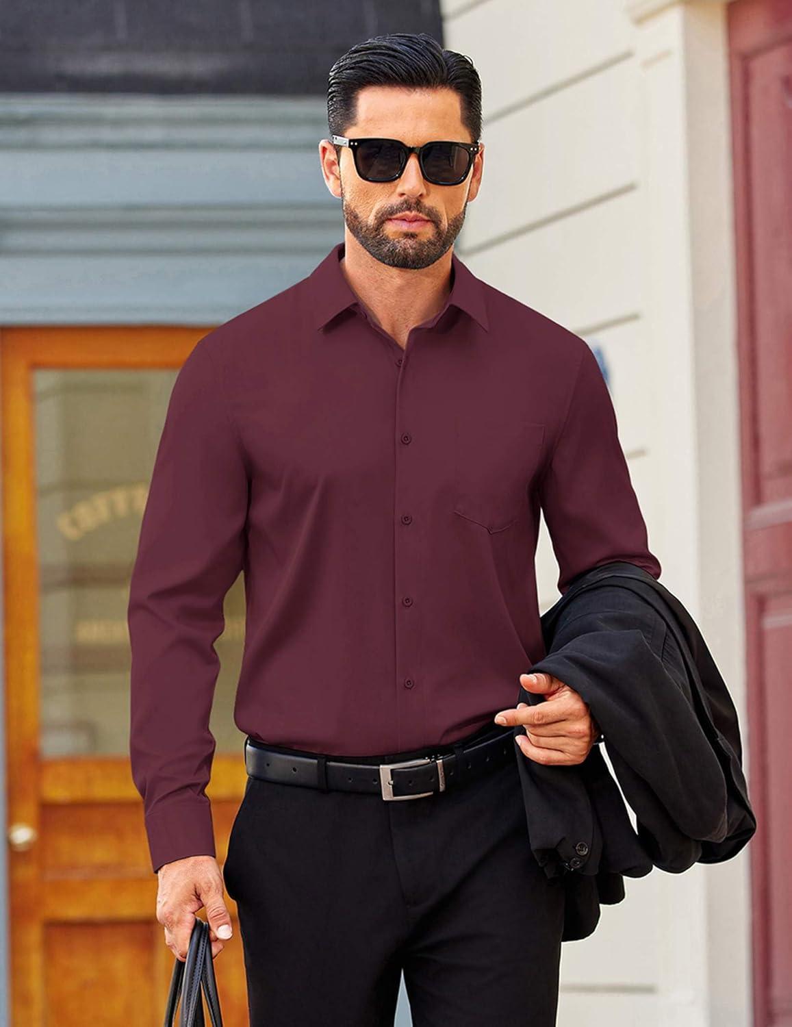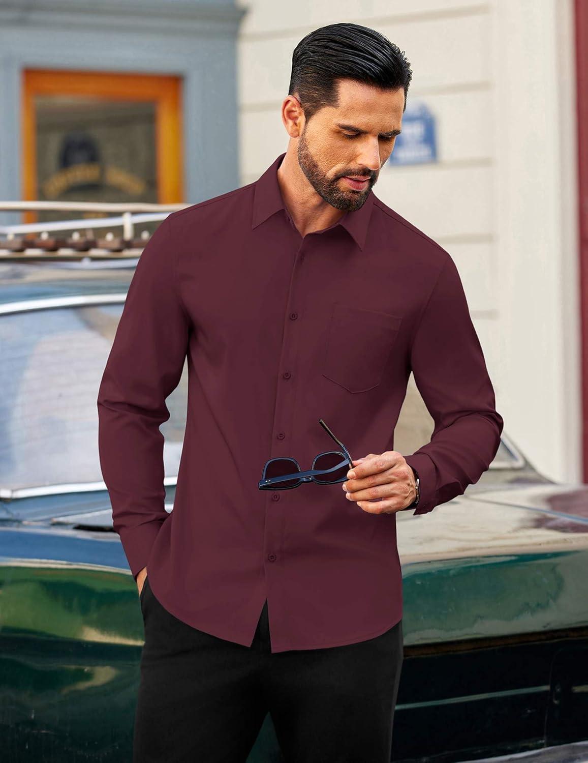 COOFANDY Mens Dress Shirts Long Sleeve Business Casual Button Down Shirts Regular Fit Formal Shirts(Date Red)