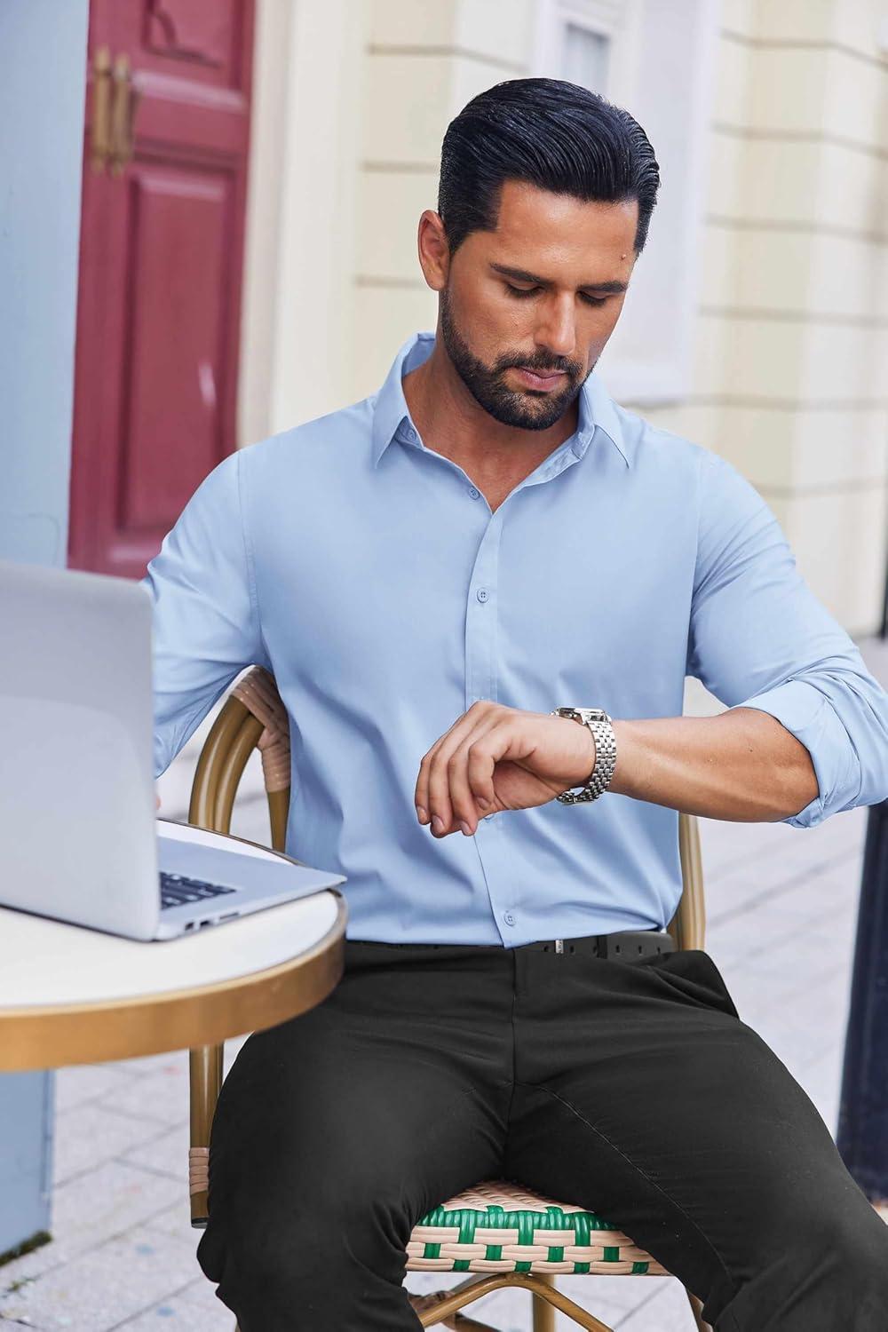 Save big on COOFANDY Mens Dress Shirts Long Sleeve Button Down Shirt Regular Fit Formal Business Shirts(Light Blue) during our summer blowout sale. Limited quantities available.