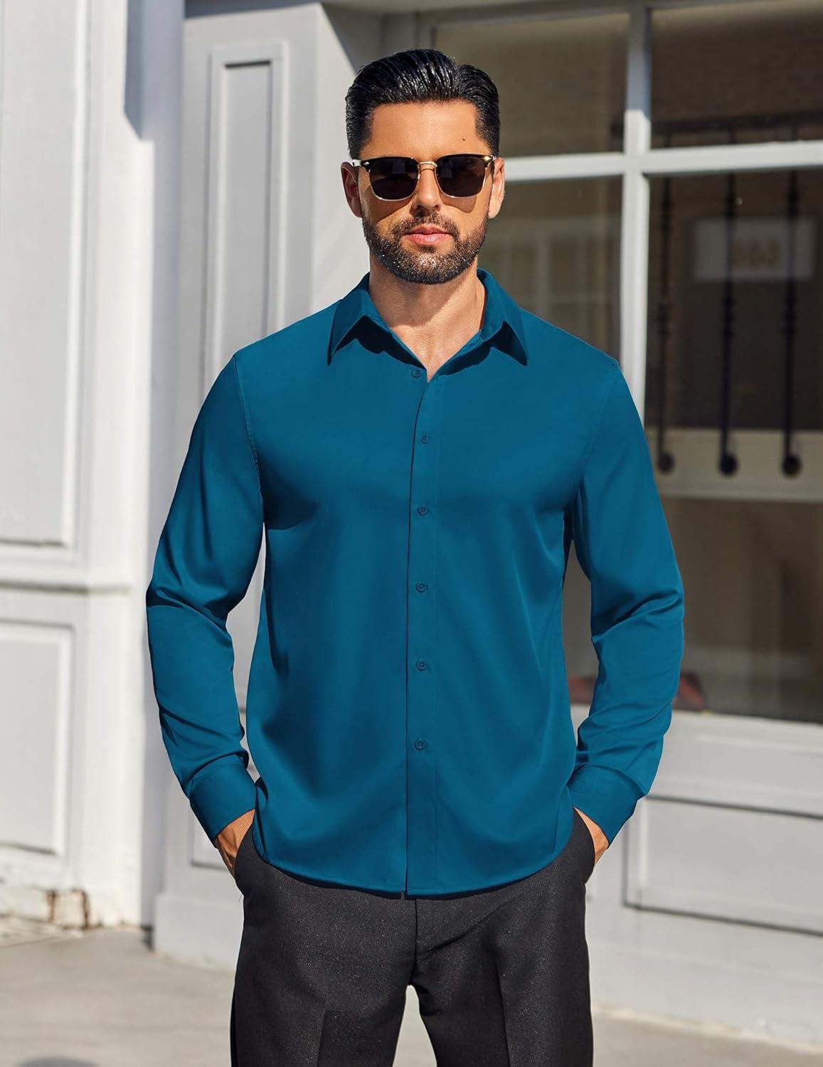 COOFANDY Mens Dress Shirts Long Sleeve Button Down Shirts Regular Fit Business Casual Shirts(Lake Blue)