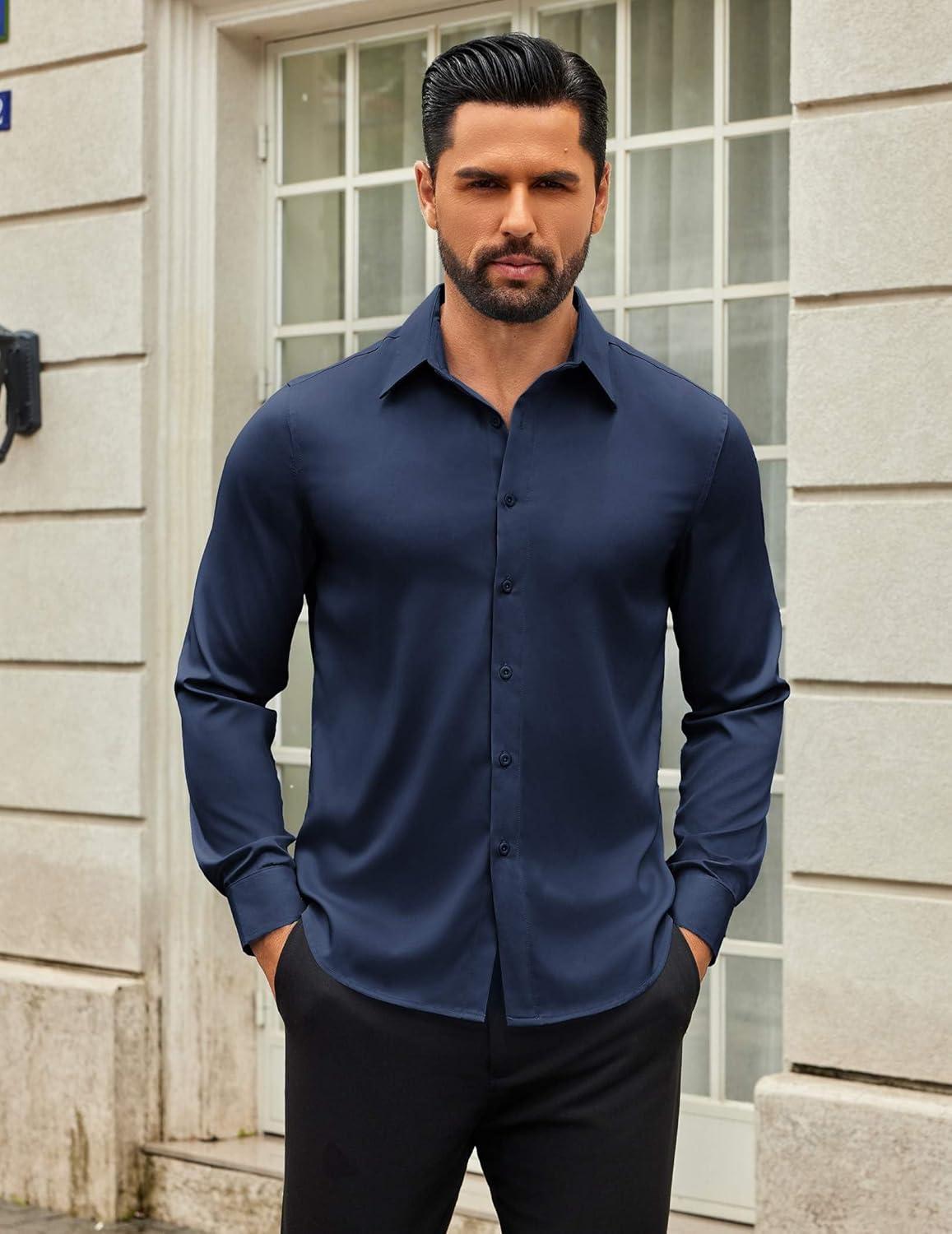 COOFANDY Mens Dress Shirts Long Sleeve Button Down Shirts Regular Fit Business Casual Shirts(Navy Blue)