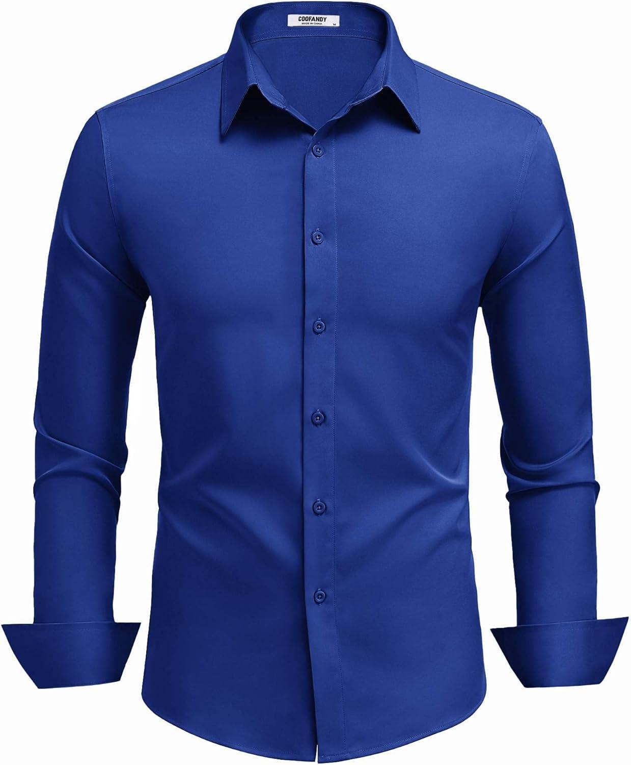 COOFANDY Mens Dress Shirts Long Sleeve Button Down Shirts Regular Fit Business Casual Shirts(Royal Blue)