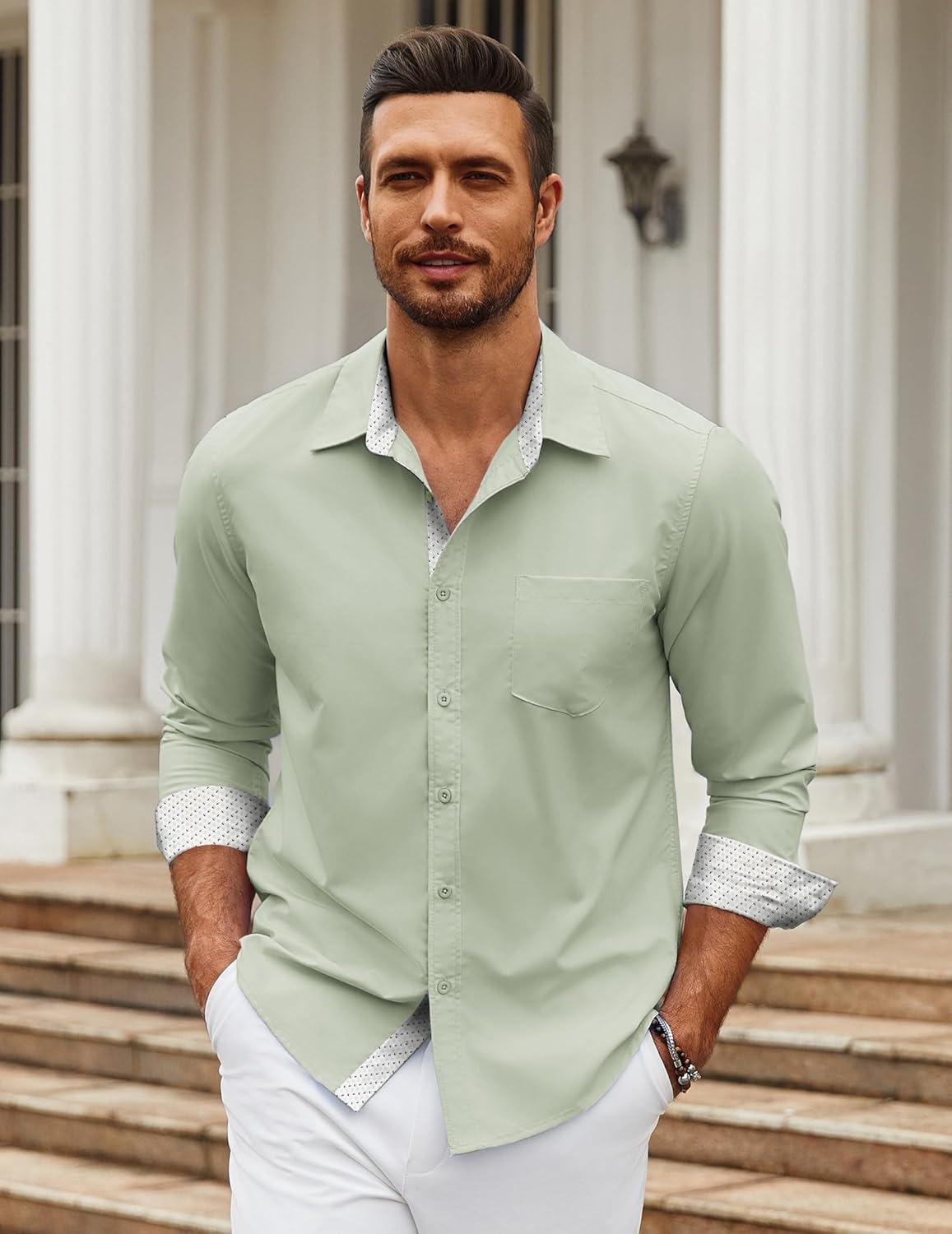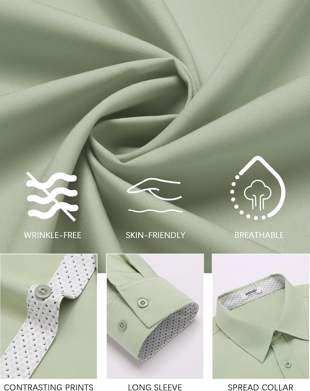 COOFANDY Mens Dress Shirts Long Sleeve Button Down Shirts Untucked Wrinkle-Free Business Casual Shirts(Light Green)