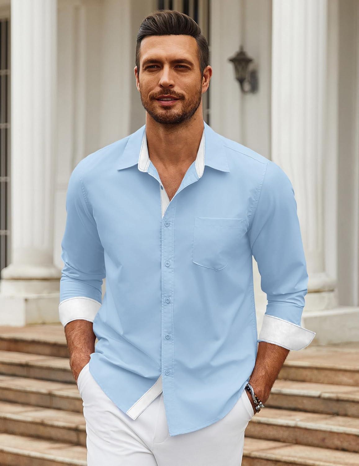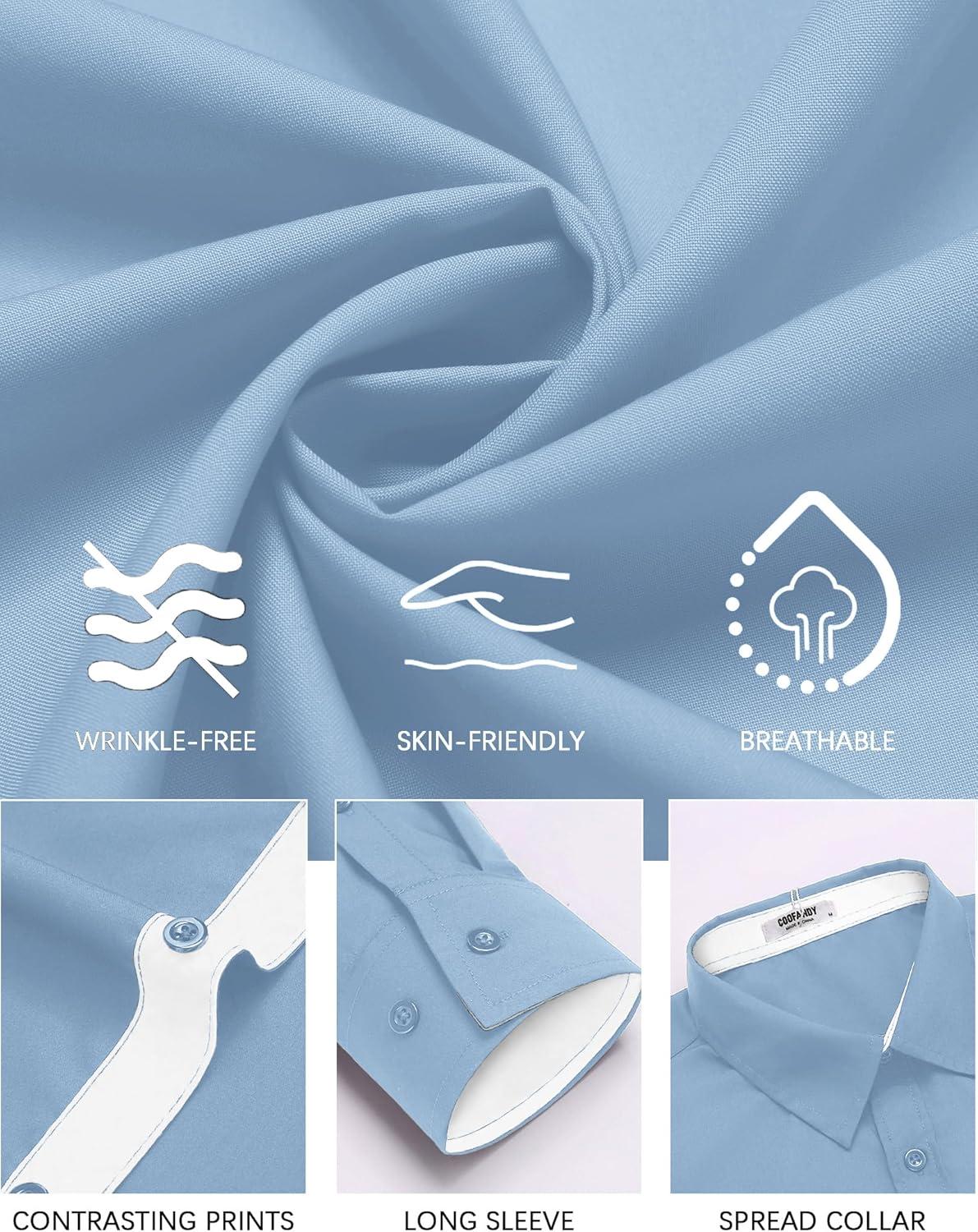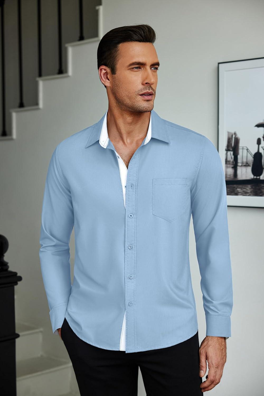 COOFANDY Mens Dress Shirts Long Sleeve Button Down Shirts Untucked Wrinkle-Free Business Casual Shirts(Sky Blue)