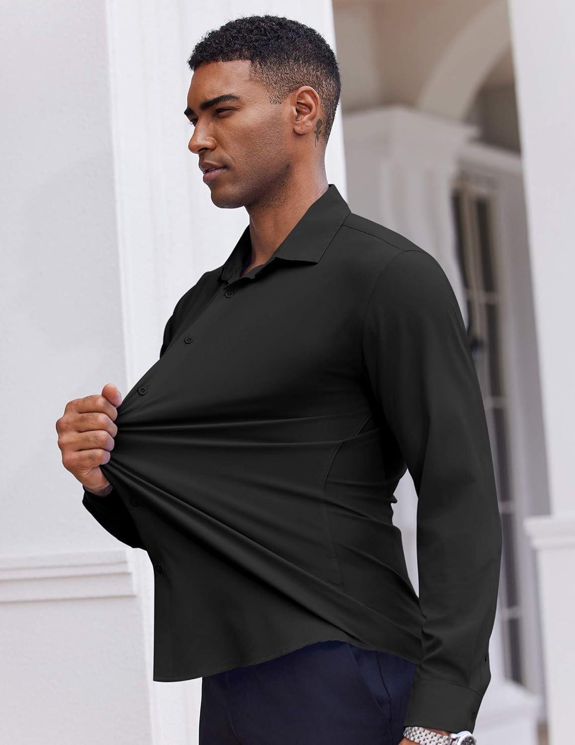COOFANDY Men's Dress Shirts Long Sleeve Casual Button Down Shirt Solid Regular Fit Formal Business Shirts(Black)