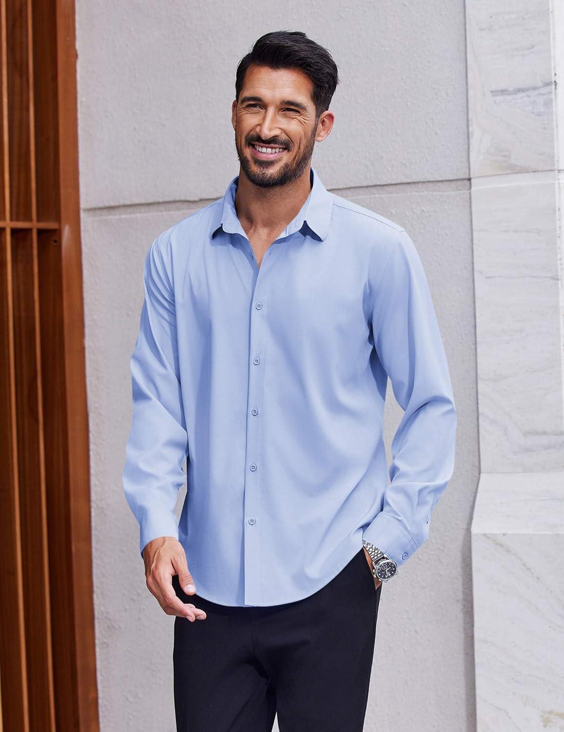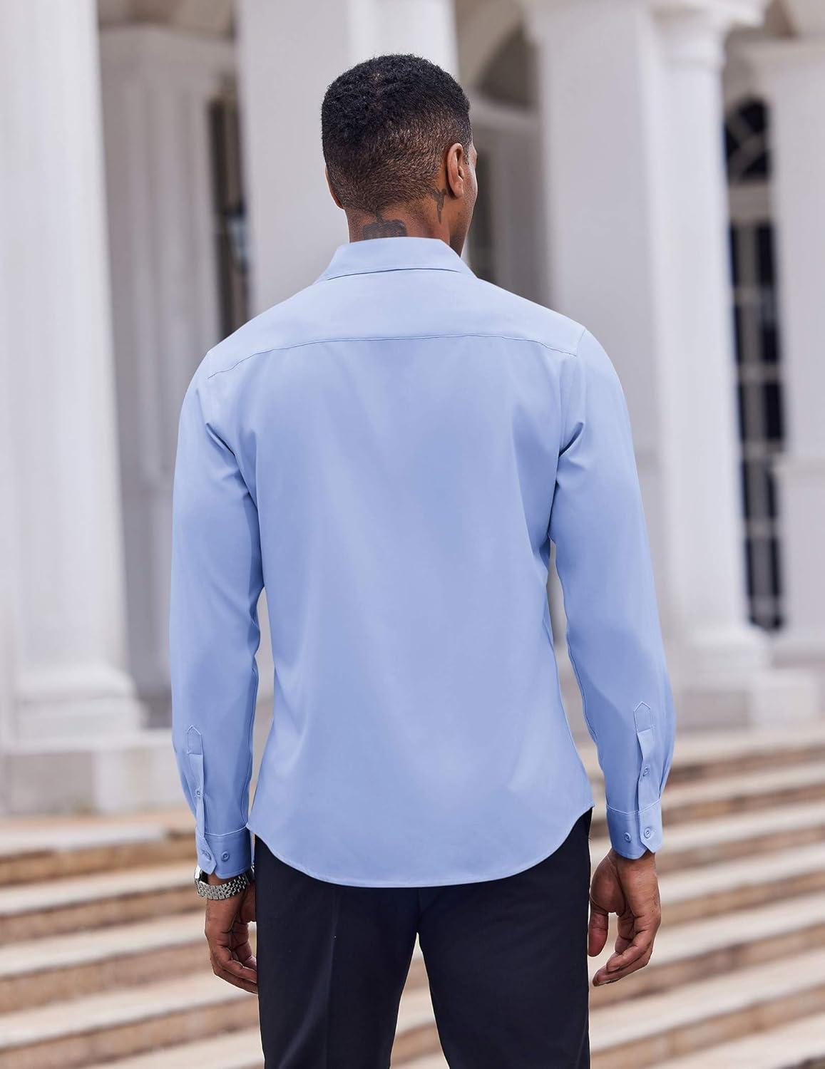 COOFANDY Men's Dress Shirts Long Sleeve Casual Button Down Shirt Solid Regular Fit Formal Business Shirts(Clear Blue)