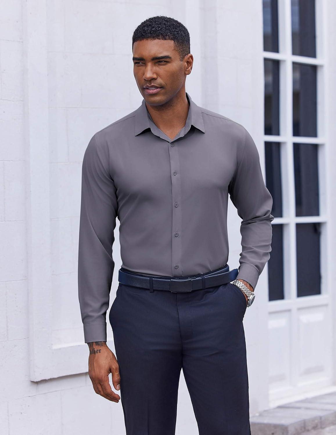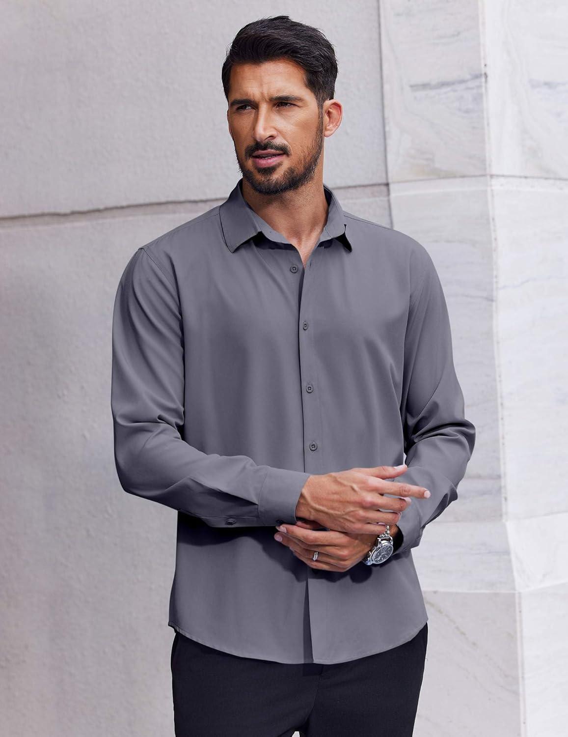 COOFANDY Men's Dress Shirts Long Sleeve Casual Button Down Shirt Solid Regular Fit Formal Business Shirts(Dark Grey)