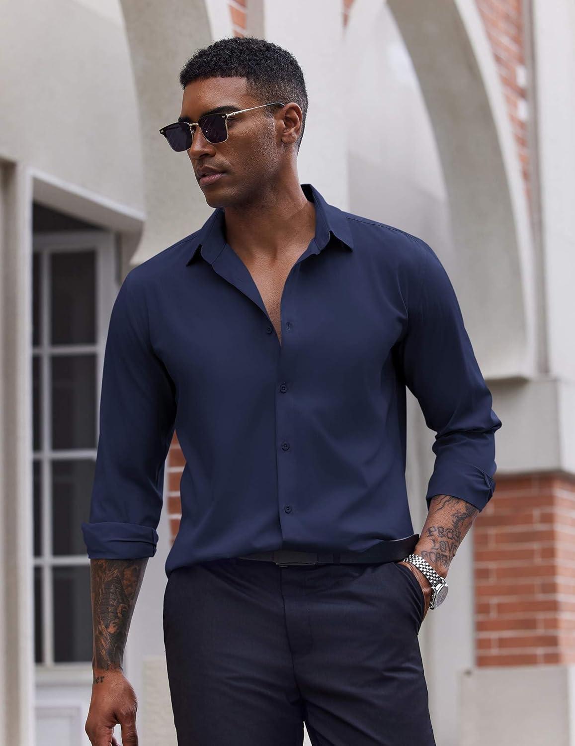 COOFANDY Men's Dress Shirts Long Sleeve Casual Button Down Shirt Solid Regular Fit Formal Business Shirts(Navy Blue)