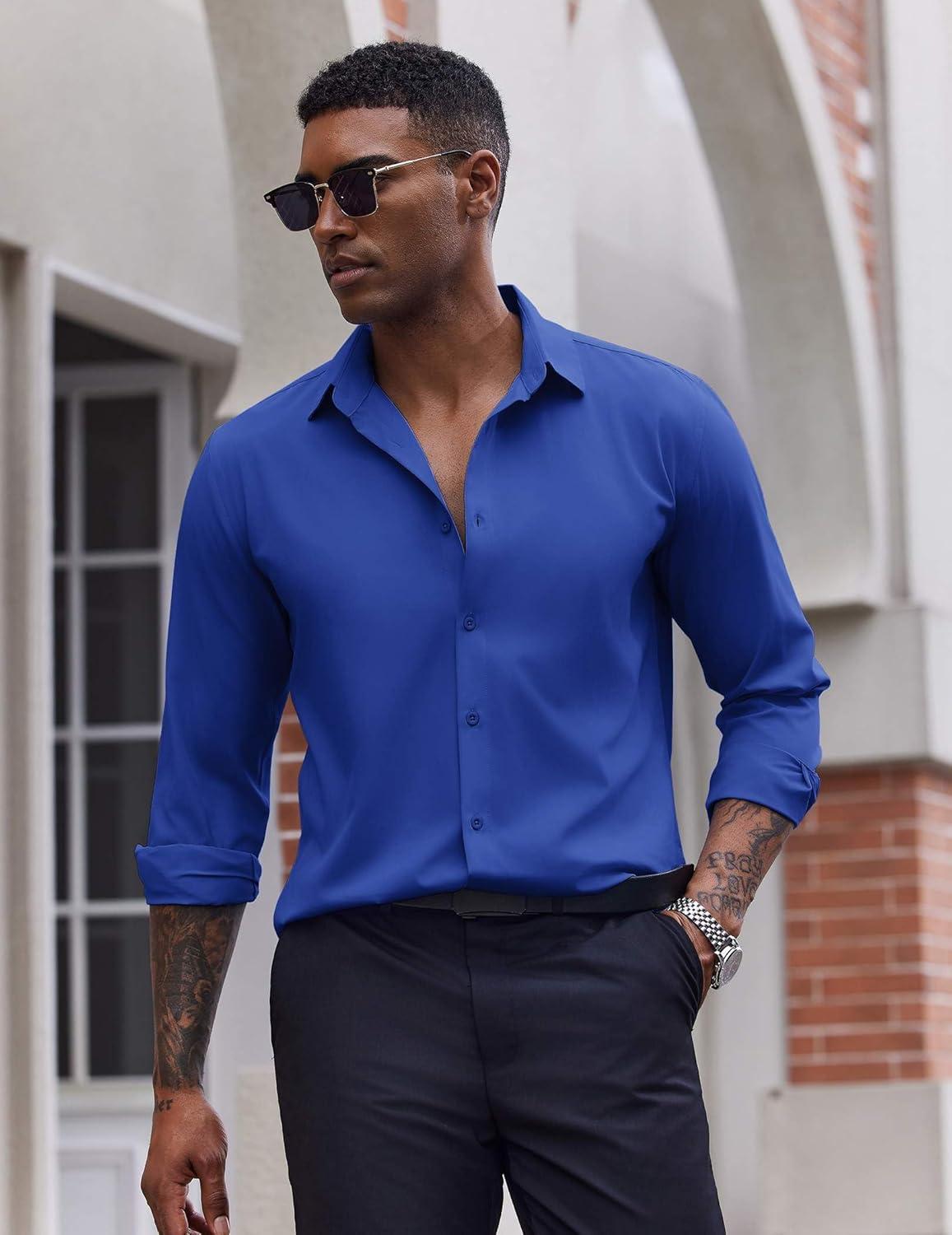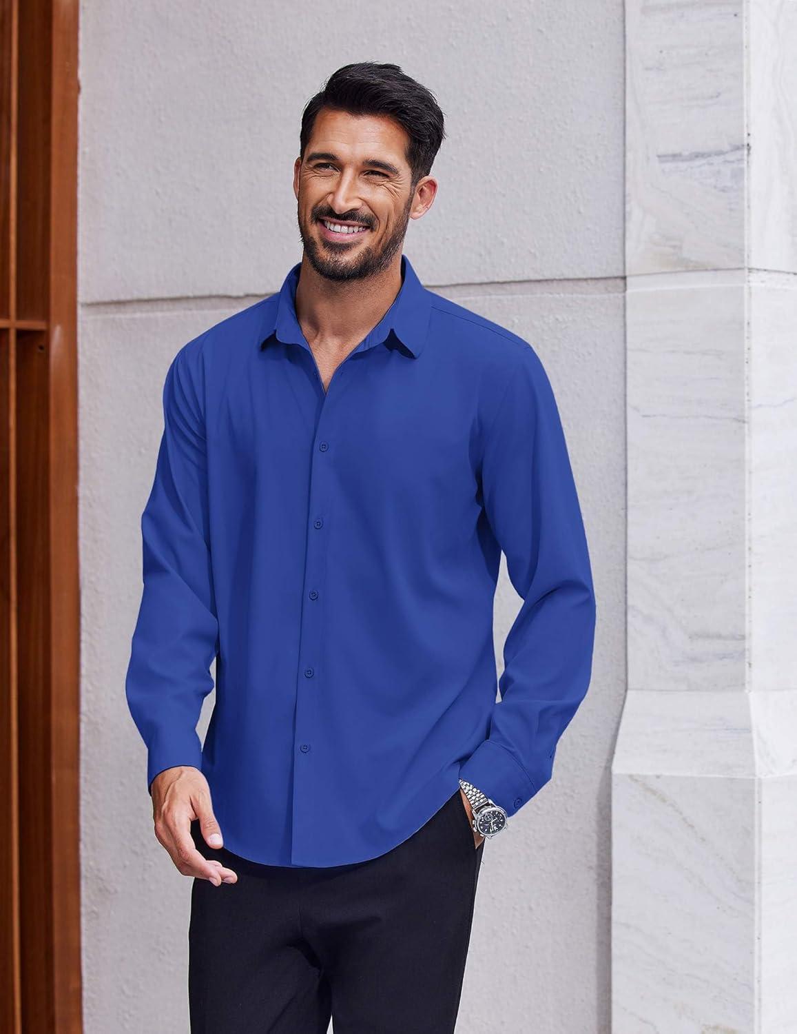 COOFANDY Men's Dress Shirts Long Sleeve Casual Button Down Shirt Solid Regular Fit Formal Business Shirts(Sky Blue)
