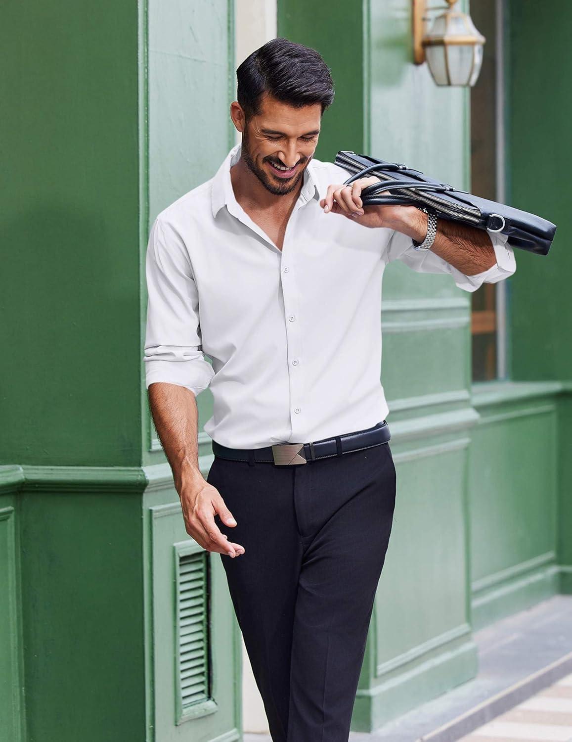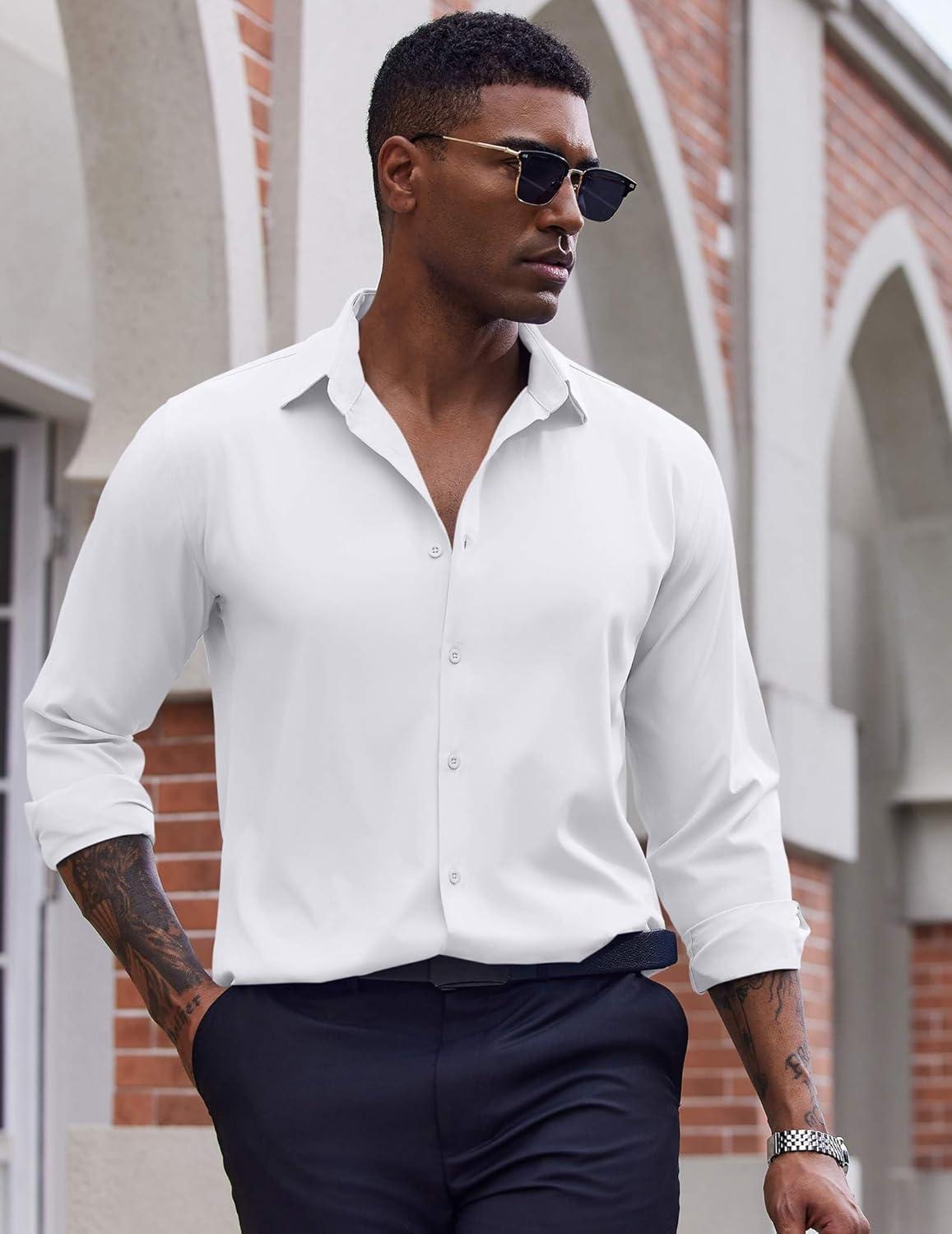 COOFANDY Men's Dress Shirts Long Sleeve Casual Button Down Shirt Solid Regular Fit Formal Business Shirts(White)