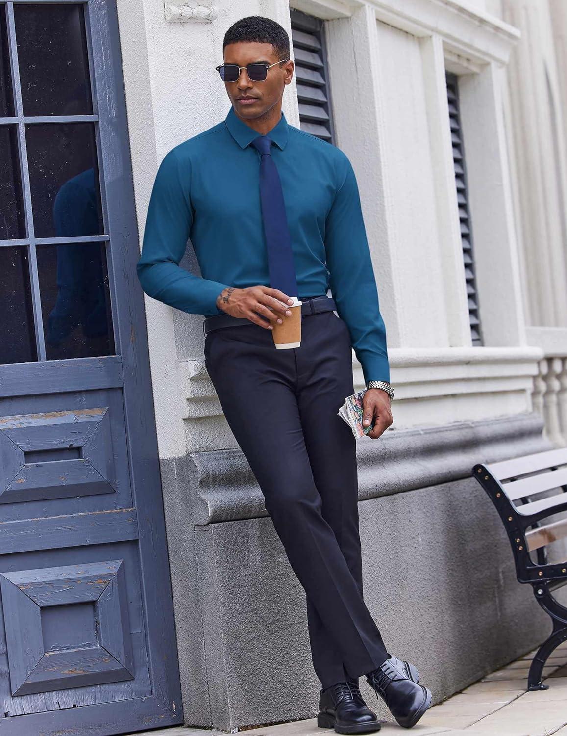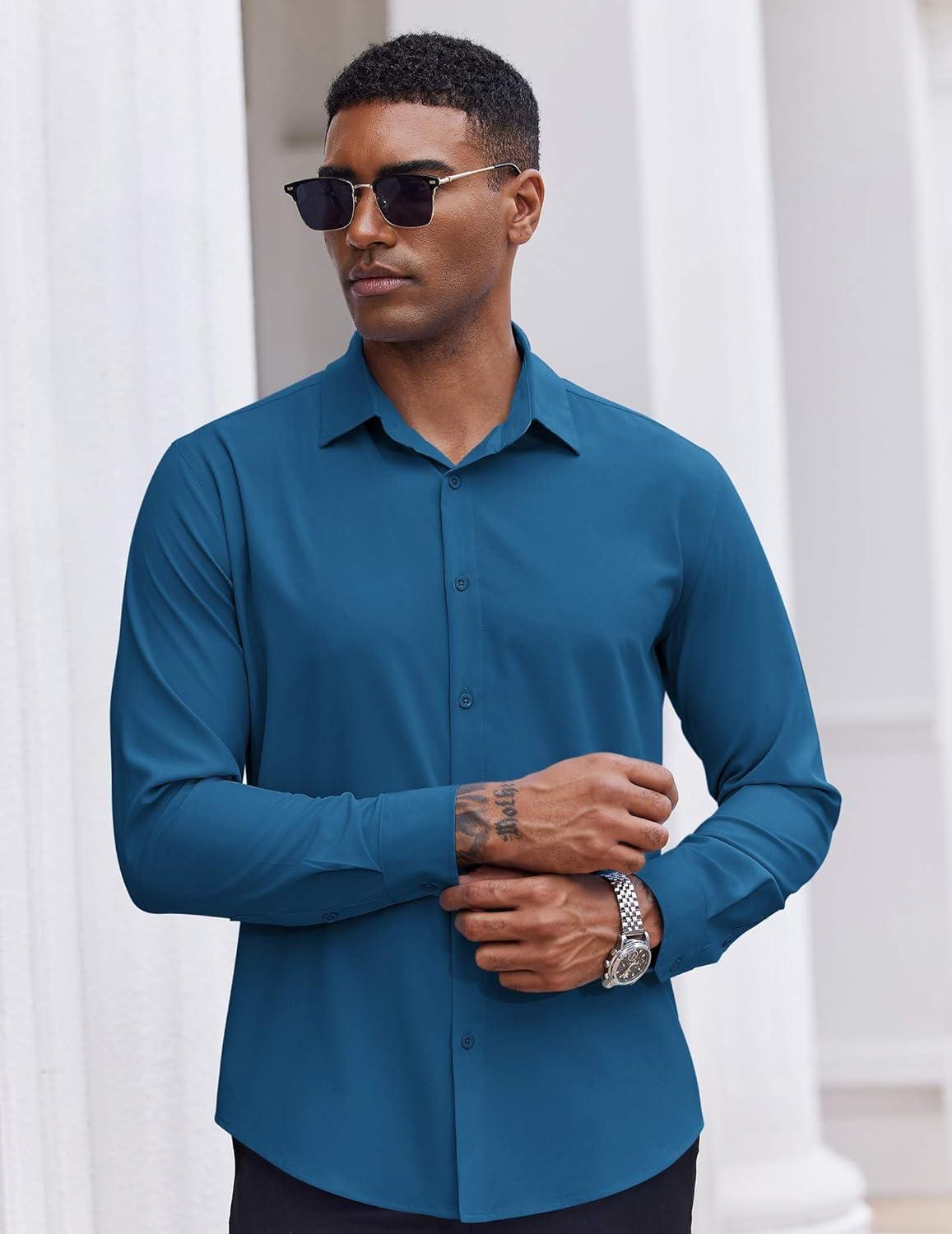 COOFANDY Men’s Dress Shirts Long Sleeve Casual Button Down Shirt Solid Wrinkle Free Formal Business Shirts(Ocean Blue)
