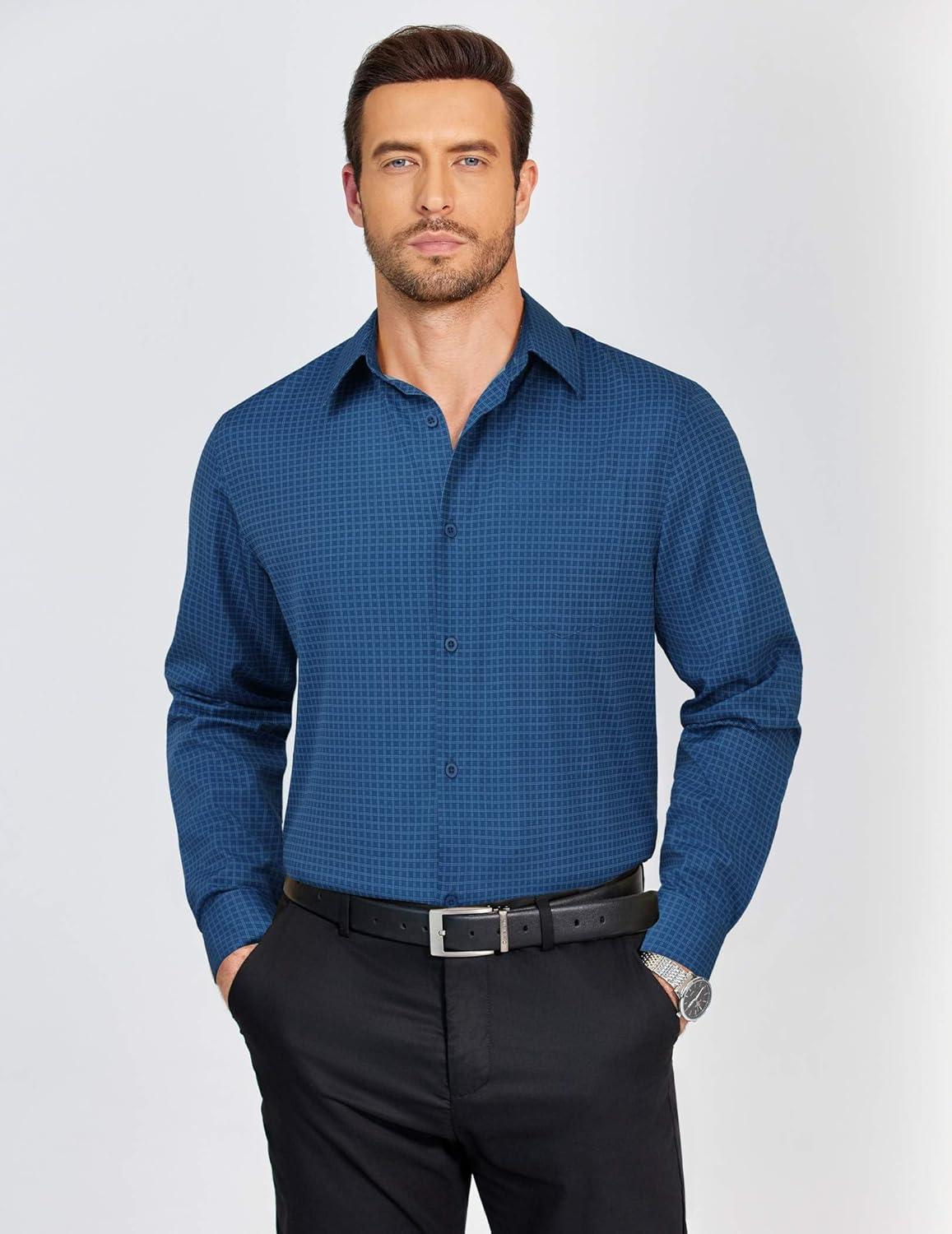 COOFANDY Mens Dress Shirts Long Sleeve Plaid Button Down Shirt Business Casual Stretch Shirts with Pocket(Dark Blue Plaid)