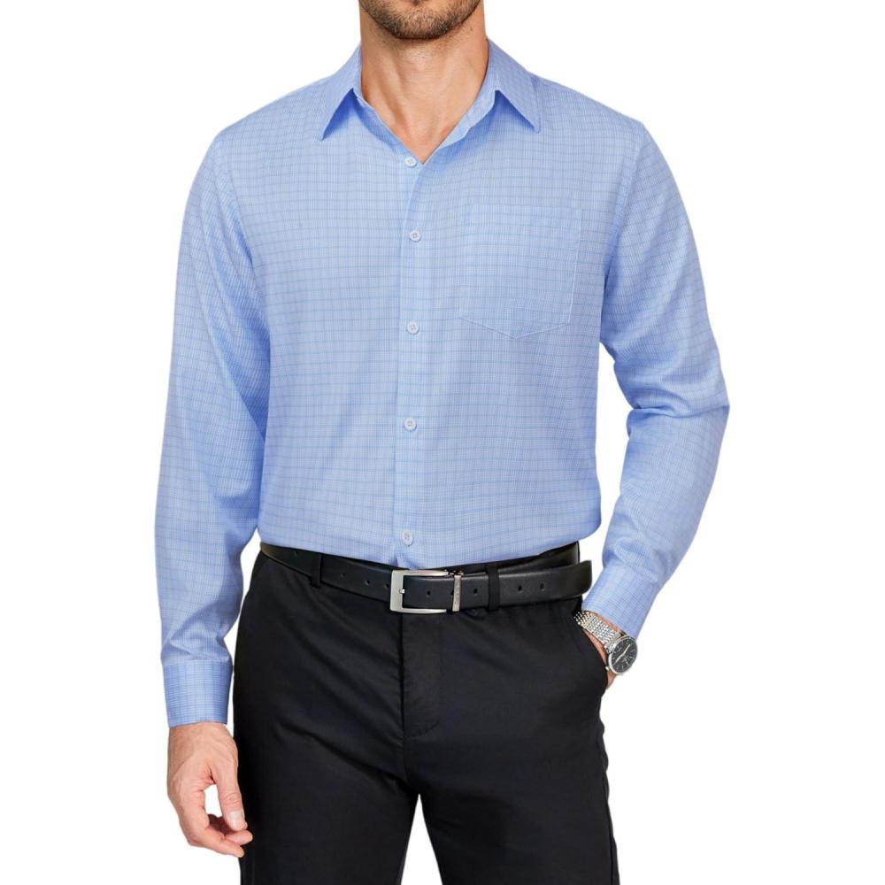 COOFANDY Mens Dress Shirts Long Sleeve Plaid Button Down Shirt Business Casual Stretch Shirts with Pocket(Light Blue Plaid)