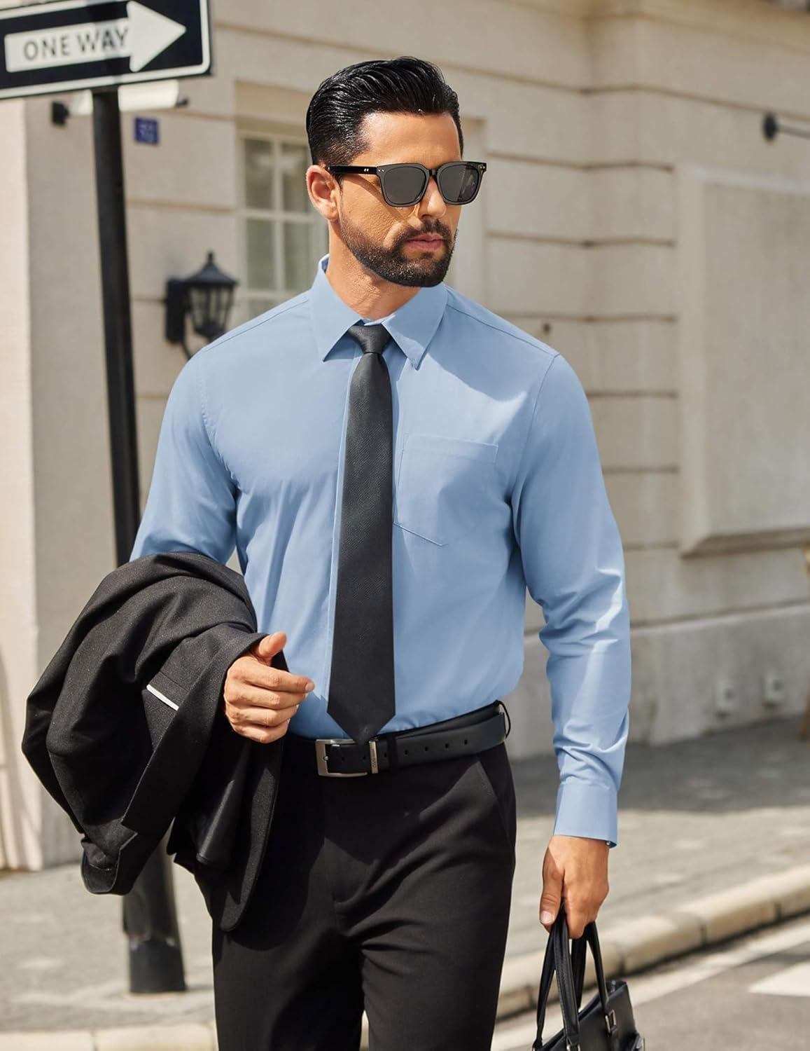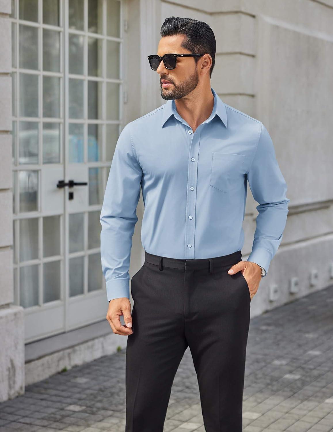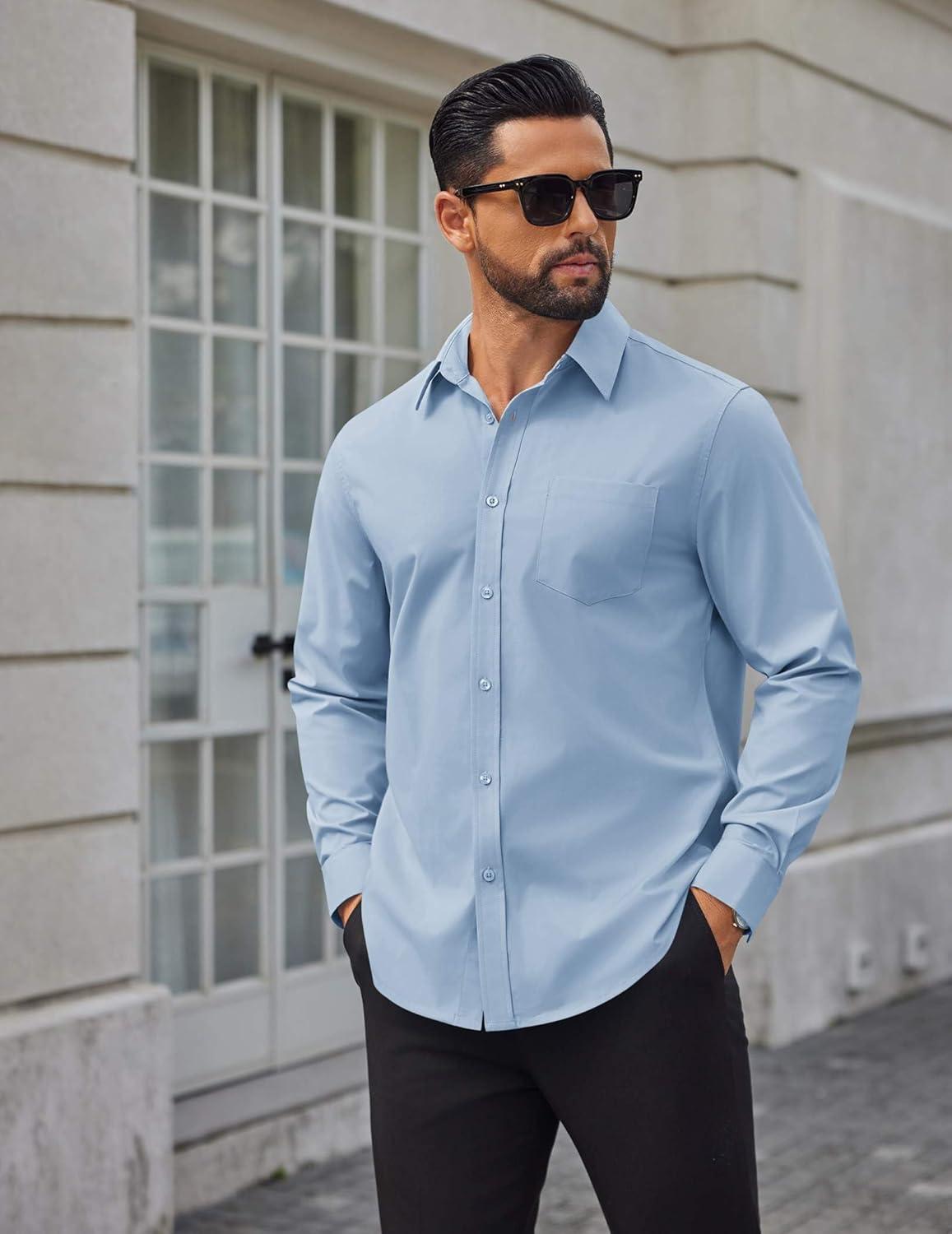 COOFANDY Men's Dress Shirts Long Sleeve Poplin Formal Shirt Casual Button Down Shirts(Light Blue)