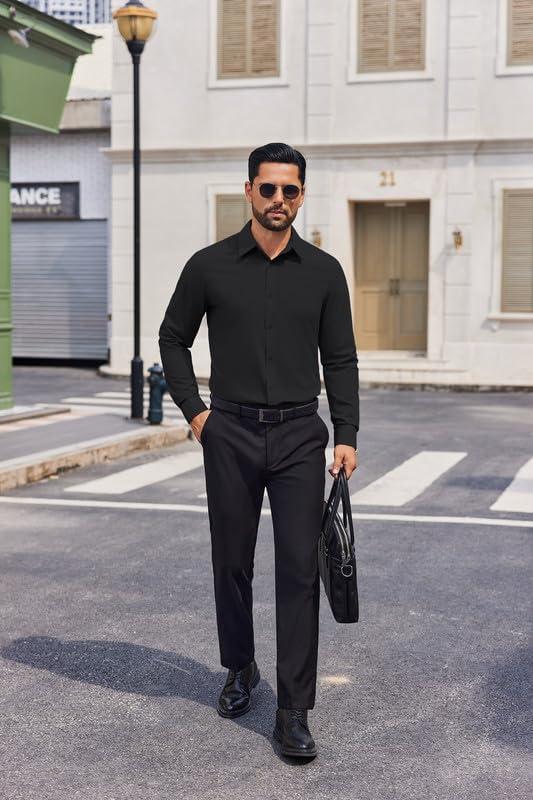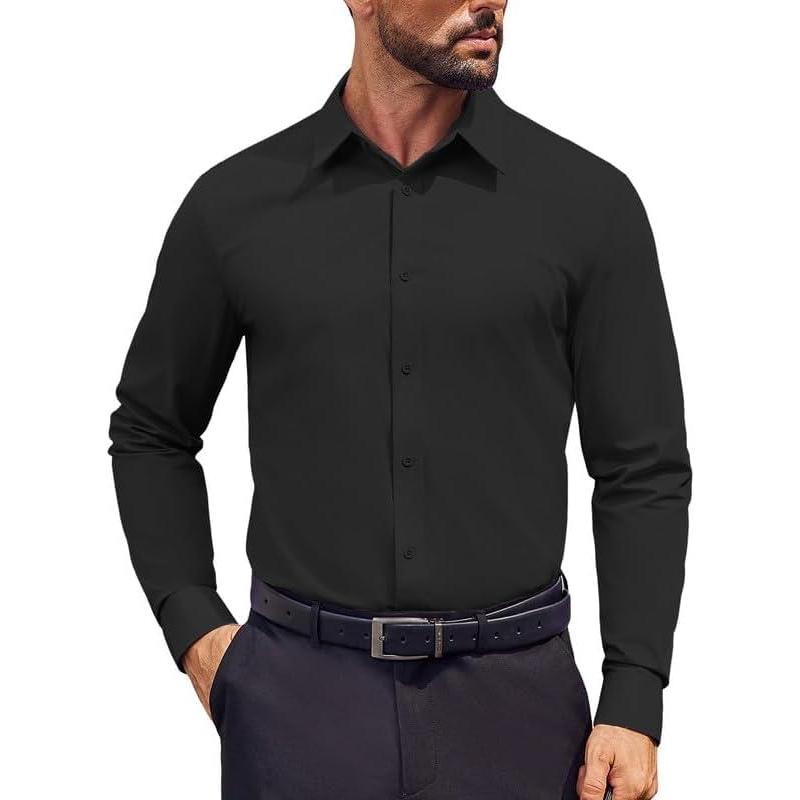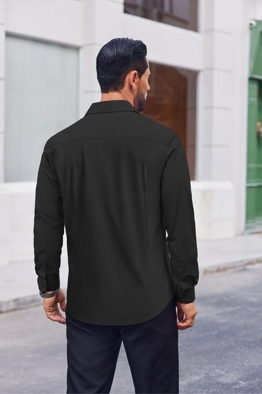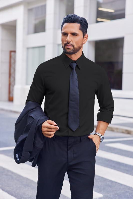 COOFANDY Mens Dress Shirts Long Sleeve Regular Fit Formal Shirts Business Casual Button Down Shirts(Black)