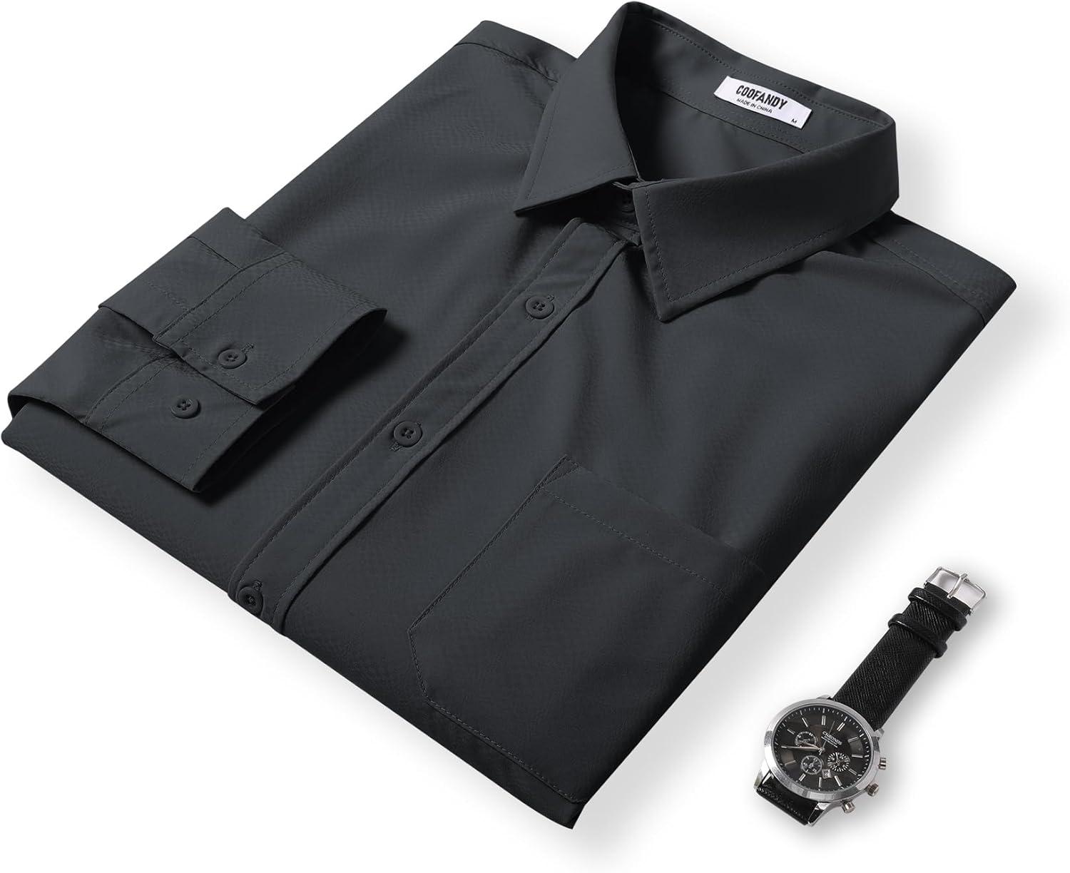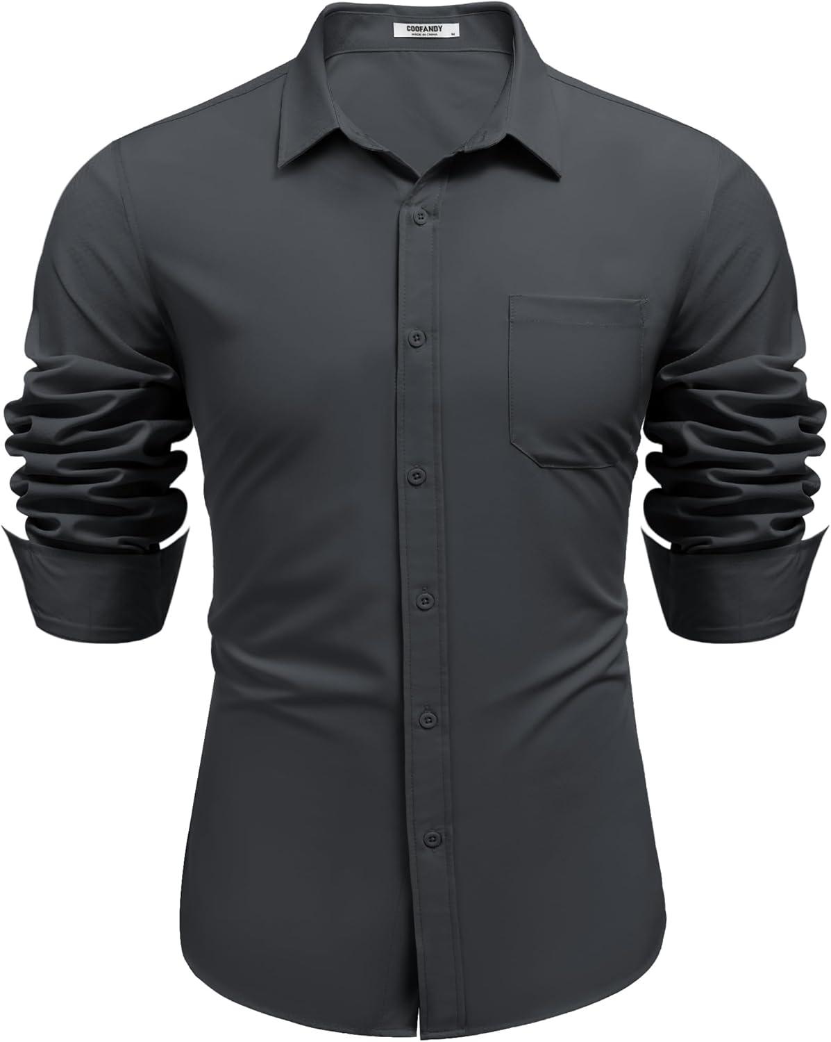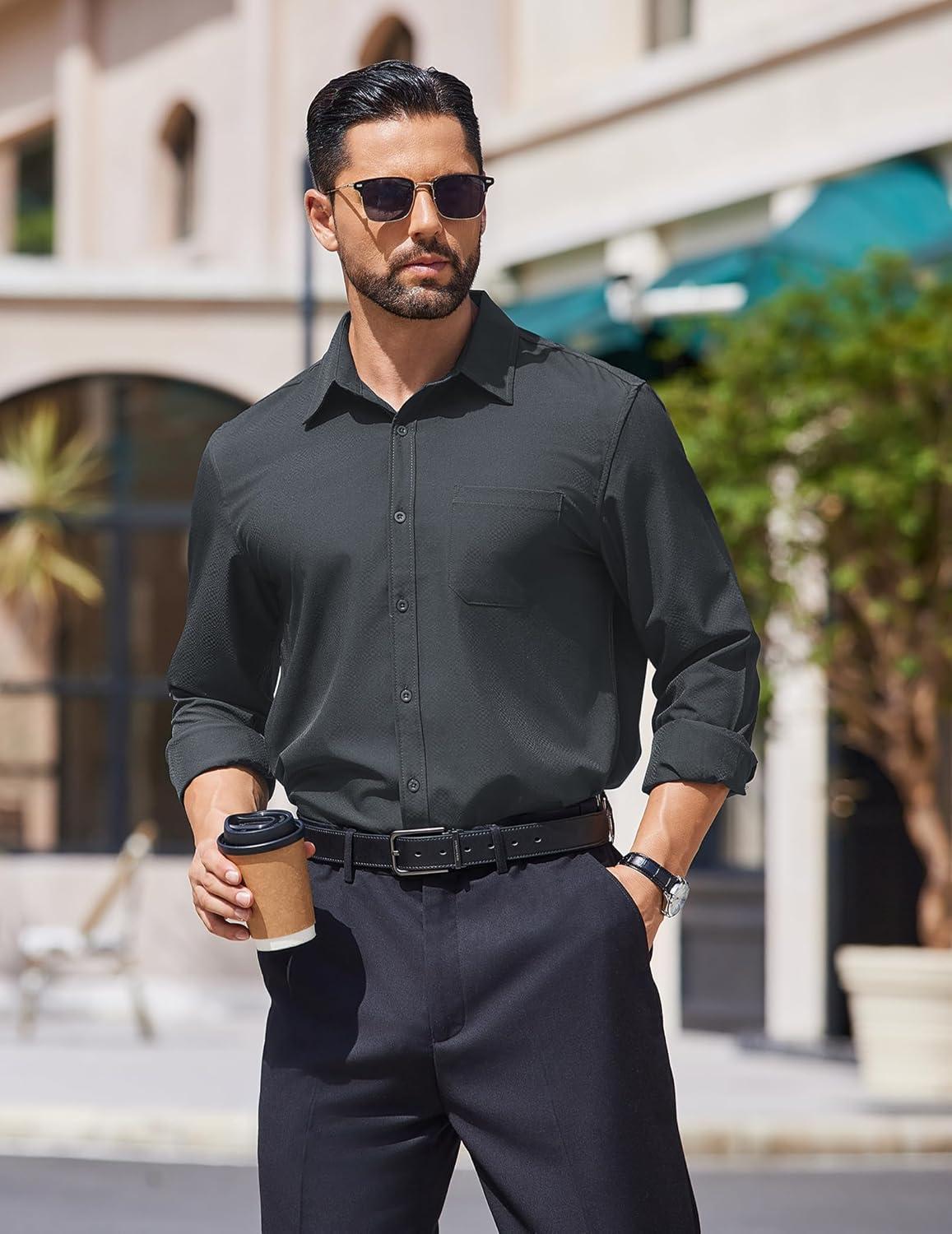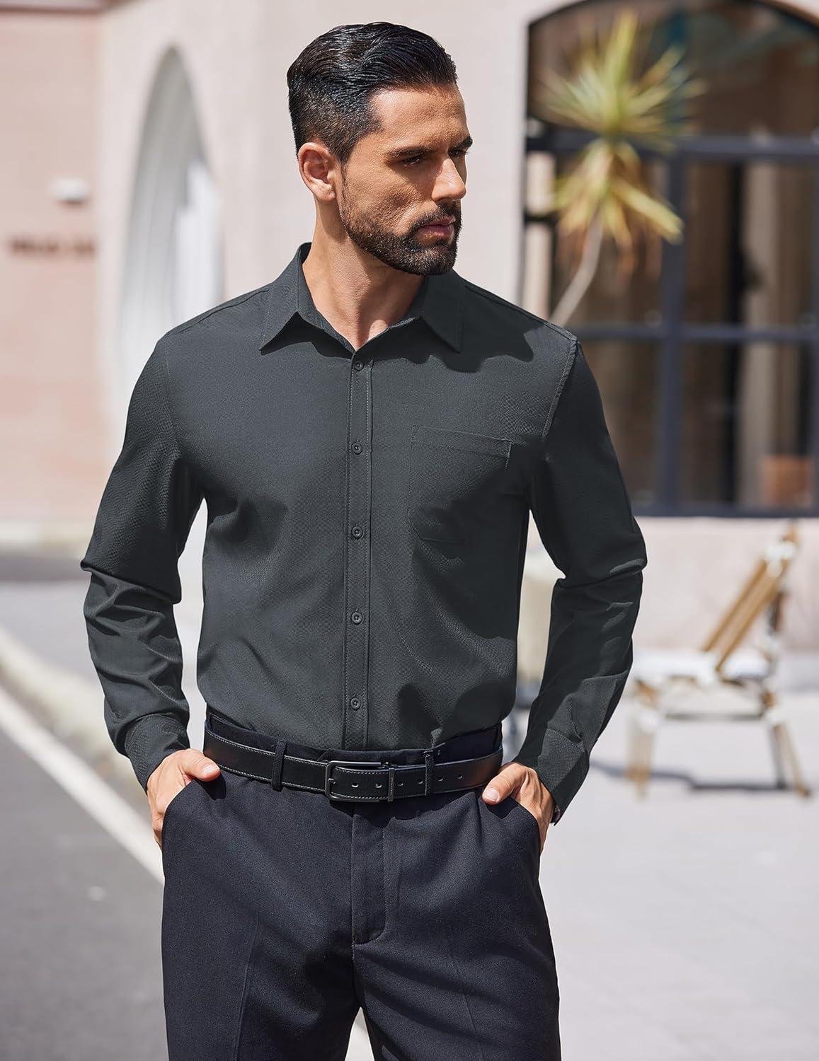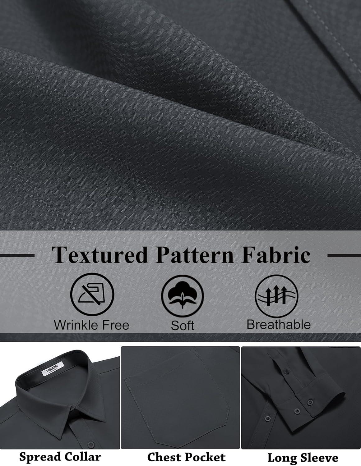 COOFANDY Mens Dress Shirts Long Sleeve Wrinkle Free Shirt Textured Business Casual Button Down Shirt(Dark Grey)