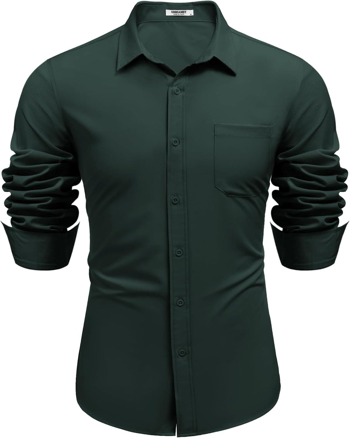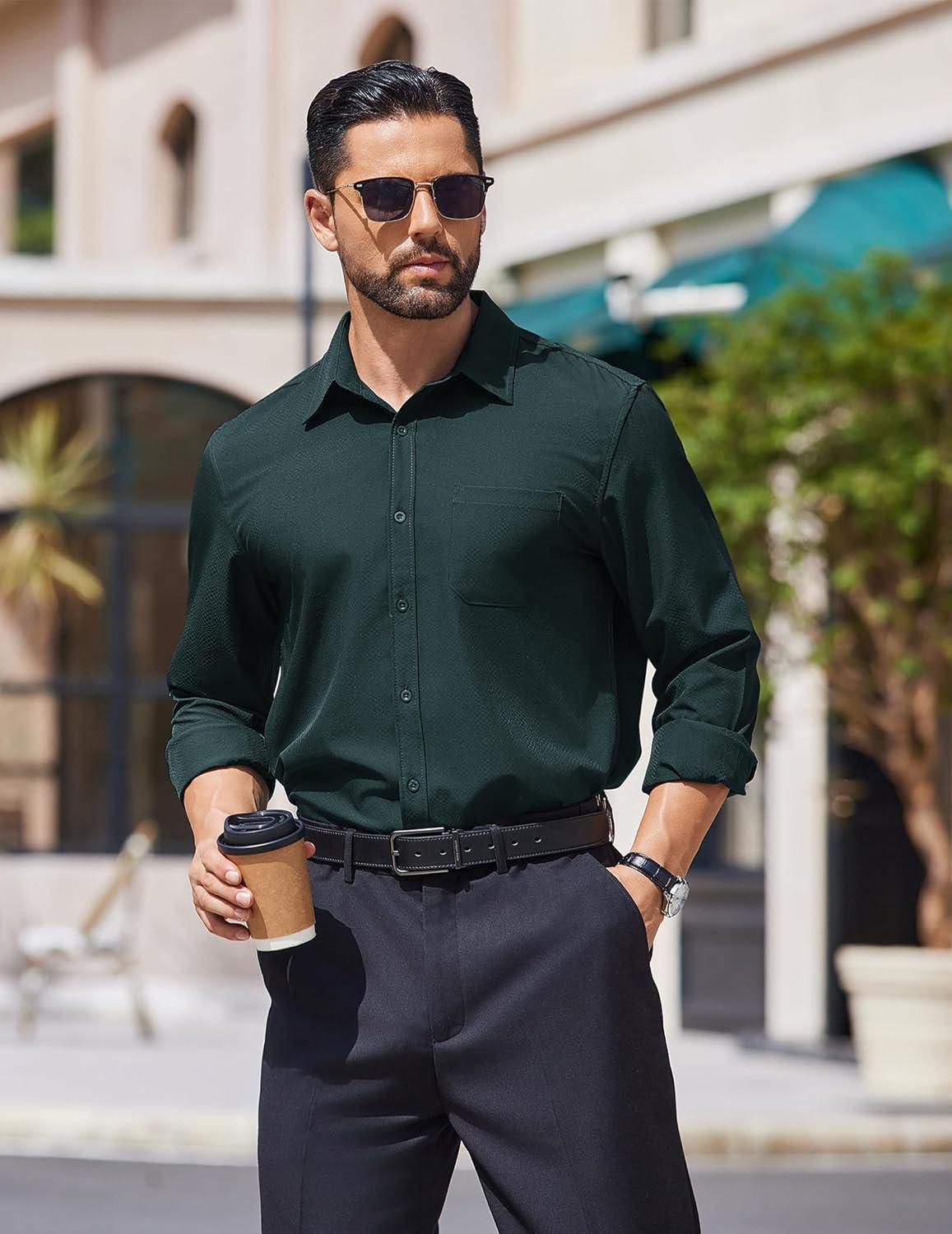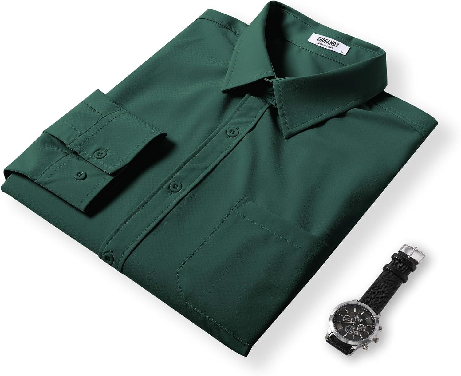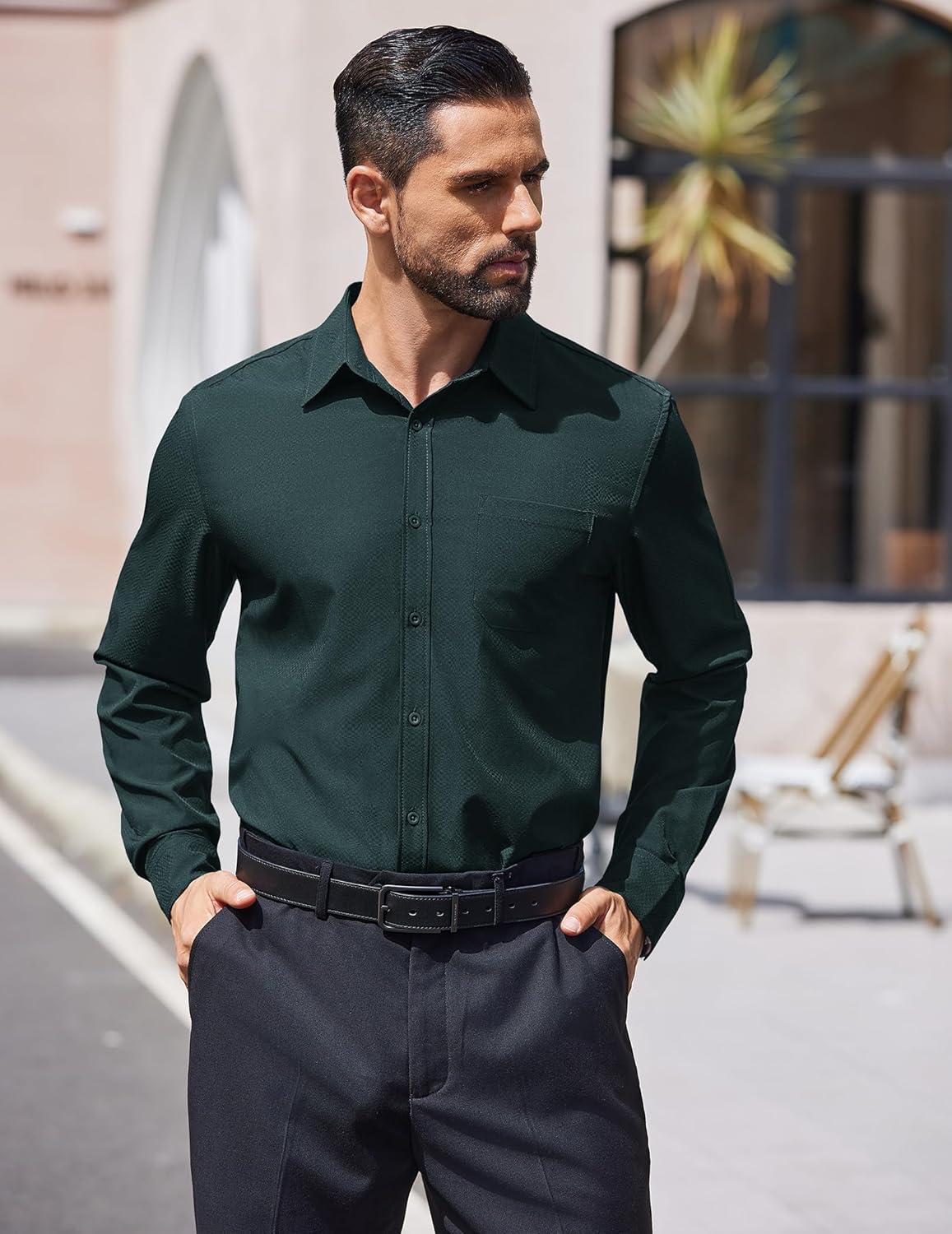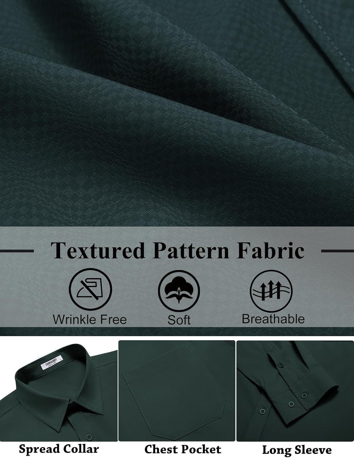 COOFANDY Mens Dress Shirts Long Sleeve Wrinkle Free Shirt Textured Business Casual Button Down Shirt(Lake Green)