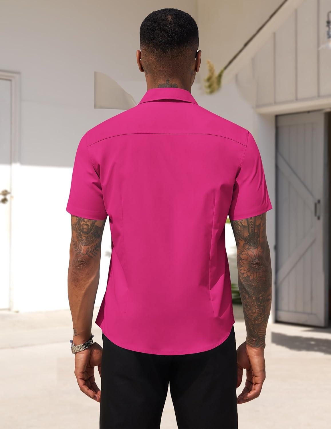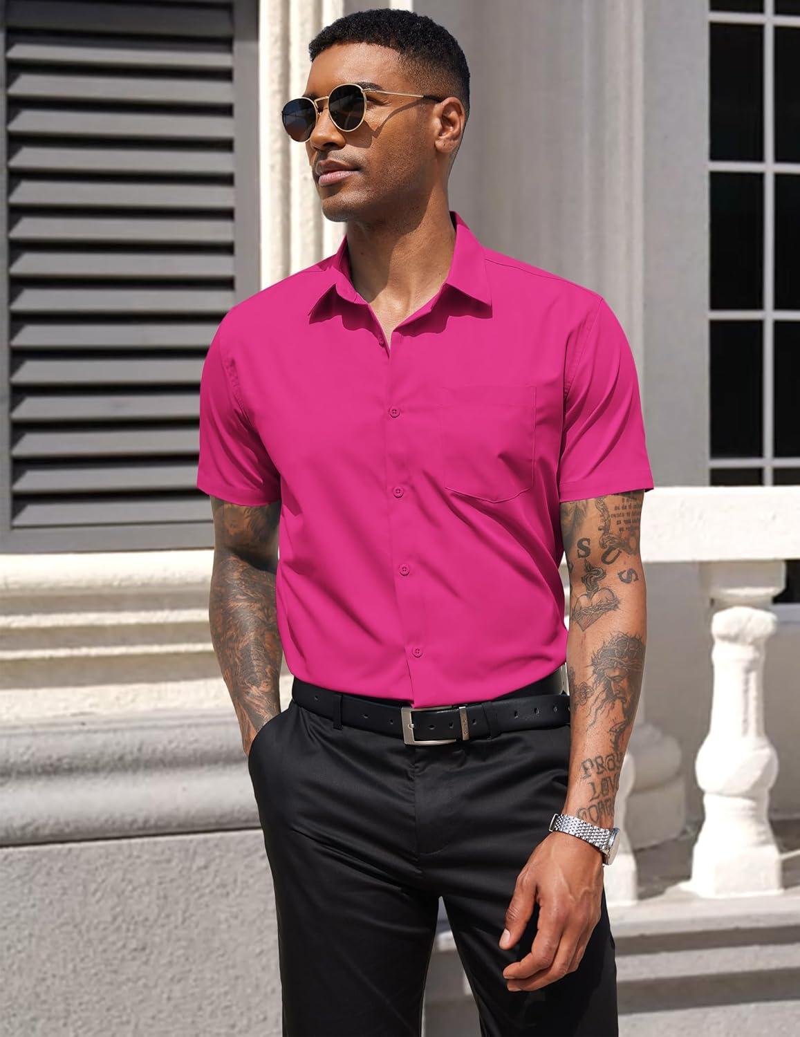 COOFANDY Men’s Dress Shirts Short Sleeve Business Casual Regular Fit Button Down Shirts with Pocket(Bright Pink)