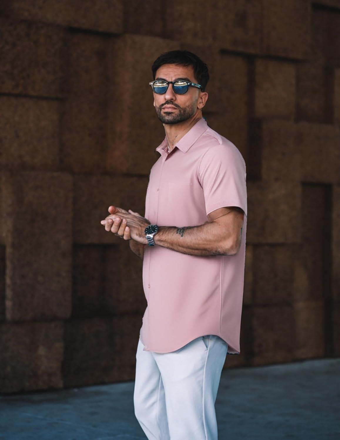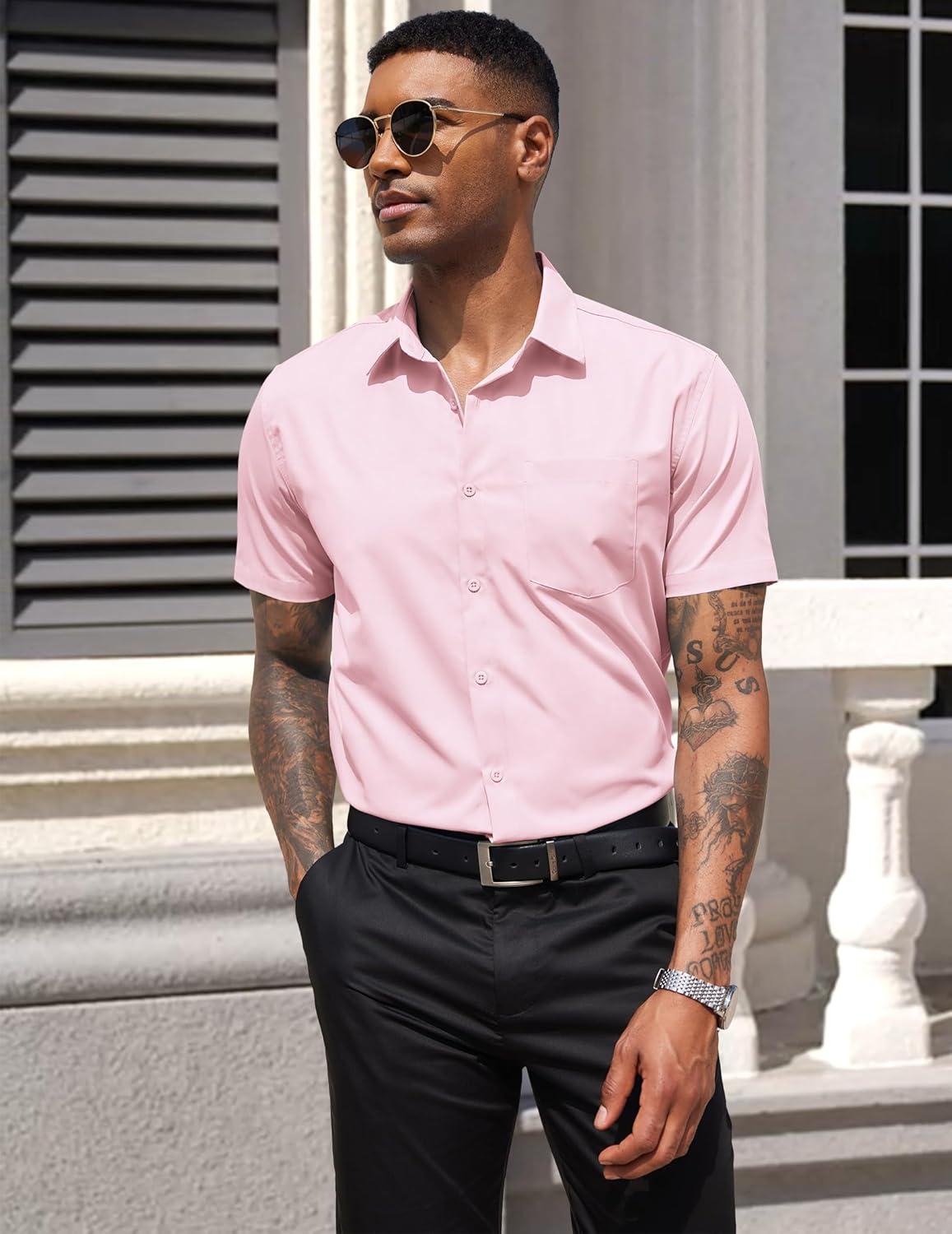 COOFANDY Men's Dress Shirts Short Sleeve Business Casual Regular Fit Button Down Shirts with Pocket(Pink)