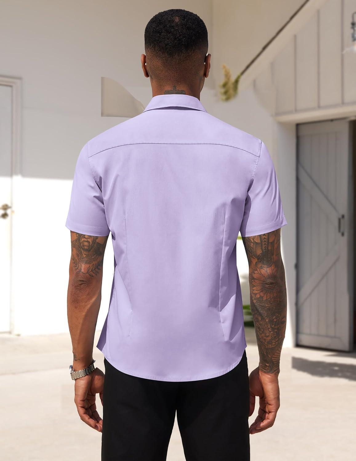 COOFANDY Men's Dress Shirts Short Sleeve Business Casual Regular Fit Button Down Shirts with Pocket(Purple)