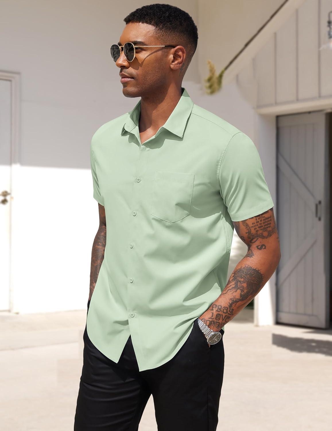 COOFANDY Men’s Dress Shirts Short Sleeve Business Casual Regular Fit Button Down Shirts with Pocket(Sage Green)